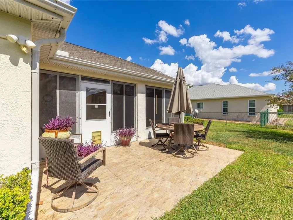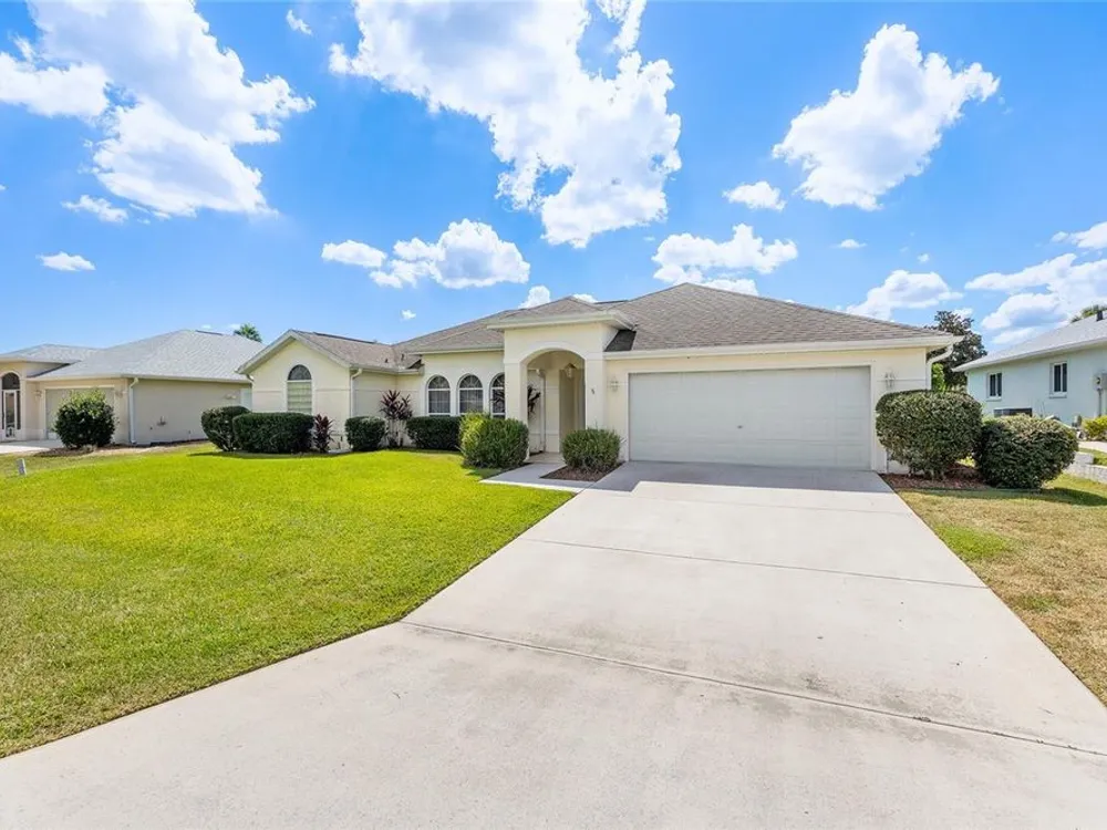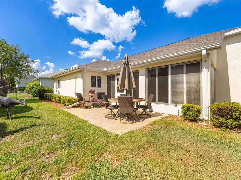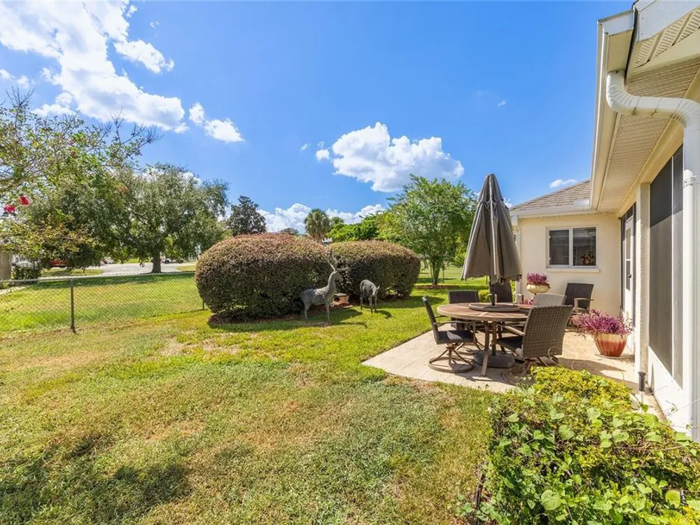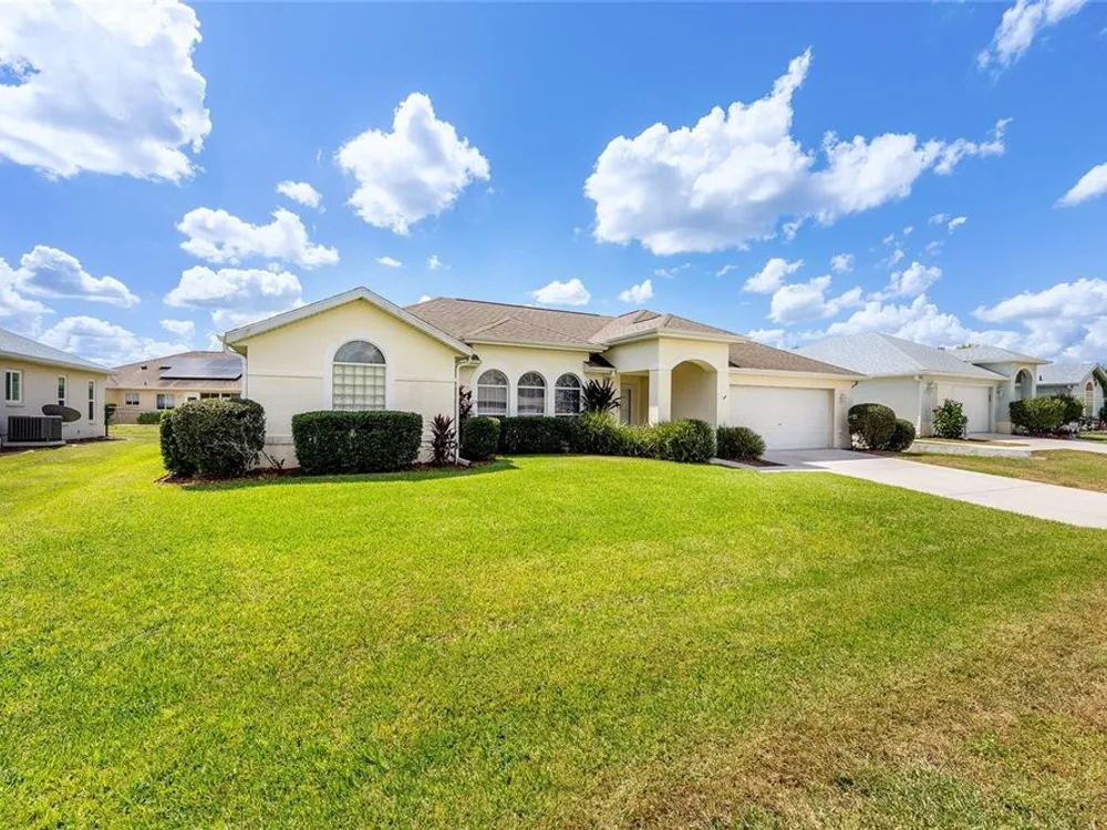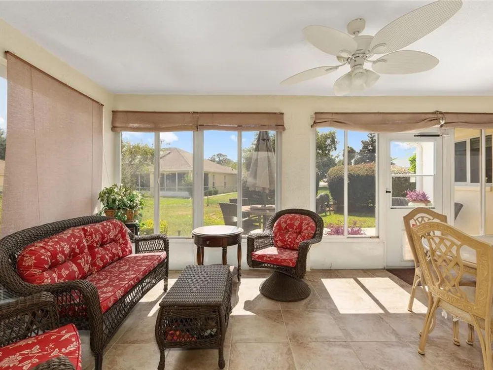 Welcome to Ocala Palms Golf and Country Club! Enjoy your retirement affordably. This Sabel II home features 1,569 square feet, 2 bedrooms and 2 baths. The interesting, vaulted and coffered ceilings are evident throughout the well cared for home. You will notice a split floor plan and features a living room, formal dining and separate family room. The laundry room features newer washer and dryer and provides lots of storage. The kitchen is nice and bright with newer, Whirlpool refridgerator and stove. The countertops are granite throughout the home. The Master bedroom ensuite is beautiful with a tray ceiling. The roof and HVAC are from 2018. Don't forget your pup as there is a fenced back yard! The back yard is also a perfect place to light up your grill! There are lots of amenities as well, including: an indoor and outdoor pool, fitness center, new pickle ball courts and pavillion (coming in early 2026), shuffle board, bocce ball, prestine grass area for croquette and a beautiful golf course! Come take a look at this friendly golf cart community. Room measurements are approximate. Shown by appointment only.