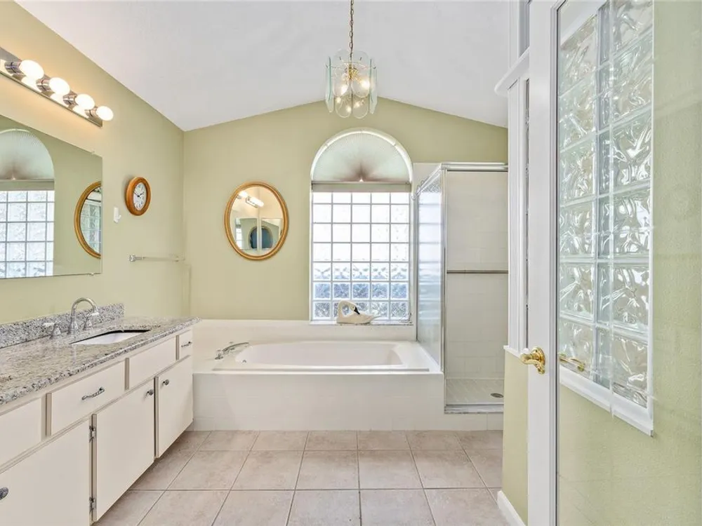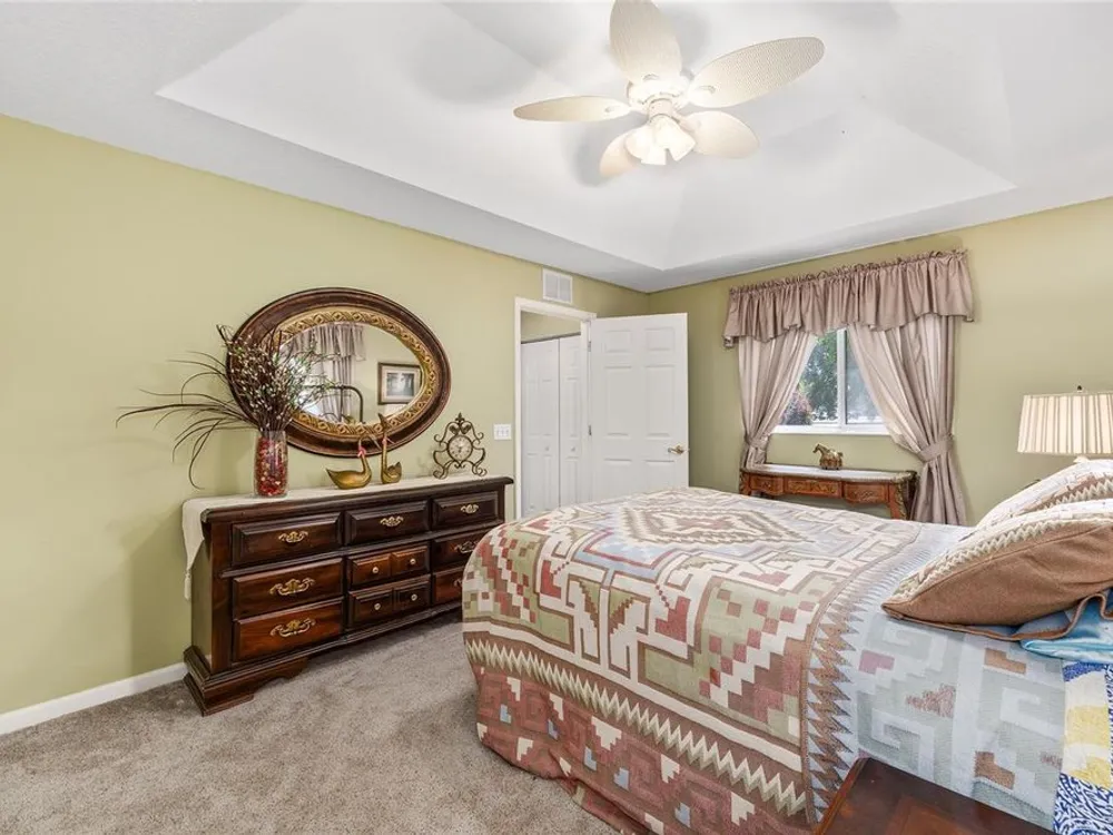 - Cathedral Ceiling(s), Ceiling Fan(s), Coffered Ceiling(s), L-Shaped Dining Room, Main Level Primary, Solid Surface Counters, Split Bedrooms, Tray Ceiling(s), Vaulted Ceiling(s), Walk-In Closet(s), Window Treatments