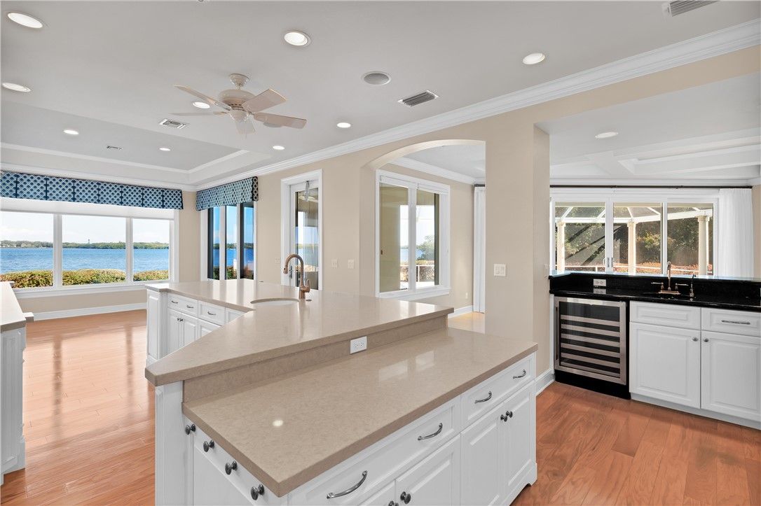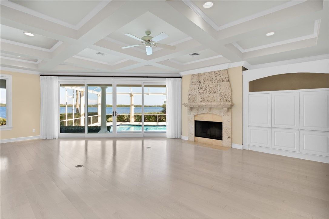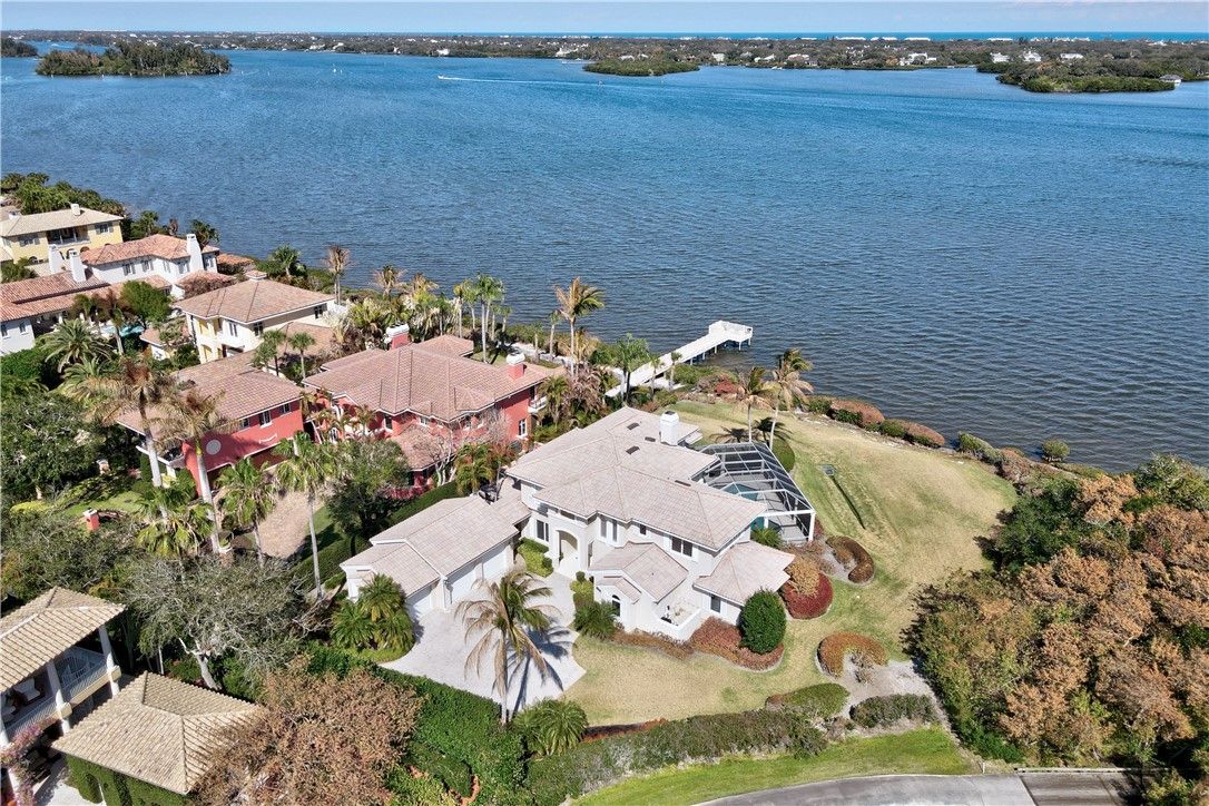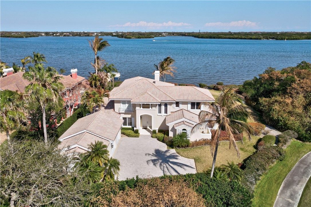 Relax and enjoy views of the Indian River as well as the signature 14th hole of the river course from this well-designed home in St Andrews Island. The spacious eat-in kitchen has been updated with top-of-the-line appliances, and a convenient wine bar. The living room with a coral stone fireplace and modern wood floors has a light and airy feel, ideal for entertaining. The second-floor balconies and screened pool area provide delightful river views.