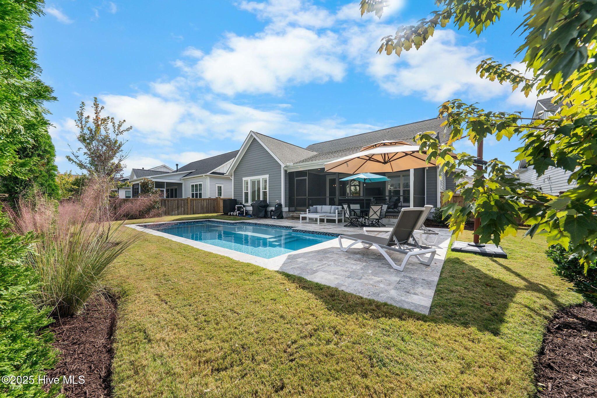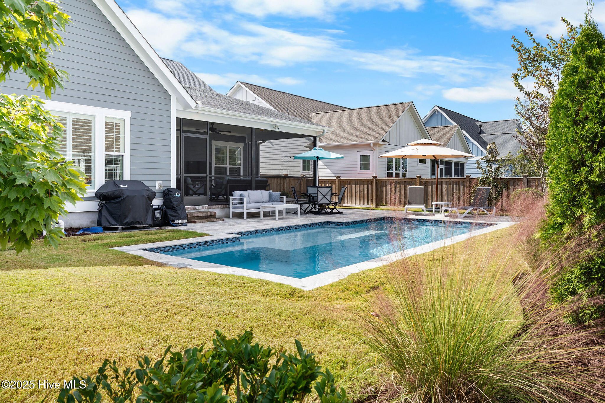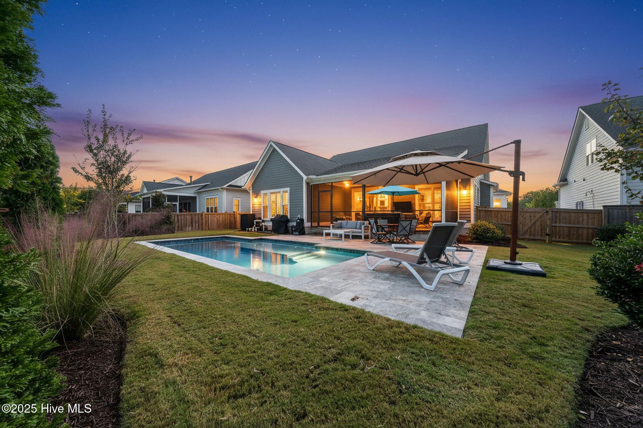This home has it all in RiverLights- featuring a whole house generator AND a new in-ground, temperature controlled pool, with lap lane, for year-round swimming. Built by Trusst in 2022 and upgraded to match the Roanoke Coastal model, this home is a must see! The location is prime- just a block from the walking bridge which leads to the Lake House & Amenities, and it's nestled in a quiet pocket of the neighborhood known as ''The Loop.'' Upgraded finishes include chefs' kitchen with Kitchen-Aid appliances, a five-burner gas cooktop with downdraft, under cabinet lighting, premium cabinetry and an accent island with storage on all sides. The primary bedroom features an en suite bath that includes shower w/ tile surround to ceiling, frameless glass door, and custom walk-in closet. A main-level office doubles as a guest bedroom with a large closet and access to a full bath. The open-concept living area flows to a tiled generous screened porch through a three-panel lanai slider, creating seamless indoor-outdoor living. Upstairs, two spacious bedrooms—each with a walk-in closet—share a bath; and walk-in attic storage provides easy access. This home is truly move in ready and will convey with all appliances. The outdoors is a true oasis with fully fenced professionally landscaped yard with two gates. Natural travertine stone surrounds the pool and patio area. An outdoor shower with teak mats provides convenience after the beach before hopping in the pool. Community amenities include clubhouse, fitness center, saltwater pool, playgrounds, parks, dog park, and upcoming pickle ball. Trails, sidewalks and streetlights throughout the neighborhood promote an active lifestyle. (HOA: 6-month rental minimum.). Schedule to see this home today!