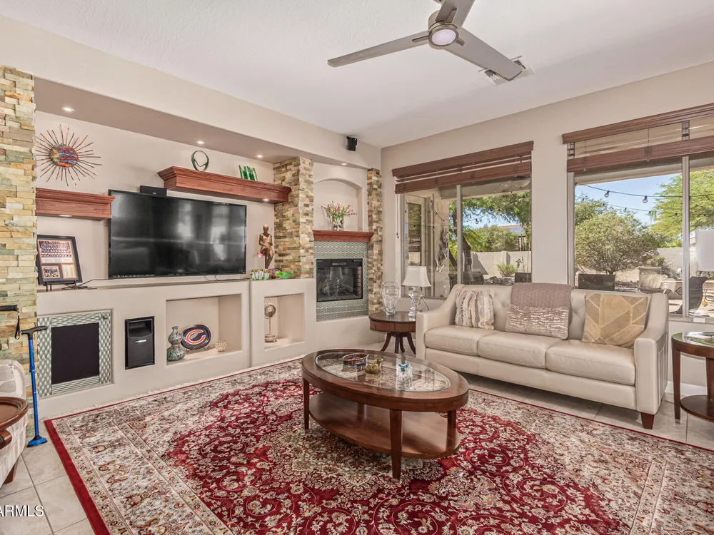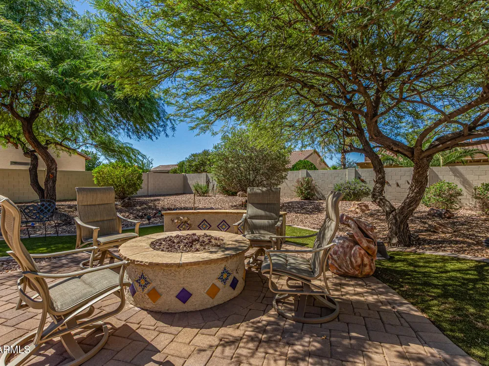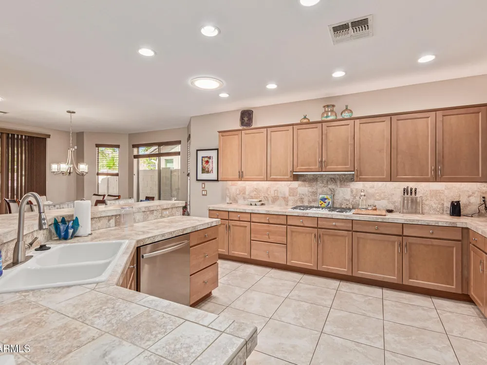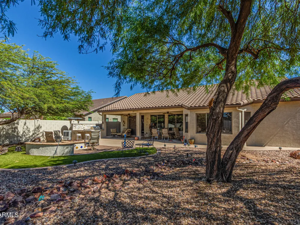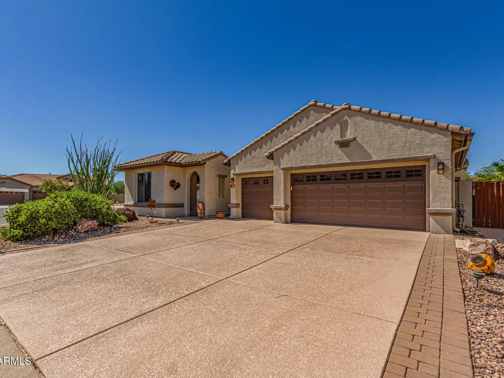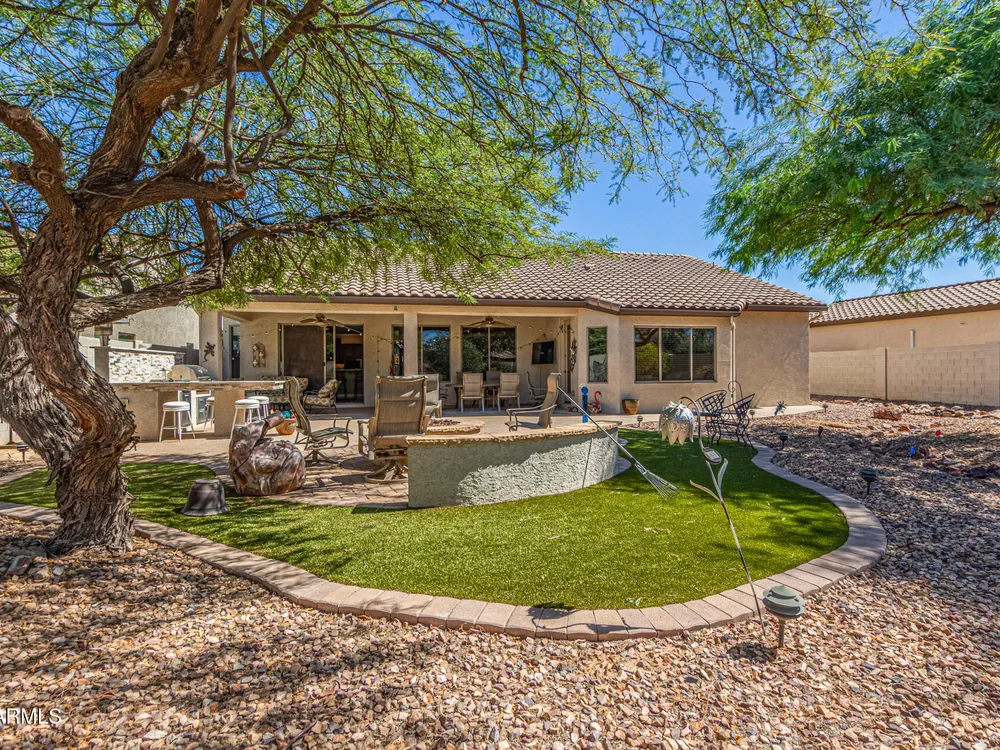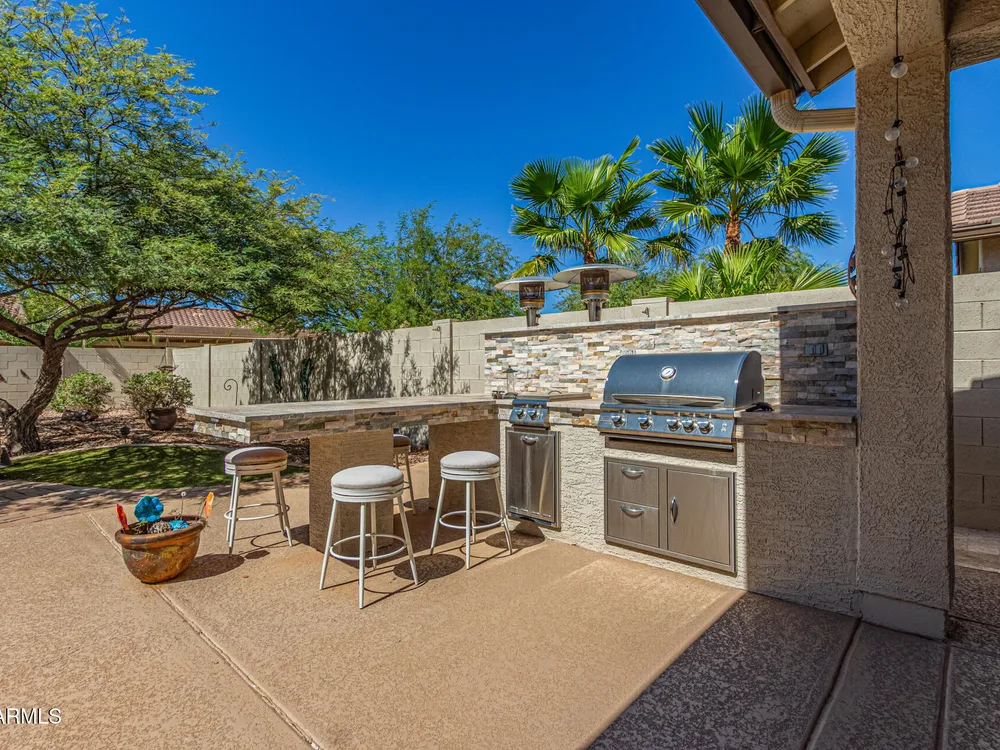 Must See! GORGEOUS Integra block home w/PRIVATE GUEST SUITE w/entry from the INSIDE & OUTSIDE of home! This 3 bedroom, 3.5 baths, den & 3 car garage w/4 ft. ext. on extra large cul-de-sac lot is ideal for entertaining! The gourmet kitchen features Maple cabinets that the cook of the house will surely appreciate, wall oven/microwave, tiled counter tops & large breakfast bar. Bay windows in both the master and dining . Master has door leading to backyard patio, master bath w/separate TILED tub & shower. 3 car garage w/4 ft ext & built in cabinets & service door. Many upgrades such as 20' porcelain tile, new fireplace in Great Room, plantation shutters, sunscreens, upgraded fans & lighting. Step out back to the beautifully landscaped backyard, extended covered patio w/2 gates. Beautiful custom made front door. Uou can access the casita from outside or inside. Backyard with pavers and a firepit for gathering around to share stories, a built-in BBQ, a grassy area, and a relaxing landscape with mature trees. What are you waiting for? This gem won't last!