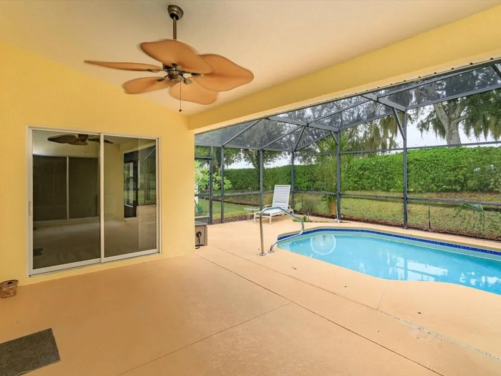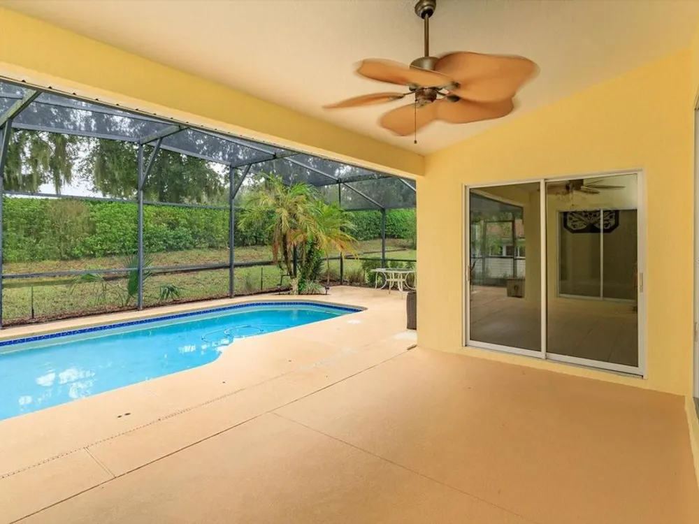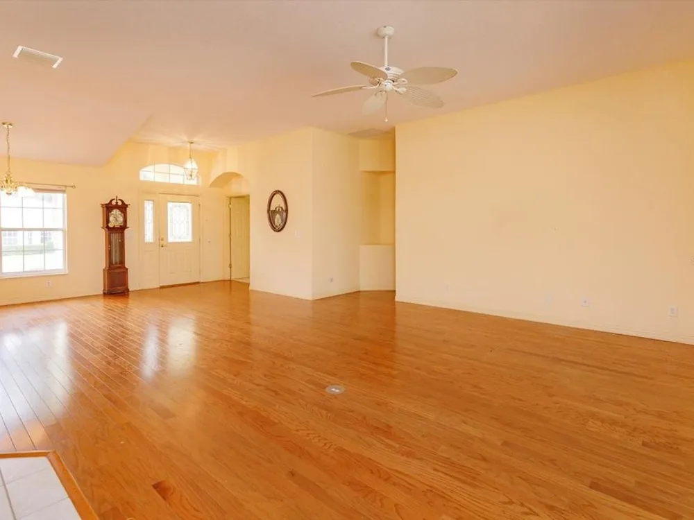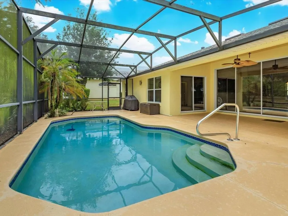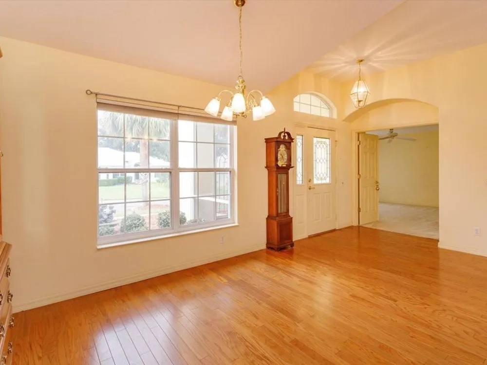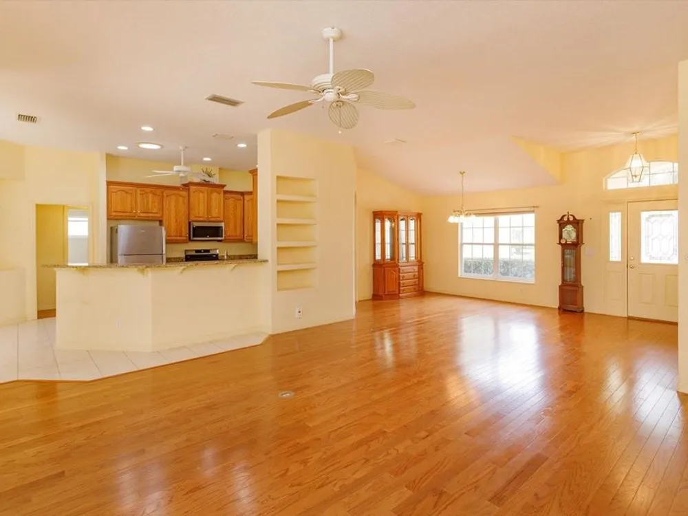 Welcome home to your dream 55+ community in beautiful Lake County! Royal Harbor offers dozens of amenities and there is a club for just about any interest! See the list of community offerings attached to this listing! This home offers four full bedrooms, Two baths, full three car garage, a screen enclosed pool with both covered and open deck Space. The front door is screen enclosed for added weather and bug protection. Upon entering this home you will see open living space with beautiful wood floors and high ceilings. The floorplan offers a three way split with the primary bedroom off to the left back of the home, the fourth bedroom off to the left front and bedrooms two and three on the far right side of the home. The kitchen offers 42" wood cabinets, granite countertops, new stainless steel appliances, a 10' breakfast bar, laundry room access and a 10x9 eating space with pool views. The Primary bedroom is 19x13 and offers a large walk in closet, Electric Wall heater, dual sinks, linen closet, soaking tub, a separate shower and a frosted window for natural light. Community has a fishing pier on Little Lake Harris and offers RV/Boat storage. This home is ready for a new owner, call for your private showing today!