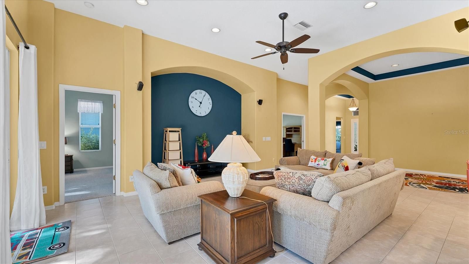 - Ceiling Fan(s), Eat-in Kitchen, High Ceilings, Kitchen/Family Room Combo, Open Floorplan, Solid Surface Counters, Walk-In Closet(s)