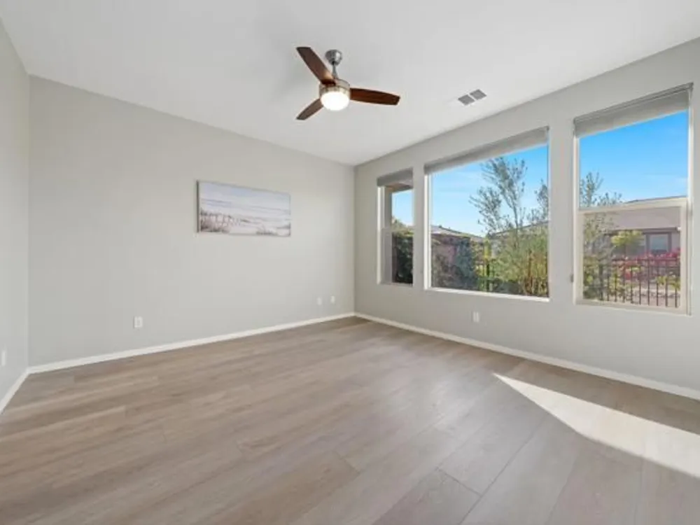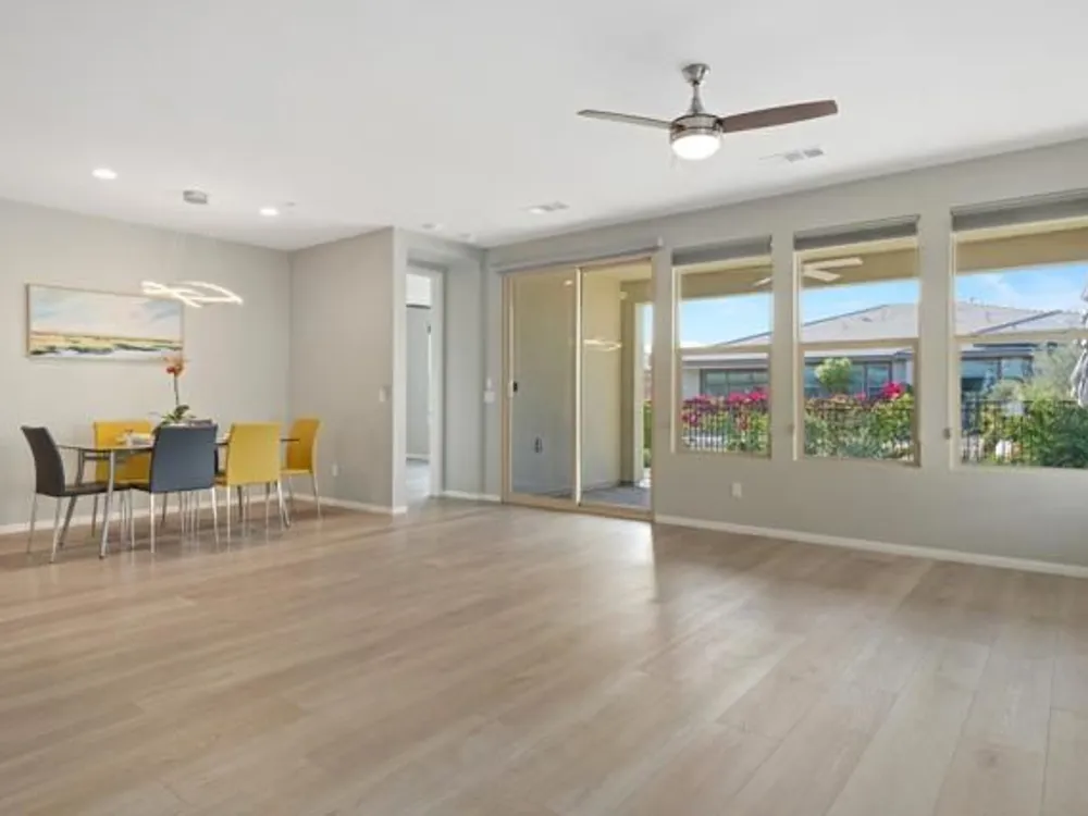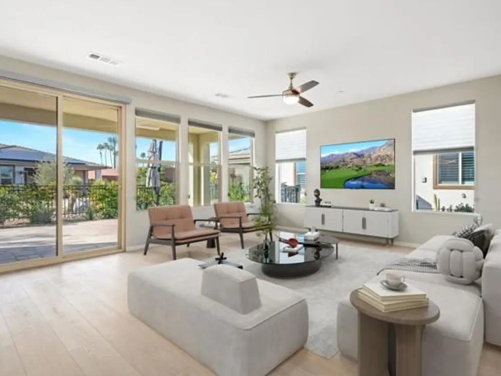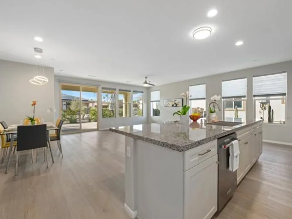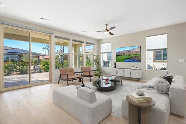 Priced to Sell! Move-in ready for you to enjoy the season in style.Welcome to luxury resort living in this stunning Evia model at the prestigious Trilogy Polo Club, where front and back yard maintenance is included! This meticulously upgraded 1,500+ sq ft home showcases breathtaking mountain views through walls of windows in an open-concept layout perfect for desert living.The chef's kitchen is a showstopper with premium finishes including a generous stone-topped island, stainless steel appliances, gas range, and custom cabinetry. The flowing floor plan features 2 bedrooms plus a dedicated office, 2 designer bathrooms, and high-end details throughout including wide-plank luxury flooring, custom lighting, and thoughtful built-ins.Step outside to an expanded paver patio designed for entertaining, complete with dramatic mountain vistas and pre-plumbed connections for a gas fire pit or BBQ. Over $60,000 in sophisticated upgrades include a whole-home water filtration system, epoxy garage floors, designer window treatments, and leased solar panels for energy efficiency.Living at Trilogy means access to world-class amenities with optional club membership: resort and lap pools, fitness center, tennis and pickleball courts, bocce ball, and an acclaimed on-site restaurant. Club membership transfer available for just $1,875.Located minutes from premier golf, shopping and dining, this turnkey home offers the perfect blend of luxury and low-maintenance desert living.