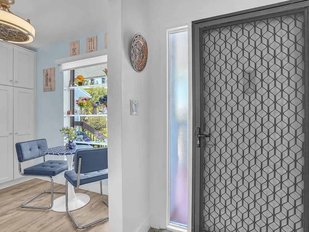 - Cathedral Ceiling(s), Entrance Foyer, Pantry, Split Bedrooms, Walk-In Closet(s), Storage, Living/Dining Room, Eat-in Kitchen, Blinds, Storm Window(s), Impact Glass, Dual Sinks, Separate Shower, Bathtub