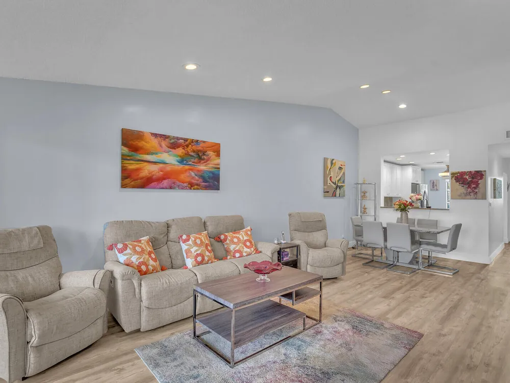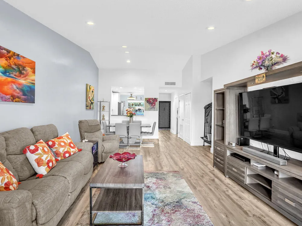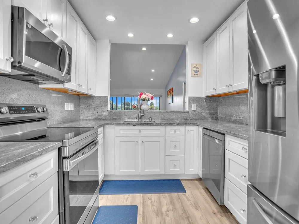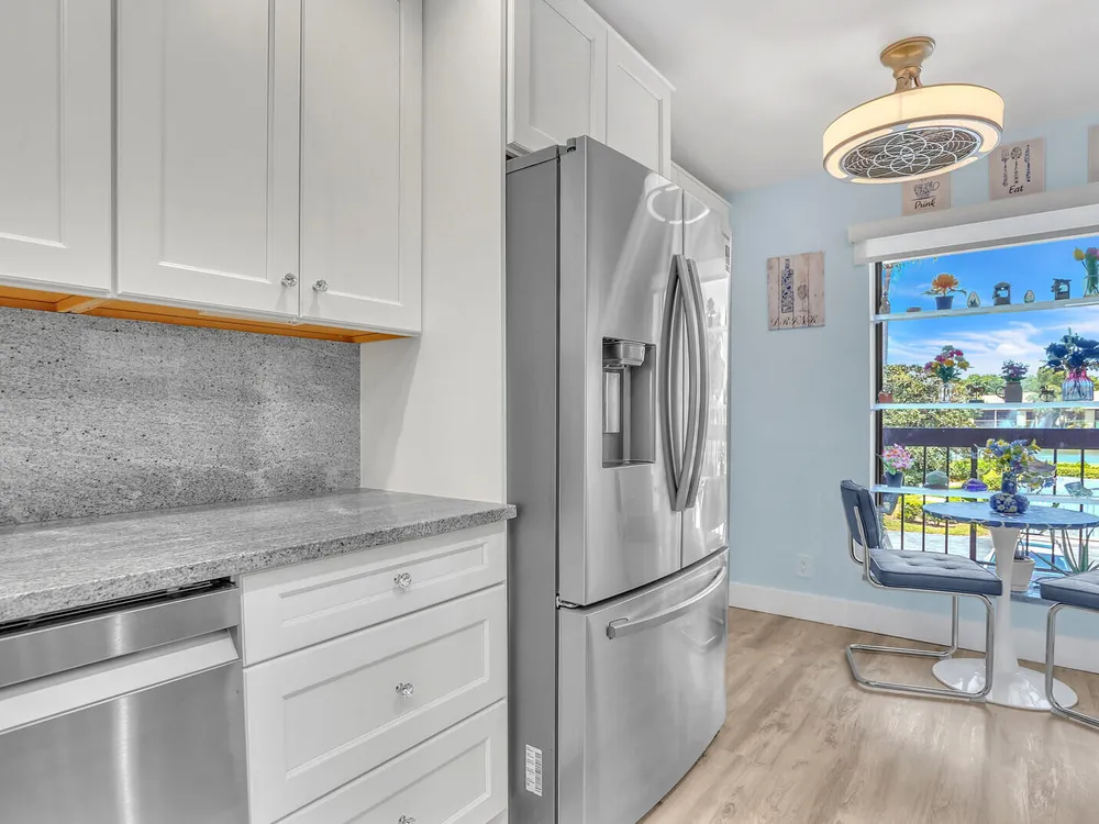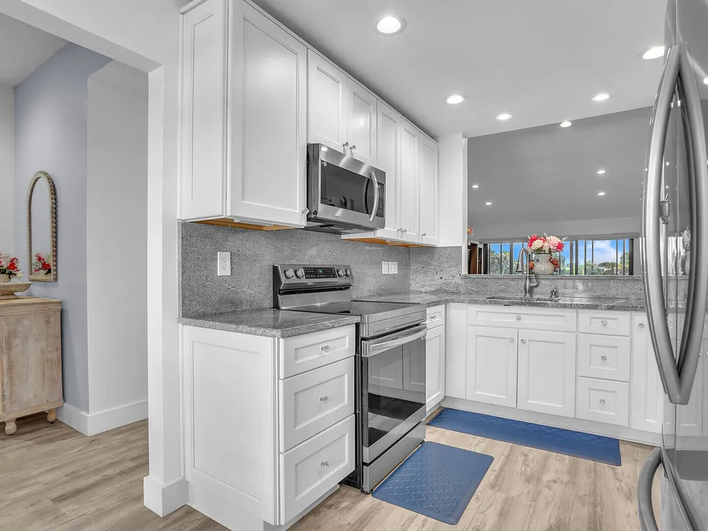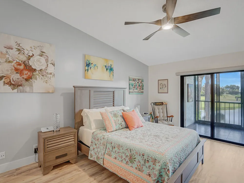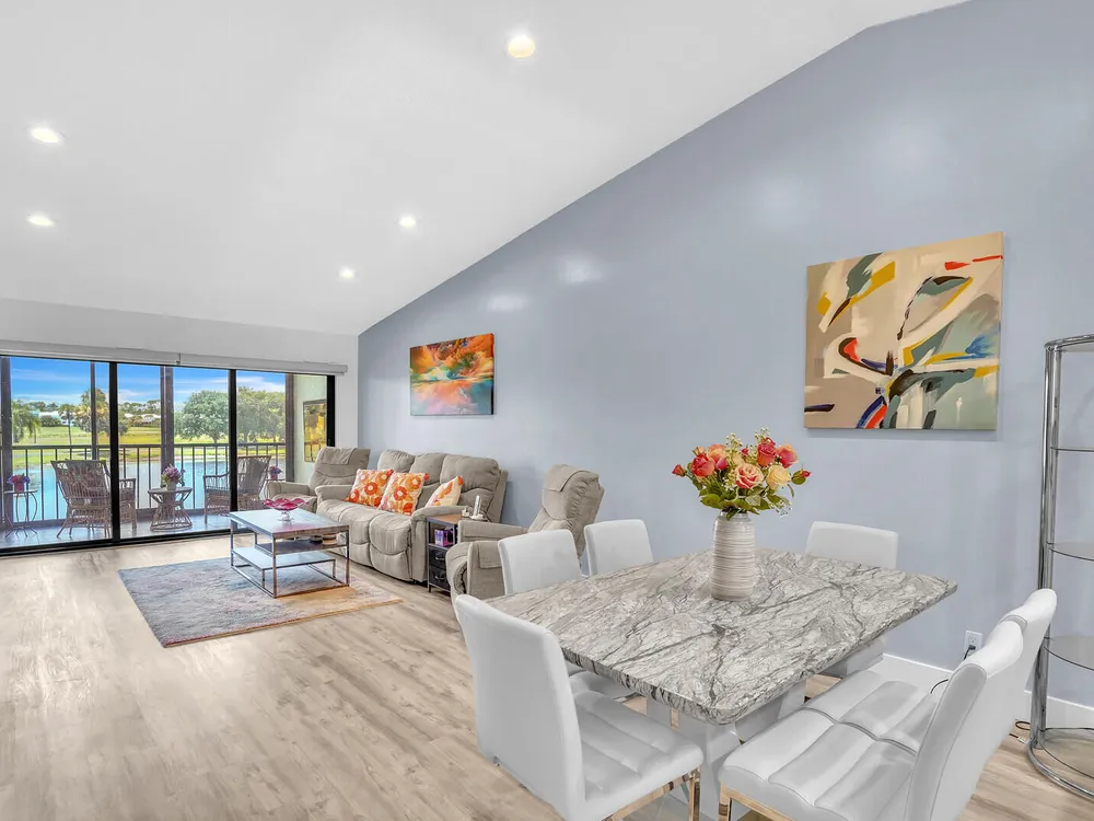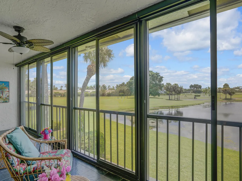 Experience the perfect blend of lifestyle, luxury, and location in this beautifully renovated lakefront condo in the highly sought-after Boca Delray Golf & Country Club. This top-floor 2BR/2BA residence offers breathtaking lake and golf course views from every room, soaring volume ceilings, and magnificent sunsets from the spacious screened patio. Completely move-in ready, the home features full impact windows and doors, a new roof, new air conditioning, and stylish upgrades throughout, including fresh paint, new luxury laminate flooring, and abundant closet space for storage. The gourmet kitchen boasts new white cabinetry, granite countertops, and stainless steel appliances, while the split-bedroom layout provides comfort and privacy. A full-size washer and dryer