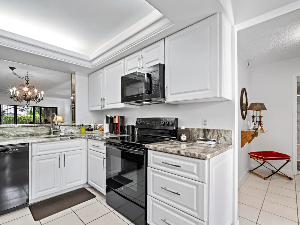 Well Kept, updated 1st floor 2 bdrm 2 bath condo in 55+ gated community in prime location. featuring new kitchen cabinets and granite counter top and many newer appliances. 2 year old roof and exterior painted in 2021, hot water heater 2023, Enclosed Patio with sliders, updated clubhouse and on site cafe. Community offers Golf, tennis, pickleball, clubs and social events. Country club living without the fees. Best buy! Close to shopping, Restaurants, beaches and famous Downtown Delray, Mizner Park and 2 major airports. Pets welcome