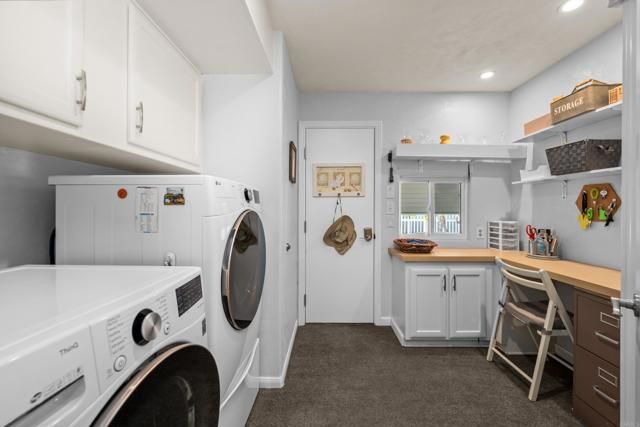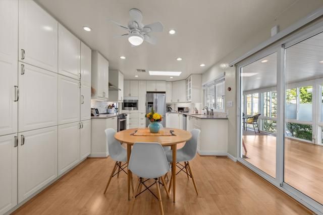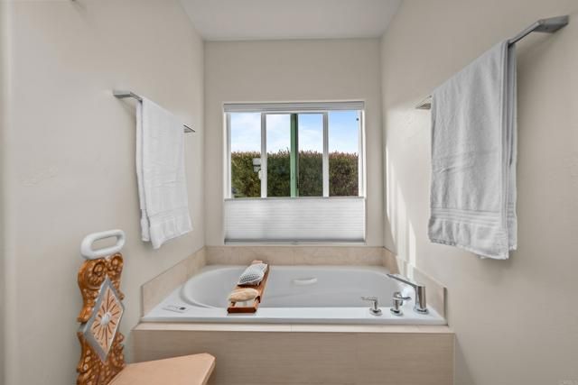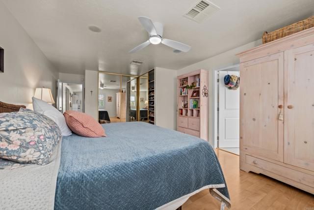 Exceptional home- in size & lot- in this premier land-owned, guard-gated 55+ community in S.D. North County. Completely remodeled in 2015, this home offers 2,000+ sq. ft. with incomparable space, comfort & style. Solar panels installed along with new roof in 2022. Vaulted ceiling in the living room with French doors, skylight & electric fireplace. Eat-in kitchen with new induction range/oven & 22 pull-out drawers (there's pantry shelving too!) sets the stage for highest-quality design & modern convenience throughout. Two bedrooms & den/office plus 3 full baths (custom counters) give you plenty of options including an en-suite guest bedroom or live-in possibilities. The large master bedroom has a walk-in closet, separate shoe shelves & ceiling fan. Built-in speakers in both bedrooms, living room & separate dining room. The primary bath is your spa. Custom jet tub, separate shower with seat, safety bars, wall & hand-held shower heads, double sinks, bidet toilet & vanity counter. Entire home has custom windows with shutters/upgraded shades, along with recessed ceiling lights with dimmers. Several additional rooms add abundant storage (with 700 sq. ft. of additional enclosed space), craft, exercise or reading room options. Wet bar with seating, sink & wine refrigerator. The attached shed has electrical, sinks & EV power access. The garden-like yard features a large paved private patio, & separate outdoor dining area with fountain. Automatic sprinkler system & motion detector lighting. Household water softener/filtration system. Serene park like surroundings with pond, creeks and numerous amenities including pool/spa, pickleball/tennis, gym, ceramics room w/ kiln, RV pkg & more. All within minutes of the beach, shopping, restaurants, medical care & more.