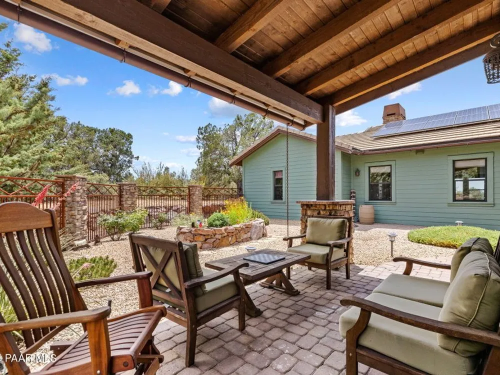Welcome to your private retreat nestled in the highly sought-after gated community of Talking Rock. This beautifully maintained property with owned solar, sits on a full acre and offers the perfect blend of luxury, comfort, and versatility--ideal for full-time living or a serene second home escape.The main residence spans 2,196 square feet, featuring three spacious bedrooms and two bathrooms. The open, light-filled layout is complemented by thoughtful upgrades throughout. Including a large island and built -in oven. The primary suite includes a custom walk-in closet and private patio access, which is already equipped with electrical and plumbing for a future spa--an ideal spot to unwind and enjoy the peaceful Arizona nights.