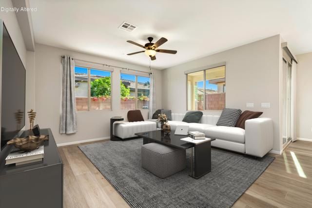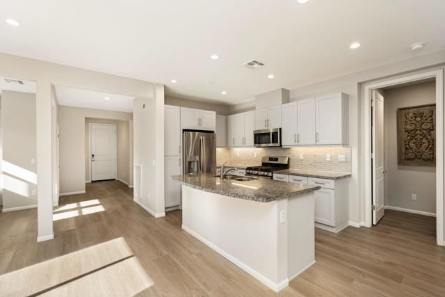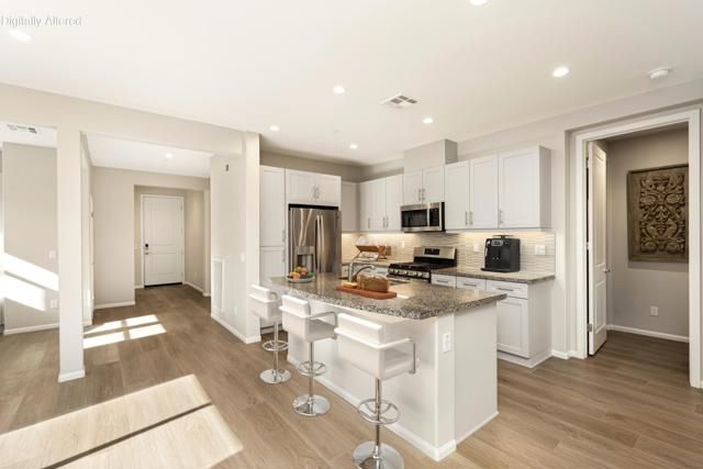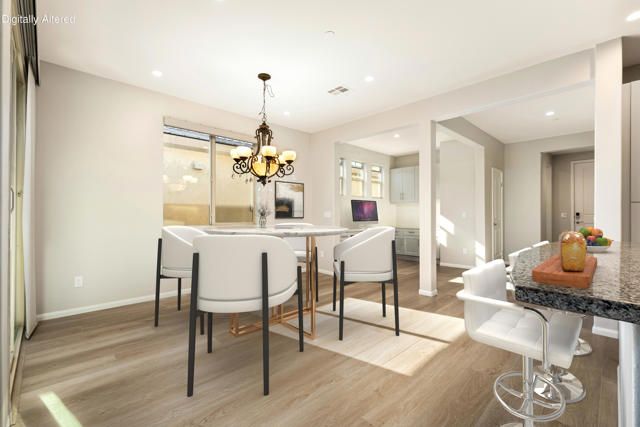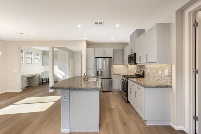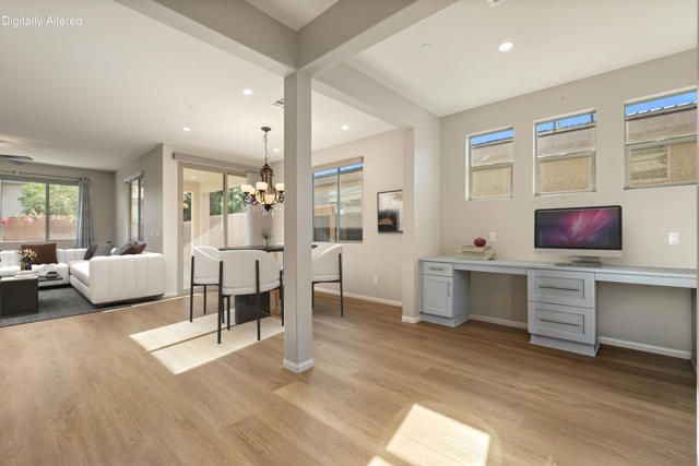 Nestled behind the prestigious gates of Trilogy Polo Club, this elevated Muros Resort Collection residence blends modern luxury with effortless desert living, showcasing plank tile flooring, upgraded white soft‑close cabinetry, custom interior doors, and designer touches throughout its open‑concept layout. The entertainer's kitchen shines with stainless steel appliances, a 5‑burner gas range, prep island with bar seating, granite slab surfaces, a Frigidaire refrigerator/freezer, custom subway tile backsplash, and a sleek single‑basin sink. The spa‑inspired primary suite features an oversized shower with bench seating, dual undermount sinks, and upgraded fixtures, while the open office area offers upper and lower cabinetry plus dual desk spaces ideal for projects or productivity. Outside, an extended wrap‑around paver patio with multiple seating areas creates the perfect backdrop for sunrise coffees or sunset wine. Additional highlights include a two‑car garage with four overhead storage racks and access to world‑class amenities--tennis and pickleball courts, fitness center, resort and lap pools, poker and billiards room, artisan and culinary studios, putting green, bocce, oversized chess, picnic areas, and more.