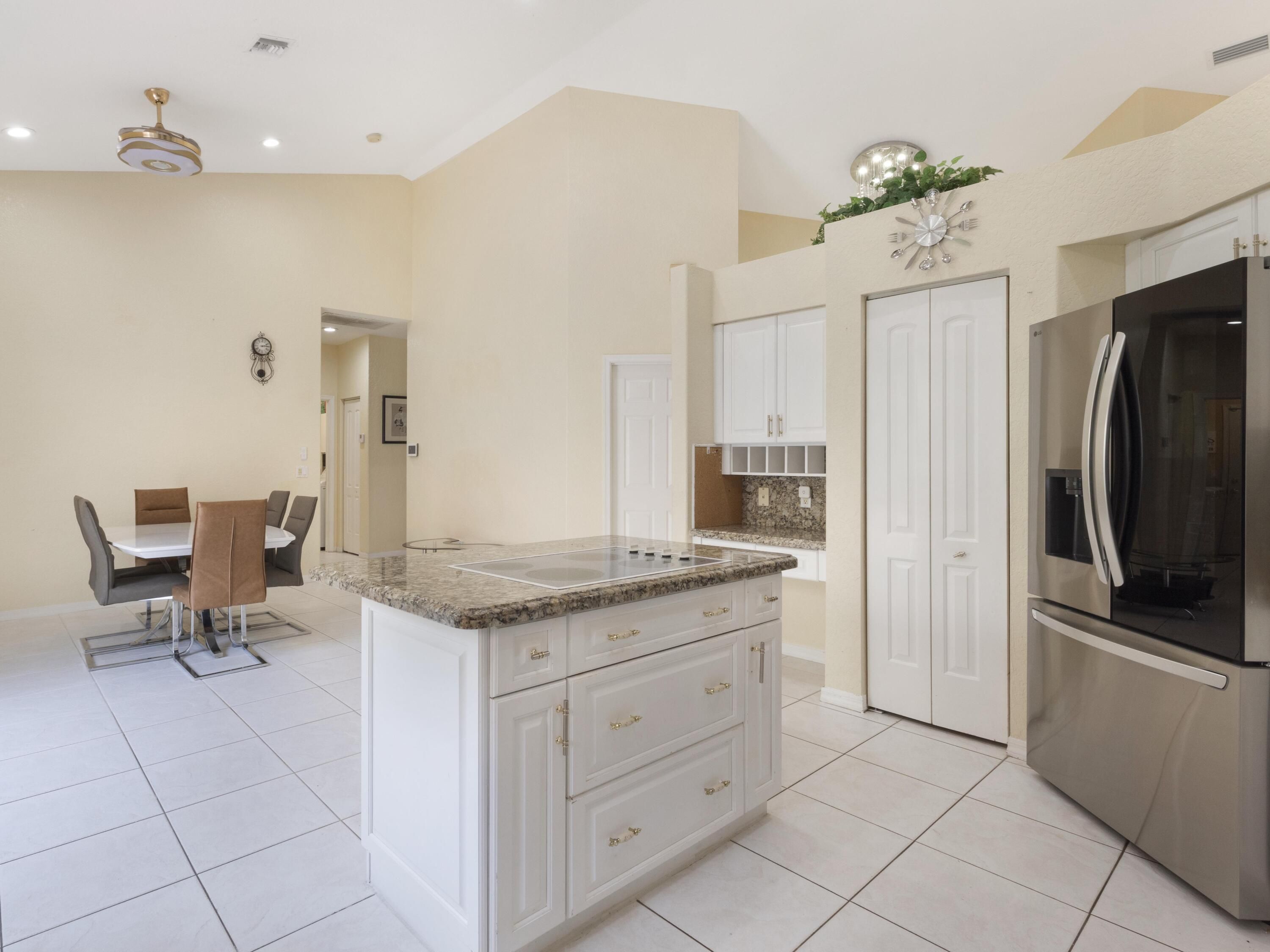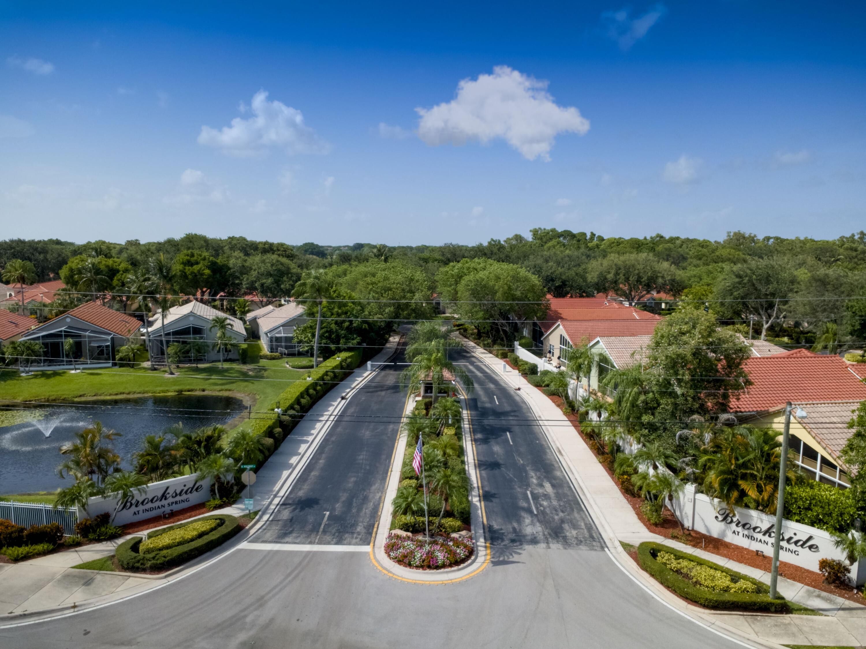Brookside is an intimate boutique community of Indian Spring Country Club, featuring a private, man-gated entrance, with no mandatory membership fees required. This meticulously maintained residence features one of the largest models, spanning over 2,100 sqft, with vaulted ceilings and expansive windows that flood the interior with natural light. The open-concept kitchen offers custom cabinets, granite countertops, and a breakfast bar. Three spacious bedrooms, a primary suite with two custom-built walk-in closets and a spa-like en-suite with dual vanities, a glass-enclosed shower, and a soaking tub. Three bathrooms, including two full baths and a separate powder room, ensure convenience. A private screened patio extends outdoor living for entertaining or relaxation with no rear neighbors. A private screened patio extends outdoor living for entertaining or relaxation with no rear neighbors. Combining modern upgrades, this spectacular home offers a newer AC (2023), water heater (2021), and a thoughtful layout. This spacious home blends style and comfort in a serene, luxury community.