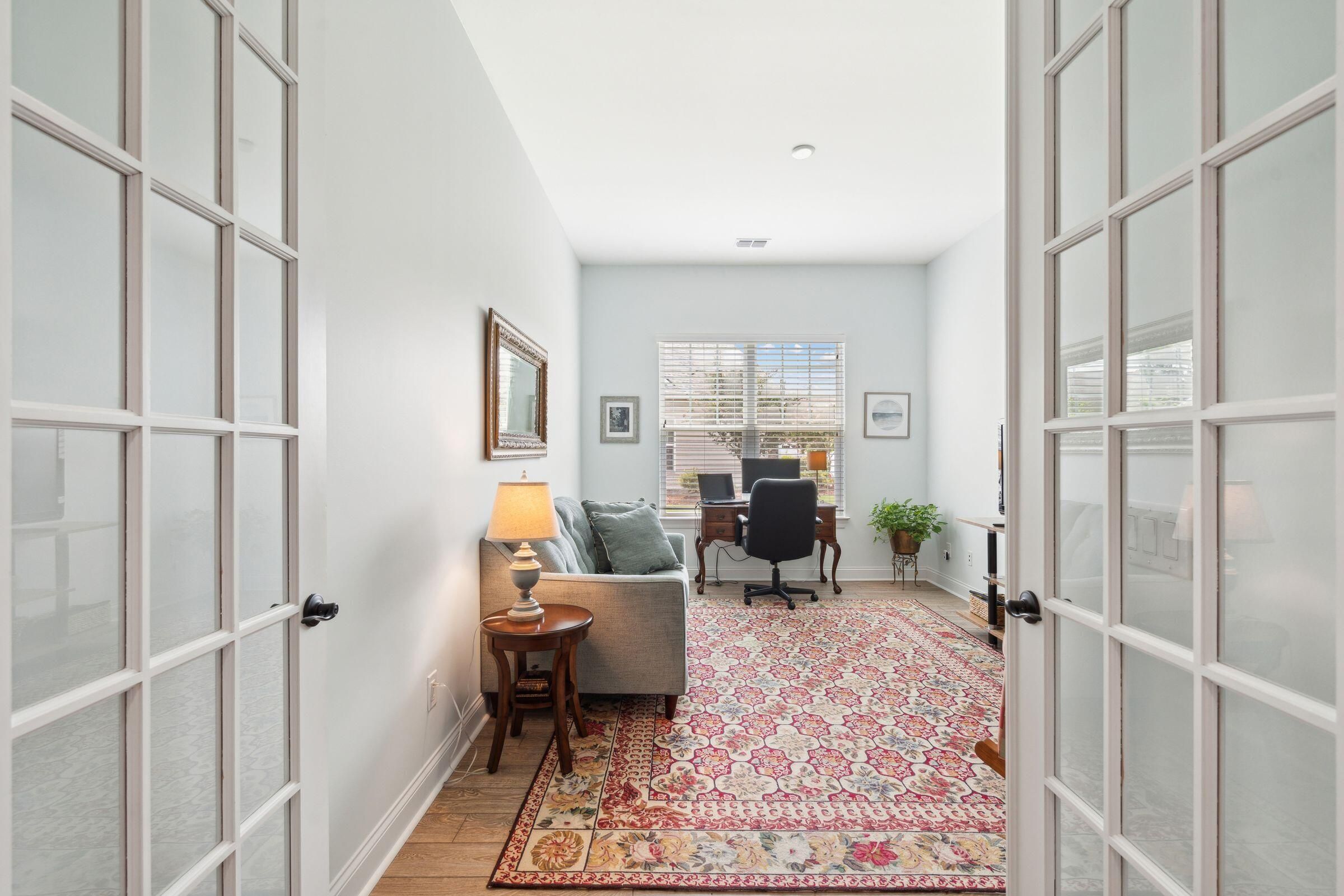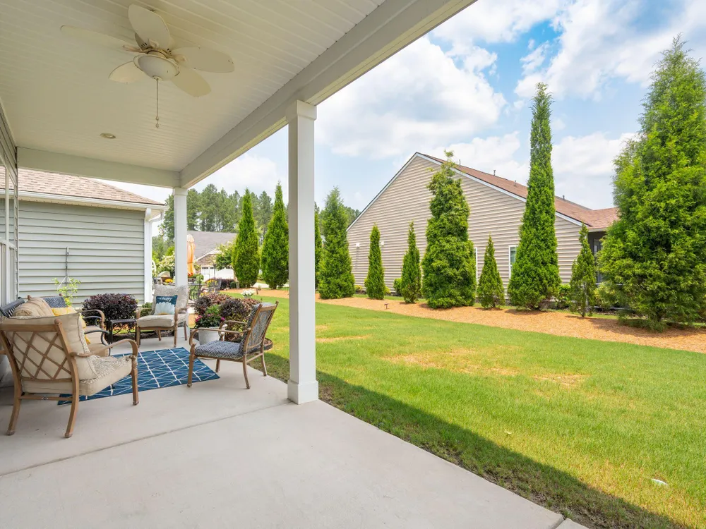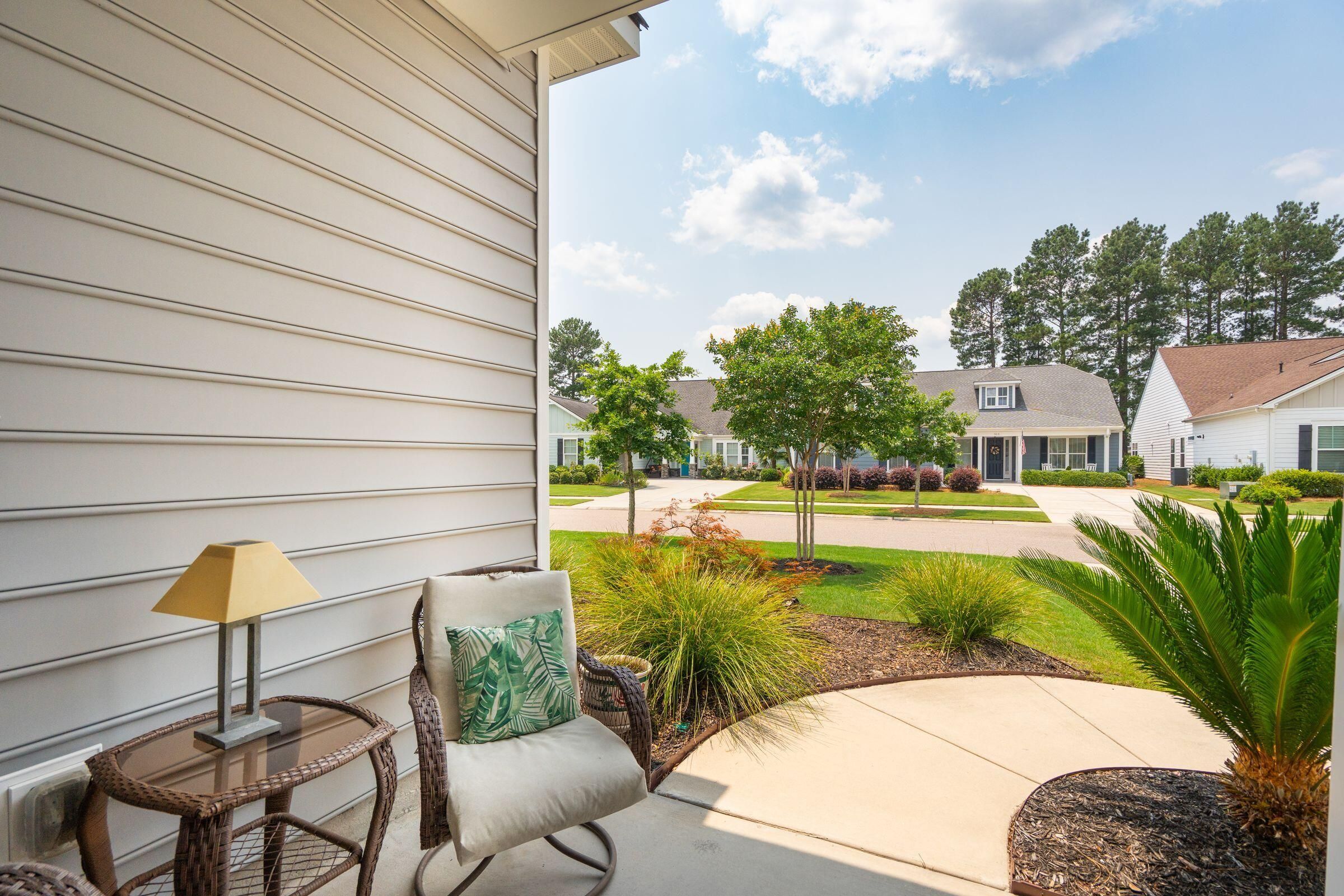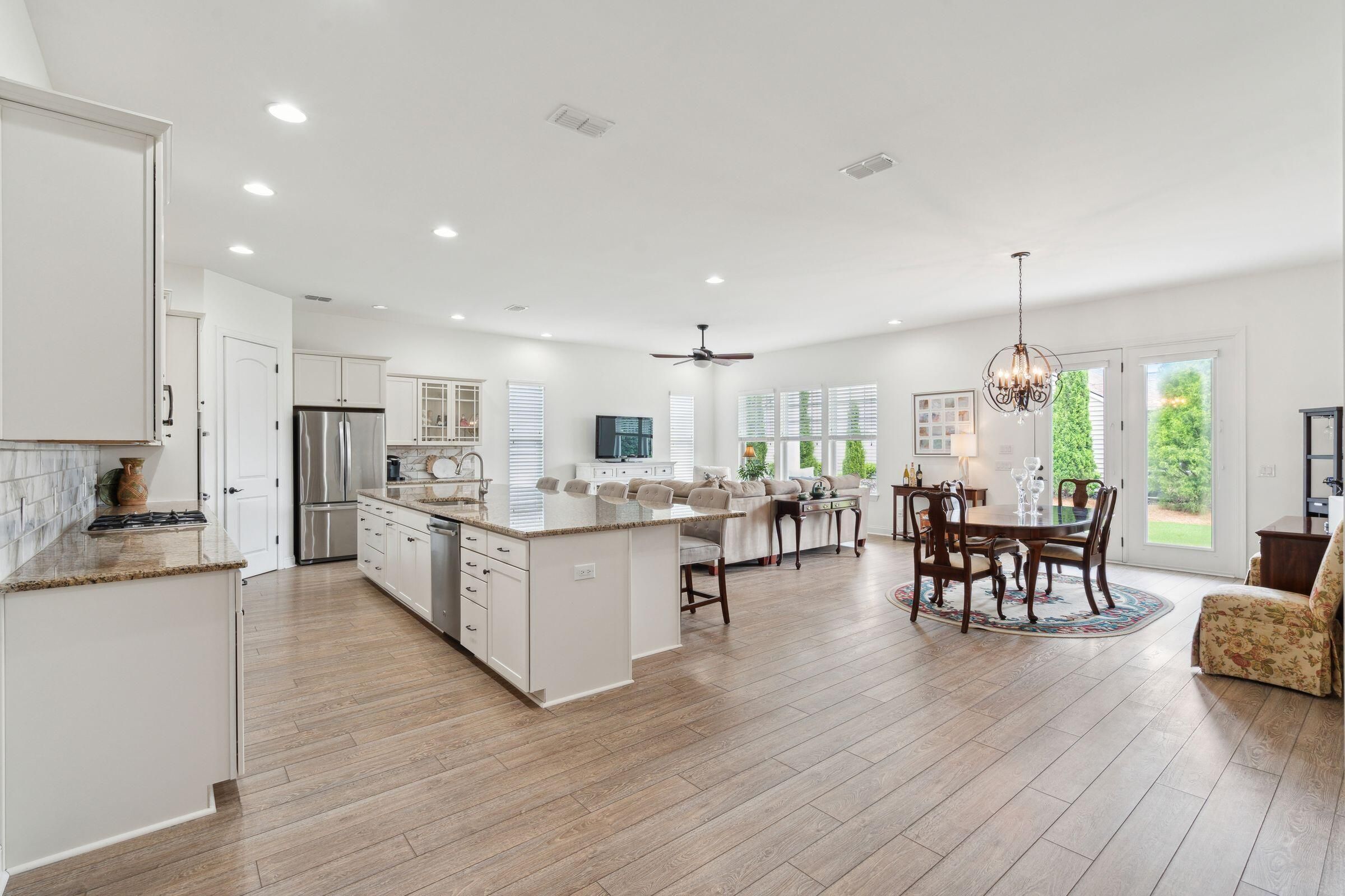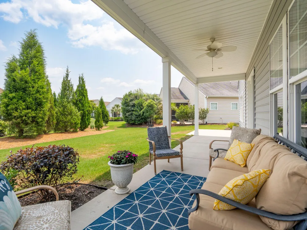 This beautifully maintained, single-story home with 2 bedroom suites, 2.5 bathrooms, and a dedicated office in Four Seasons at Lakes of Cane Bay could be the beginning of your next life chapter--where you finally have time for what matters most. No yard work, no stairs, low-maintenance, no stress--just the freedom to live fully. You'll love the welcoming front entry, spacious open-concept living/dining/kitchen area, French-door office, ample storage, and tall windows and glass doors that invite soft natural light throughout. The chef's kitchen features a large central island with seating, granite countertops, a gas cooktop, stainless steel appliances (including a double wall oven), tall soft-close cabinets, a walk-in pantry, and a cozy breakfast nook. Relax in the well-sized primary......suite with a generous walk-in closet and a spa-like ensuite bathroom featuring a walk-in shower with a glass door and built-in bench, a wrap-around dual-sink vanity with granite counters, and a private water closet. Greet neighbors from the covered front porch and invite them into the elegant foyer. Host overnight guests comfortably in the secondary suite, which includes its own full bathroom and walk-in closet. Enjoy backyard views from the living room, primary suite, and large partially covered patio. Additional features include easy-care laminate flooring, decorative wainscoting and crown molding, 9'+ ceilings with fans and recessed lighting, a handy drop zone near the attached 2-car garage, a spacious laundry room with cabinets and a utility sink, plus multiple storage and linen closets. The builder's 10-year structural warranty and the seller's termite bond transfer to the new owner for added peace of mind. Four Seasons at Lakes of Cane Bay is an award-winning, amenity-rich, 55+ gated community in Summerville near Charleston, SC. Feel safe and relaxed with a 24/7 staffed guardhouse and gated entry. Trash pickup, full lawn care (mowing, weeding, seeding, edging, fertilizing), and incredible resort-style amenities are all included. Enjoy kayaking, canoeing, and boating on the community's private 300+ acre lake with an 8-mile waterway, boat ramp, and dock. Stay active at the Lake House amenity center, offering 3 pools (2 outdoor, 1 indoor), a fitness center, movement studio, ballroom, demo kitchen, arts and crafts room, game room, billiards, and outdoor amphitheater. Tennis, pickleball, and bocce courts round out the lifestyle offerings. Convenient to hospitals, shopping, and dining in Summerville, and only 40-60 minutes to Charleston International Airport, Historic Downtown Charleston and area beaches. Why wait? Schedule your private showing today and discover resort-style life at Four Seasons!