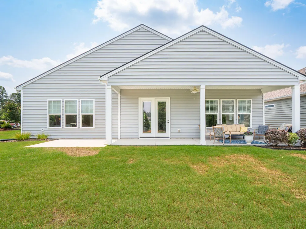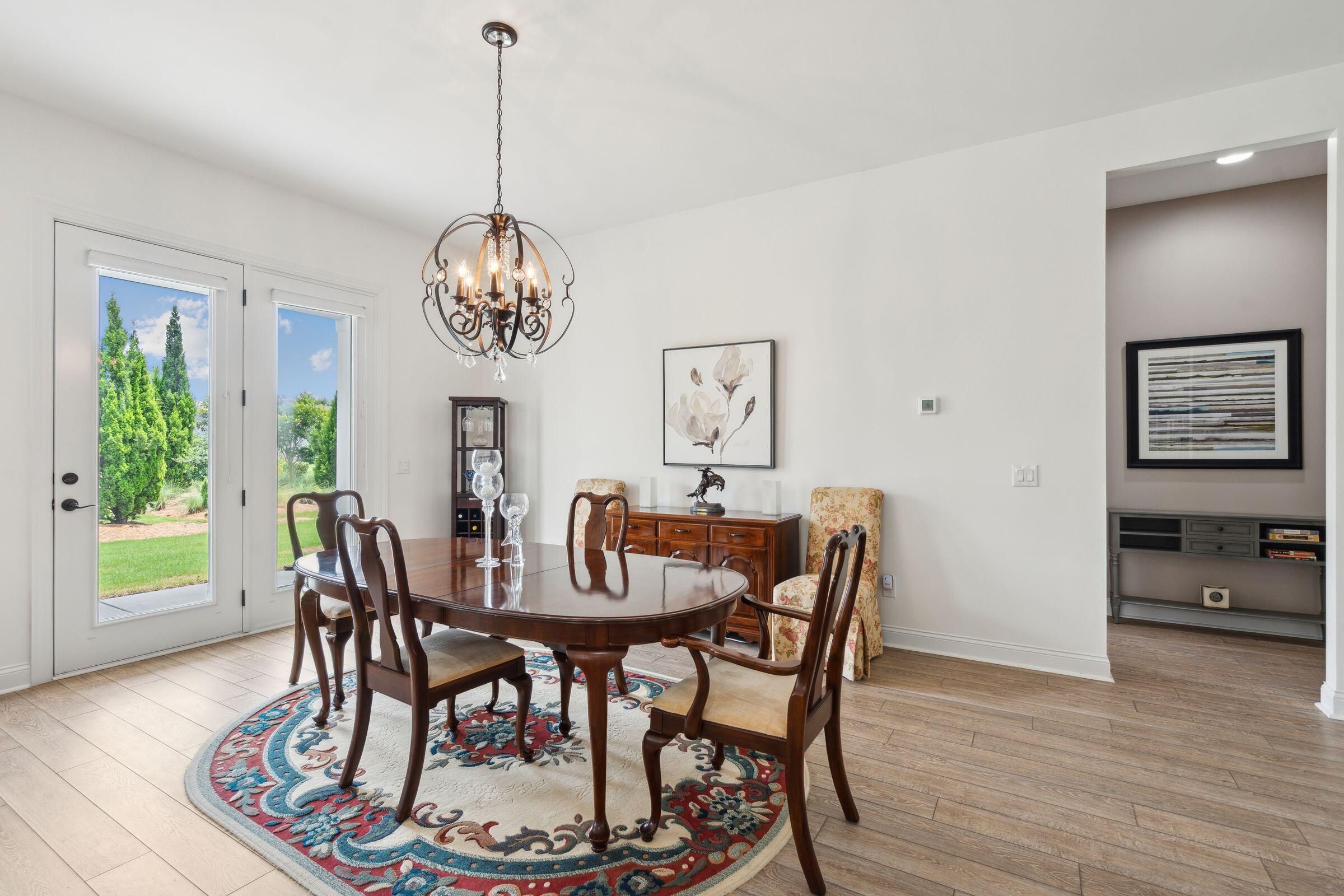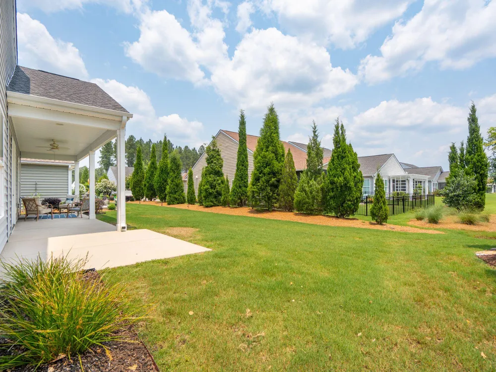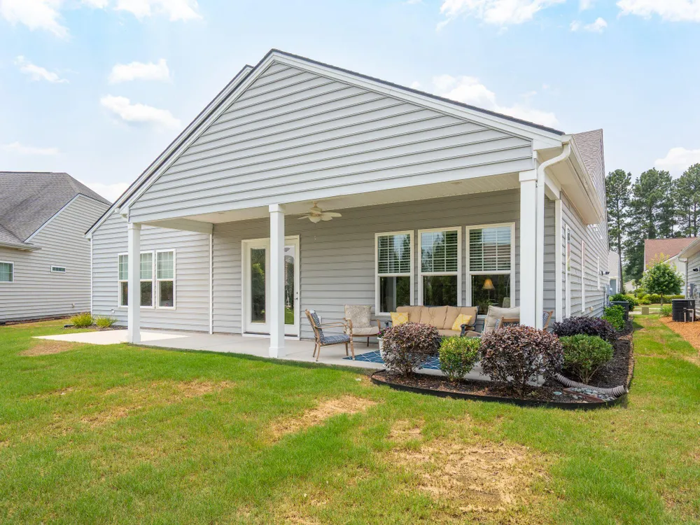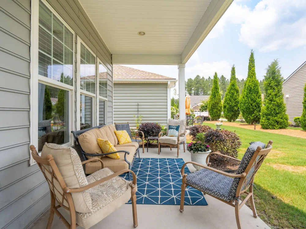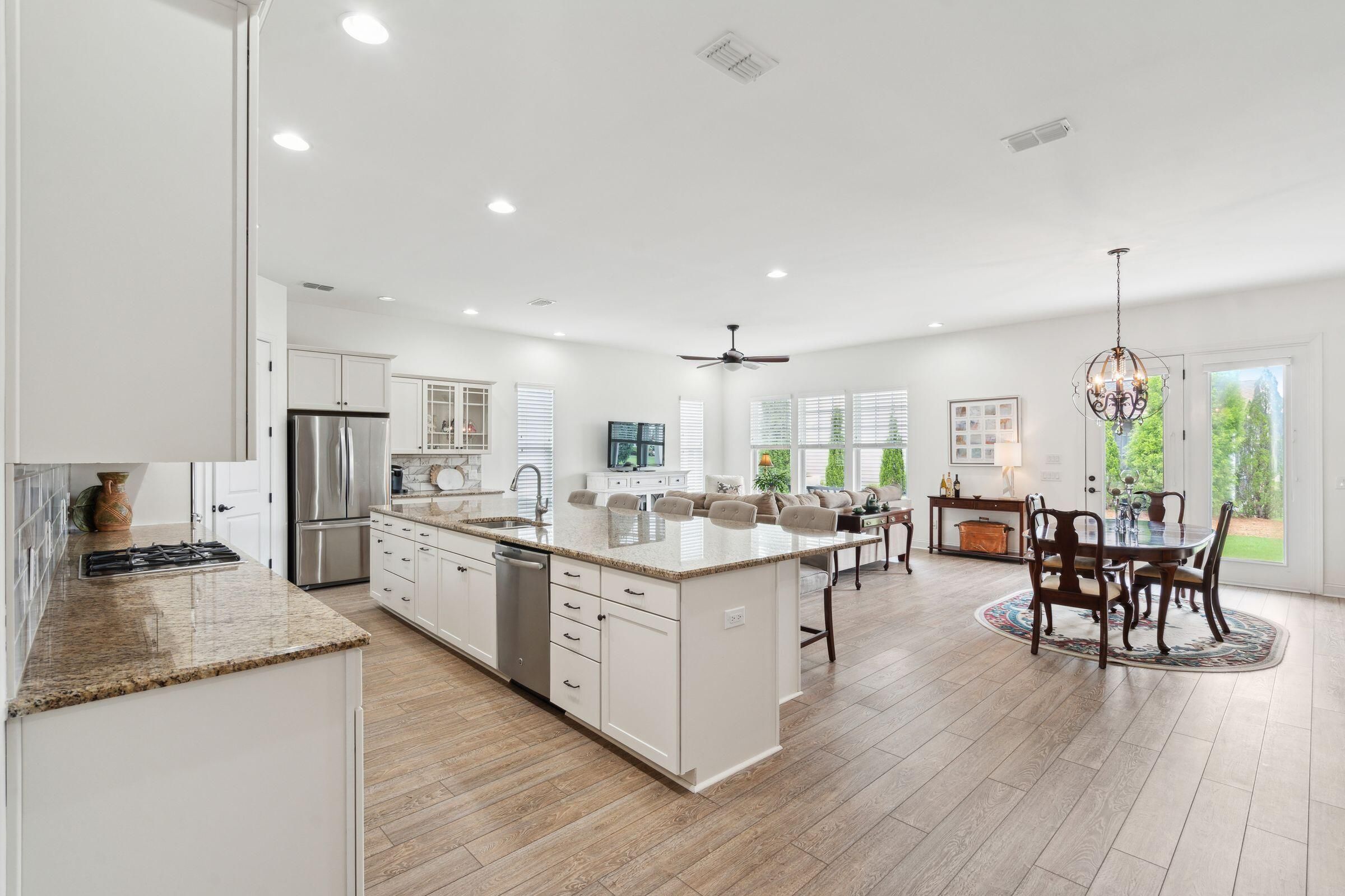 This beautifully maintained, single-story home with 2 bedroom suites, 2.5 bathrooms, and a dedicated office in Four Seasons at Lakes of Cane Bay could be the beginning of your next life chapter--where you finally have time for what matters most. No yard work, no stairs, low-maintenance, no stress--just the freedom to live fully. You'll love the welcoming front entry, spacious open-concept living/dining/kitchen area, French-door office, ample storage, and tall windows and glass doors that invite soft natural light throughout. The chef's kitchen features a large central island with seating, granite countertops, a gas cooktop, stainless steel appliances (including a double wall oven), tall soft-close cabinets, a walk-in pantry, and a cozy breakfast nook. Relax in the well-sized primary......suite with a generous walk-in closet and a spa-like ensuite bathroom featuring a walk-in shower with a glass door and built-in bench, a wrap-around dual-sink vanity with granite counters, and a private water closet. Greet neighbors from the covered front porch and invite them into the elegant foyer. Host overnight guests comfortably in the secondary suite, which includes its own full bathroom and walk-in closet. Enjoy backyard views from the living room, primary suite, and large partially covered patio. Additional features include easy-care laminate flooring, decorative wainscoting and crown molding, 9'+ ceilings with fans and recessed lighting, a handy drop zone near the attached 2-car garage, a spacious laundry room with cabinets and a utility sink, plus multiple storage and linen closets. The builder's 10-year structural warranty and the seller's termite bond transfer to the new owner for added peace of mind. Four Seasons at Lakes of Cane Bay is an award-winning, amenity-rich, 55+ gated community in Summerville near Charleston, SC. Feel safe and relaxed with a 24/7 staffed guardhouse and gated entry. Trash pickup, full lawn care (mowing, weeding, seeding, edging, fertilizing), and incredible resort-style amenities are all included. Enjoy kayaking, canoeing, and boating on the community's private 300+ acre lake with an 8-mile waterway, boat ramp, and dock. Stay active at the Lake House amenity center, offering 3 pools (2 outdoor, 1 indoor), a fitness center, movement studio, ballroom, demo kitchen, arts and crafts room, game room, billiards, and outdoor amphitheater. Tennis, pickleball, and bocce courts round out the lifestyle offerings. Convenient to hospitals, shopping, and dining in Summerville, and only 40-60 minutes to Charleston International Airport, Historic Downtown Charleston and area beaches. Why wait? Schedule your private showing today and discover resort-style life at Four Seasons!