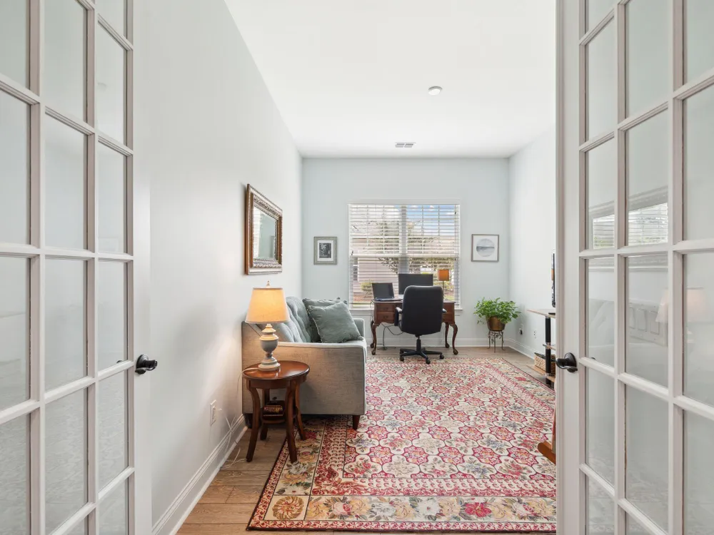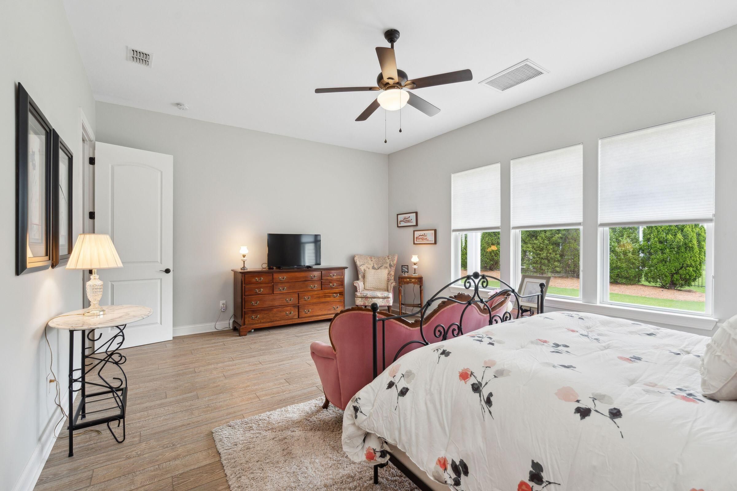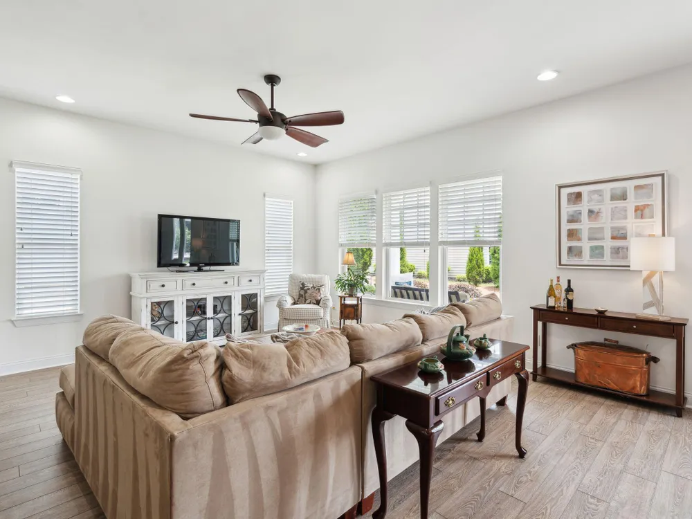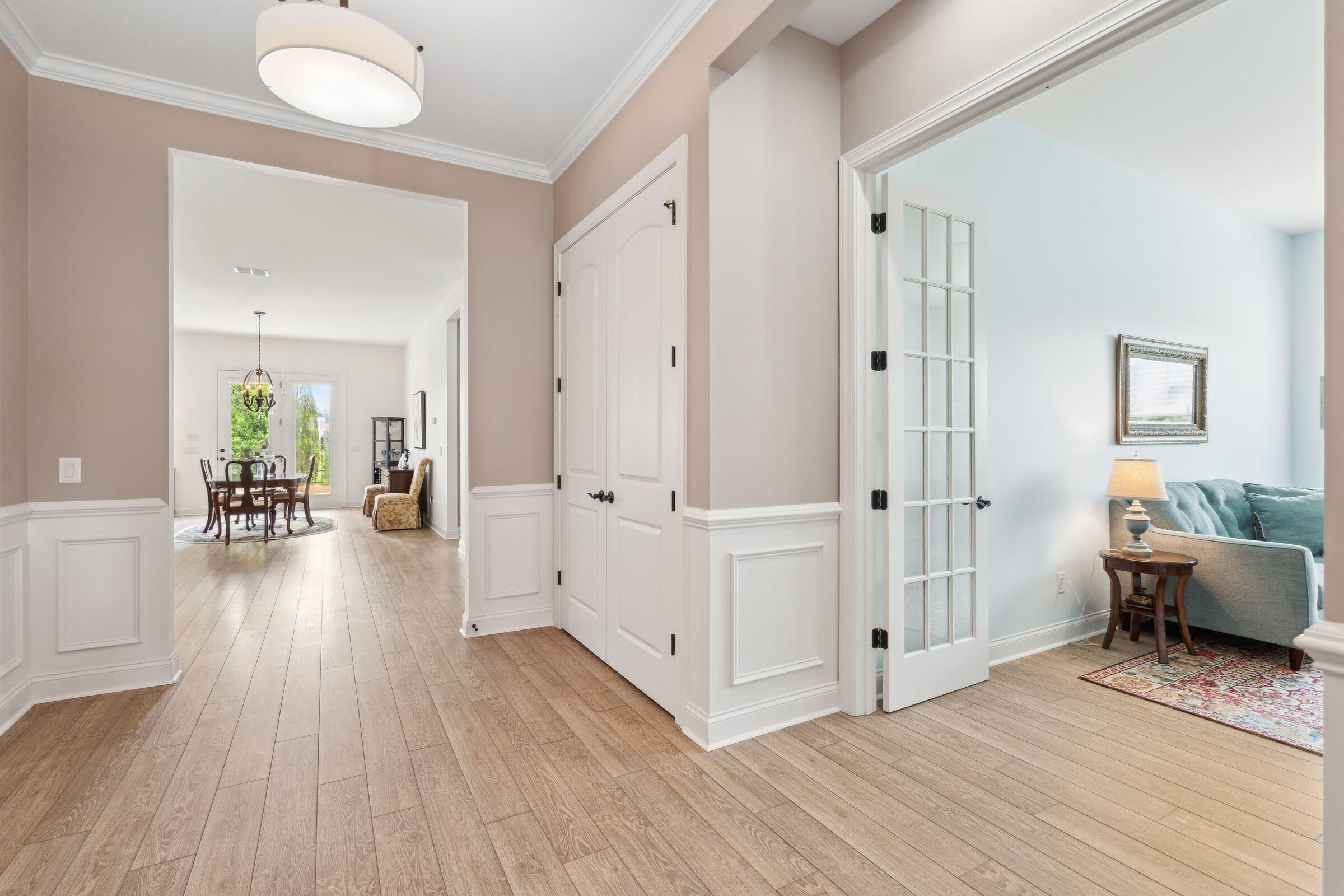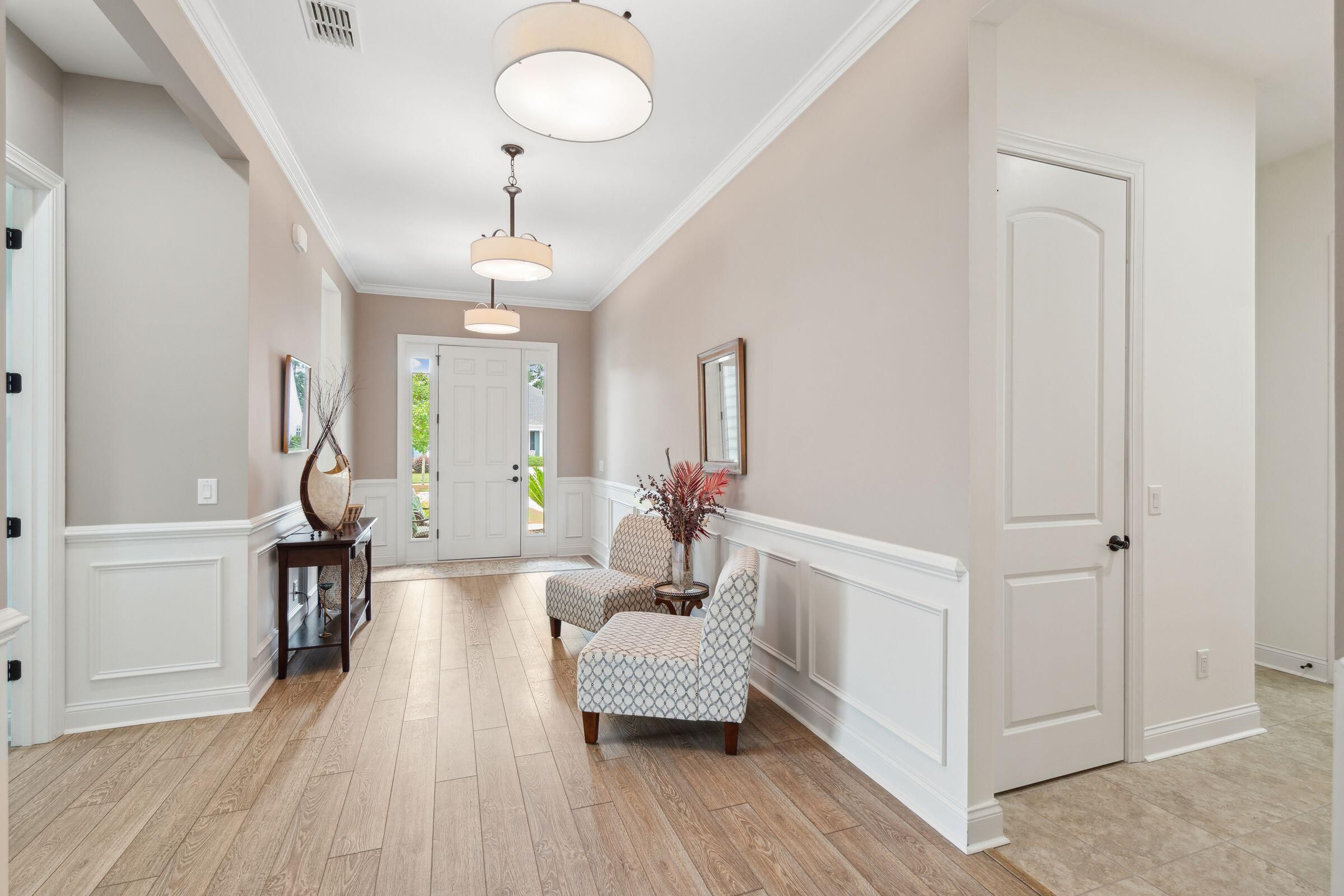 This beautifully maintained, single-story home with 2 bedroom suites, 2.5 bathrooms, and a dedicated office in Four Seasons at Lakes of Cane Bay could be the beginning of your next life chapter--where you finally have time for what matters most. No yard work, no stairs, low-maintenance, no stress--just the freedom to live fully. You'll love the welcoming front entry, spacious open-concept living/dining/kitchen area, French-door office, ample storage, and tall windows and glass doors that invite soft natural light throughout. The chef's kitchen features a large central island with seating, granite countertops, a gas cooktop, stainless steel appliances (including a double wall oven), tall soft-close cabinets, a walk-in pantry, and a cozy breakfast nook. Relax in the well-sized primary......suite with a generous walk-in closet and a spa-like ensuite bathroom featuring a walk-in shower with a glass door and built-in bench, a wrap-around dual-sink vanity with granite counters, and a private water closet. Greet neighbors from the covered front porch and invite them into the elegant foyer. Host overnight guests comfortably in the secondary suite, which includes its own full bathroom and walk-in closet. Enjoy backyard views from the living room, primary suite, and large partially covered patio. Additional features include easy-care laminate flooring, decorative wainscoting and crown molding, 9'+ ceilings with fans and recessed lighting, a handy drop zone near the attached 2-car garage, a spacious laundry room with cabinets and a utility sink, plus multiple storage and linen closets. The builder's 10-year structural warranty and the seller's termite bond transfer to the new owner for added peace of mind. Four Seasons at Lakes of Cane Bay is an award-winning, amenity-rich, 55+ gated community in Summerville near Charleston, SC. Feel safe and relaxed with a 24/7 staffed guardhouse and gated entry. Trash pickup, full lawn care (mowing, weeding, seeding, edging, fertilizing), and incredible resort-style amenities are all included. Enjoy kayaking, canoeing, and boating on the community's private 300+ acre lake with an 8-mile waterway, boat ramp, and dock. Stay active at the Lake House amenity center, offering 3 pools (2 outdoor, 1 indoor), a fitness center, movement studio, ballroom, demo kitchen, arts and crafts room, game room, billiards, and outdoor amphitheater. Tennis, pickleball, and bocce courts round out the lifestyle offerings. Convenient to hospitals, shopping, and dining in Summerville, and only 40-60 minutes to Charleston International Airport, Historic Downtown Charleston and area beaches. Why wait? Schedule your private showing today and discover resort-style life at Four Seasons!