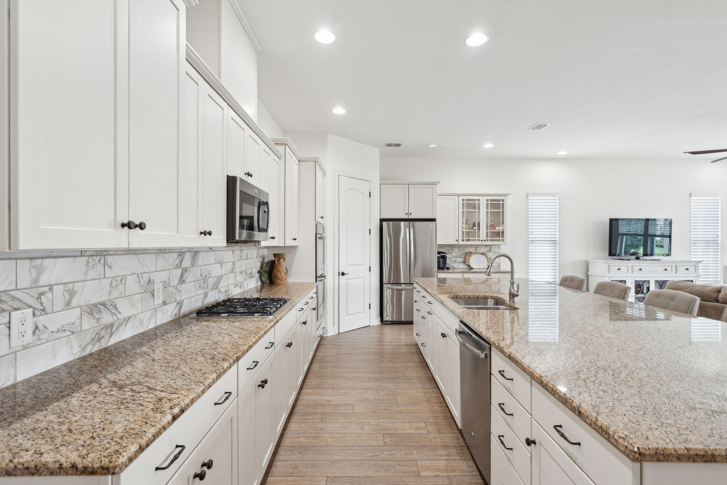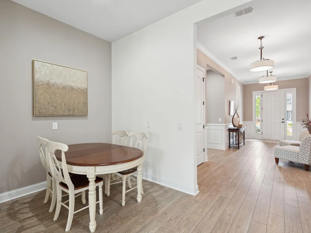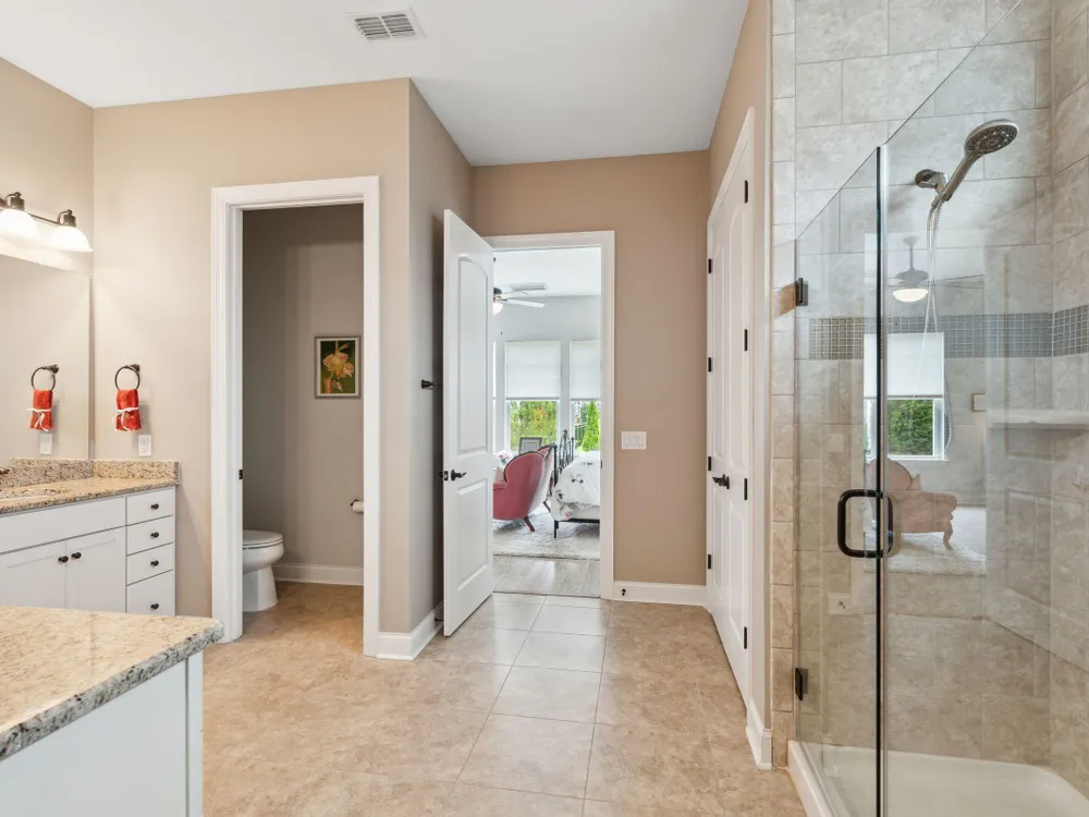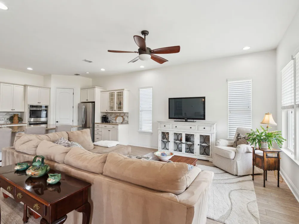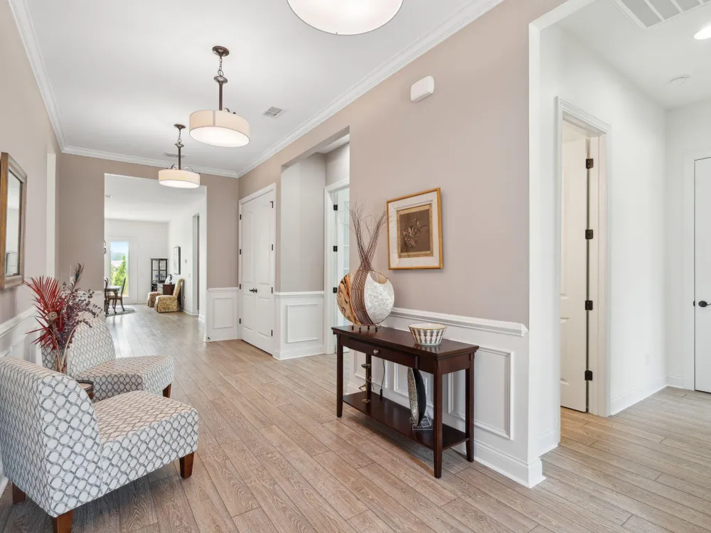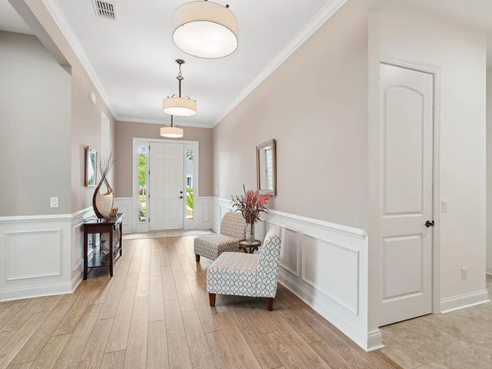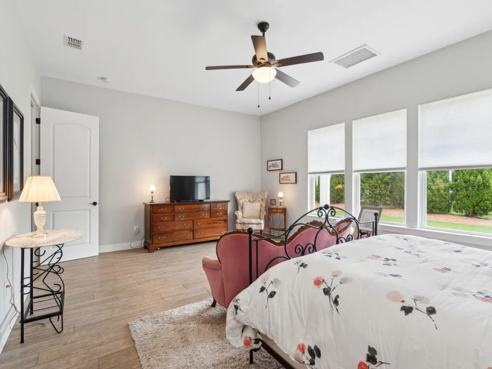 This beautifully maintained, single-story home with 2 bedroom suites, 2.5 bathrooms, and a dedicated office in Four Seasons at Lakes of Cane Bay could be the beginning of your next life chapter--where you finally have time for what matters most. No yard work, no stairs, low-maintenance, no stress--just the freedom to live fully. You'll love the welcoming front entry, spacious open-concept living/dining/kitchen area, French-door office, ample storage, and tall windows and glass doors that invite soft natural light throughout. The chef's kitchen features a large central island with seating, granite countertops, a gas cooktop, stainless steel appliances (including a double wall oven), tall soft-close cabinets, a walk-in pantry, and a cozy breakfast nook. Relax in the well-sized primary......suite with a generous walk-in closet and a spa-like ensuite bathroom featuring a walk-in shower with a glass door and built-in bench, a wrap-around dual-sink vanity with granite counters, and a private water closet. Greet neighbors from the covered front porch and invite them into the elegant foyer. Host overnight guests comfortably in the secondary suite, which includes its own full bathroom and walk-in closet. Enjoy backyard views from the living room, primary suite, and large partially covered patio. Additional features include easy-care laminate flooring, decorative wainscoting and crown molding, 9'+ ceilings with fans and recessed lighting, a handy drop zone near the attached 2-car garage, a spacious laundry room with cabinets and a utility sink, plus multiple storage and linen closets. The builder's 10-year structural warranty and the seller's termite bond transfer to the new owner for added peace of mind. Four Seasons at Lakes of Cane Bay is an award-winning, amenity-rich, 55+ gated community in Summerville near Charleston, SC. Feel safe and relaxed with a 24/7 staffed guardhouse and gated entry. Trash pickup, full lawn care (mowing, weeding, seeding, edging, fertilizing), and incredible resort-style amenities are all included. Enjoy kayaking, canoeing, and boating on the community's private 300+ acre lake with an 8-mile waterway, boat ramp, and dock. Stay active at the Lake House amenity center, offering 3 pools (2 outdoor, 1 indoor), a fitness center, movement studio, ballroom, demo kitchen, arts and crafts room, game room, billiards, and outdoor amphitheater. Tennis, pickleball, and bocce courts round out the lifestyle offerings. Convenient to hospitals, shopping, and dining in Summerville, and only 40-60 minutes to Charleston International Airport, Historic Downtown Charleston and area beaches. Why wait? Schedule your private showing today and discover resort-style life at Four Seasons!
