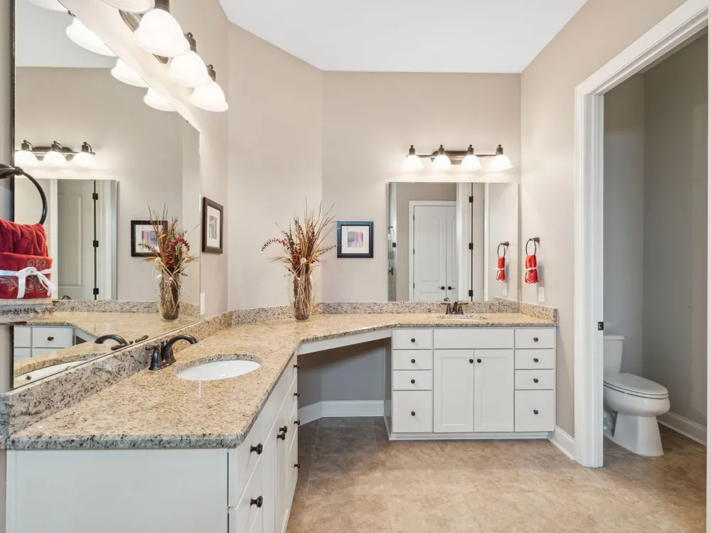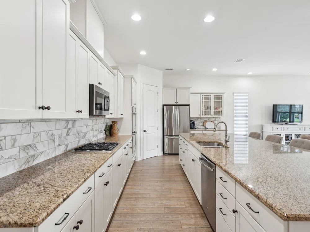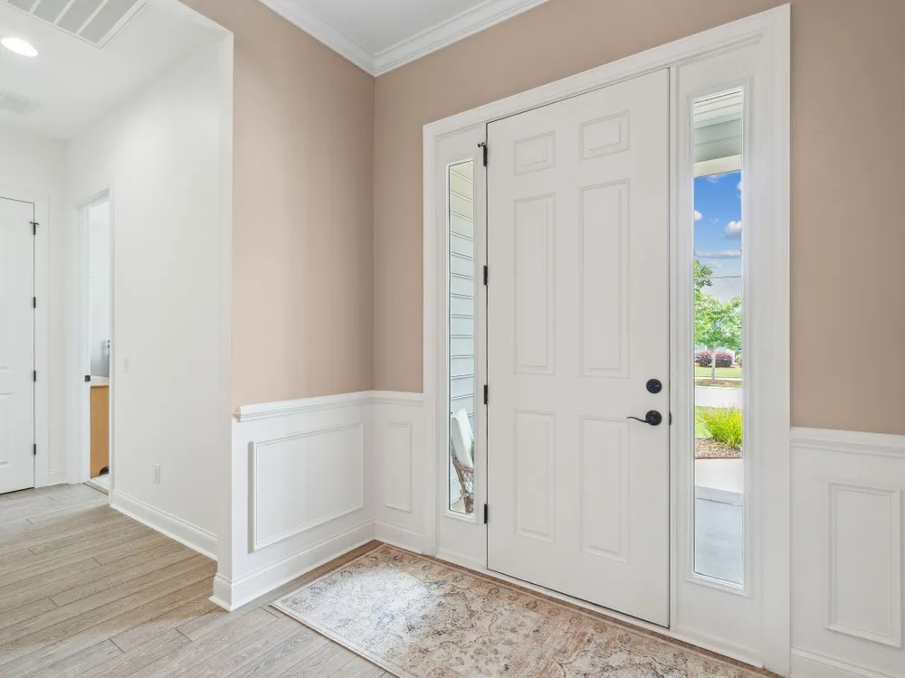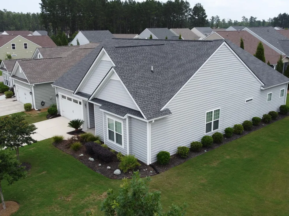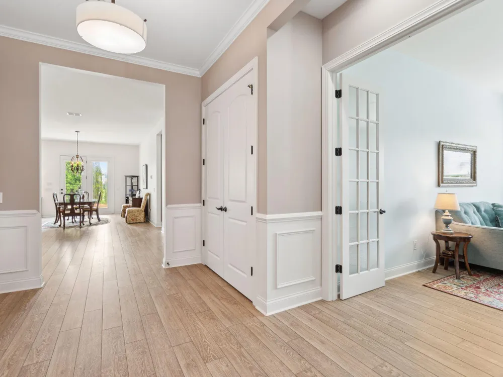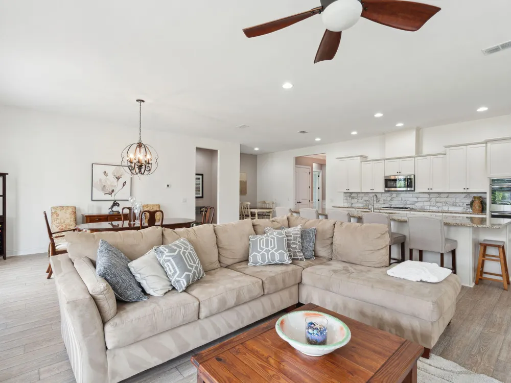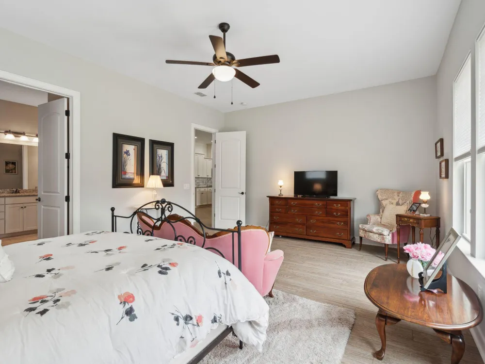 This beautifully maintained, single-story home with 2 bedroom suites, 2.5 bathrooms, and a dedicated office in Four Seasons at Lakes of Cane Bay could be the beginning of your next life chapter--where you finally have time for what matters most. No yard work, no stairs, low-maintenance, no stress--just the freedom to live fully. You'll love the welcoming front entry, spacious open-concept living/dining/kitchen area, French-door office, ample storage, and tall windows and glass doors that invite soft natural light throughout. The chef's kitchen features a large central island with seating, granite countertops, a gas cooktop, stainless steel appliances (including a double wall oven), tall soft-close cabinets, a walk-in pantry, and a cozy breakfast nook. Relax in the well-sized primary......suite with a generous walk-in closet and a spa-like ensuite bathroom featuring a walk-in shower with a glass door and built-in bench, a wrap-around dual-sink vanity with granite counters, and a private water closet. Greet neighbors from the covered front porch and invite them into the elegant foyer. Host overnight guests comfortably in the secondary suite, which includes its own full bathroom and walk-in closet. Enjoy backyard views from the living room, primary suite, and large partially covered patio. Additional features include easy-care laminate flooring, decorative wainscoting and crown molding, 9'+ ceilings with fans and recessed lighting, a handy drop zone near the attached 2-car garage, a spacious laundry room with cabinets and a utility sink, plus multiple storage and linen closets. The builder's 10-year structural warranty and the seller's termite bond transfer to the new owner for added peace of mind. Four Seasons at Lakes of Cane Bay is an award-winning, amenity-rich, 55+ gated community in Summerville near Charleston, SC. Feel safe and relaxed with a 24/7 staffed guardhouse and gated entry. Trash pickup, full lawn care (mowing, weeding, seeding, edging, fertilizing), and incredible resort-style amenities are all included. Enjoy kayaking, canoeing, and boating on the community's private 300+ acre lake with an 8-mile waterway, boat ramp, and dock. Stay active at the Lake House amenity center, offering 3 pools (2 outdoor, 1 indoor), a fitness center, movement studio, ballroom, demo kitchen, arts and crafts room, game room, billiards, and outdoor amphitheater. Tennis, pickleball, and bocce courts round out the lifestyle offerings. Convenient to hospitals, shopping, and dining in Summerville, and only 40-60 minutes to Charleston International Airport, Historic Downtown Charleston and area beaches. Why wait? Schedule your private showing today and discover resort-style life at Four Seasons!