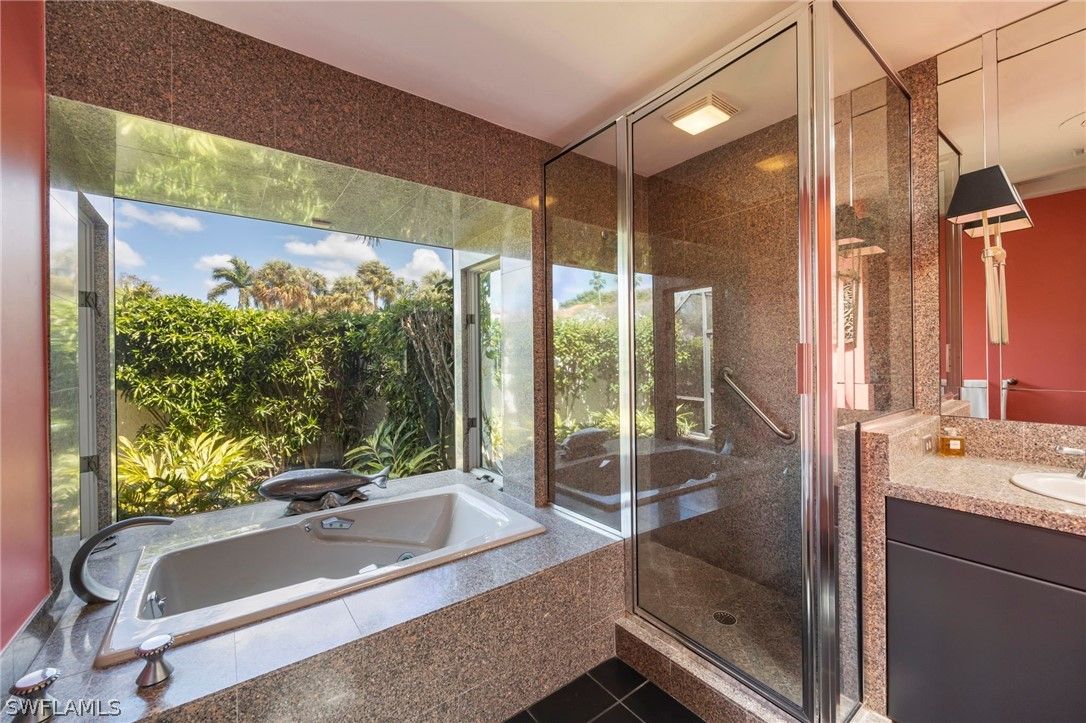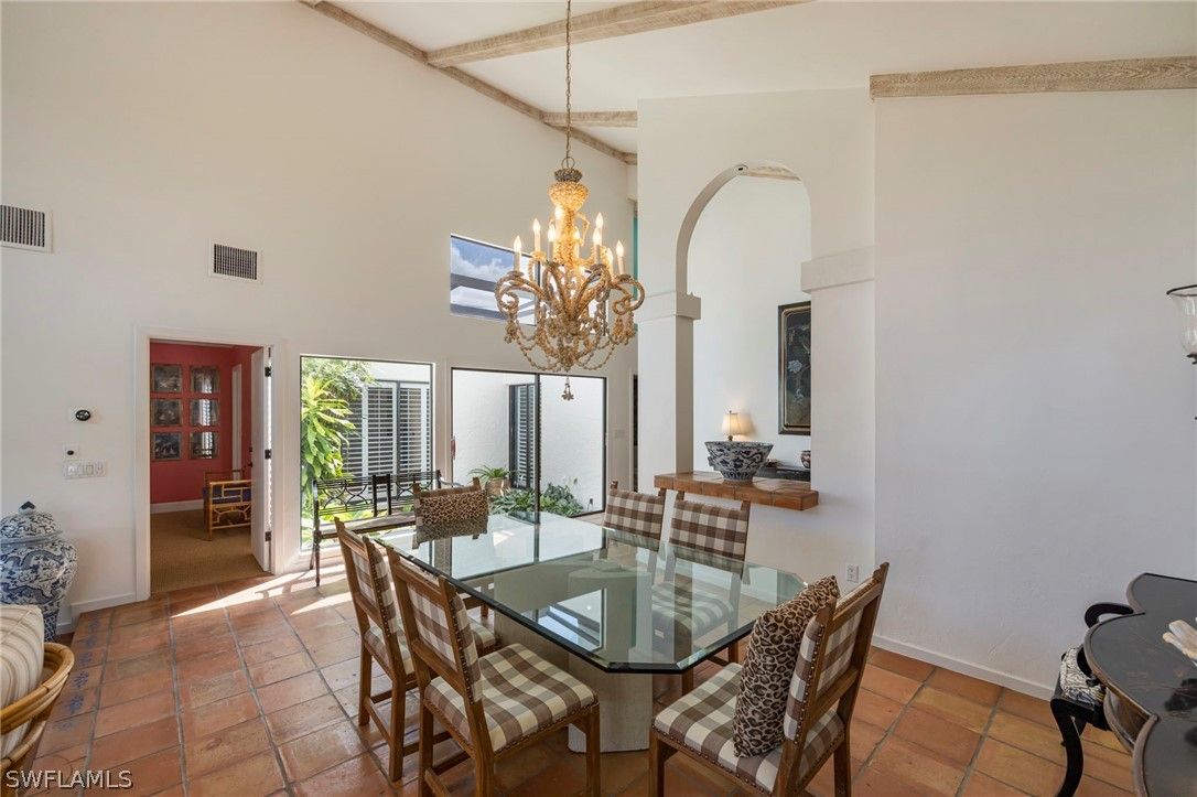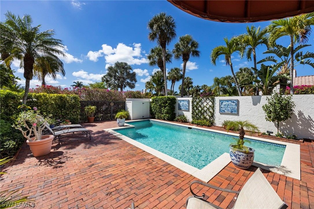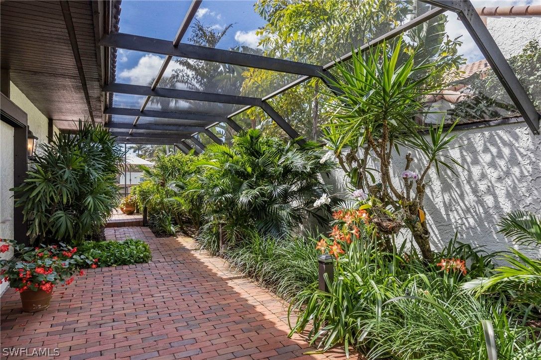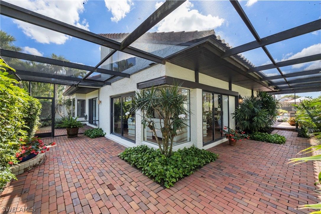This stunning courtyard villa offers the perfect blend of indoor–outdoor living in the heart of Pelican Bay. Centered around a sun-drenched private courtyard, the home features a beautifully resurfaced pool, outdoor grill, bar, lush tropical landscaping, and a tranquil fountain—creating an ideal setting for both relaxing and entertaining. Expansive windows, soaring ceilings, and a striking atrium fill the home with natural light, enhancing the open and flowing layout. The residence offers three bedrooms and two-and-a-half baths, along with a flexible open den featuring a cozy fireplace. Located just off the kitchen, the den overlooks the pool and includes French doors that open directly to the courtyard and gardens. A screened lanai surrounds the property, providing added privacy while allowing you to enjoy the beautifully landscaped grounds, highlighted by vibrant orchids in bloom. Additional features include an oversized two-car garage, in-home laundry, and low HOA fees—adding both comfort and convenience. All of this is set within one of Naples’ most sought-after communities. As a resident of Pelican Bay, you’ll enjoy exclusive private beach access with beachfront dining, miles of scenic walking and biking paths, kayaking, and exceptional amenities including tennis, pickleball, and a state-of-the-art fitness center. World-class shopping, dining, and entertainment are just a short walk away at Artis–Naples and Waterside Shops. This is a rare opportunity to experience the coveted Pelican Bay lifestyle in a private courtyard setting.