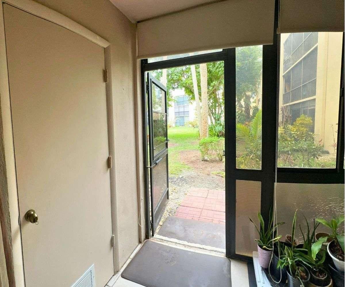Move-in ready ground-floor Delray Beach residence offering 2 bedrooms and 2 bathrooms with 930 square feet of well-designed living space. This updated condo features a desirable split layout with a spacious dining area, open galley kitchen, and bright living room overlooking peaceful garden views. A rare dual-entry design provides both a main entrance and a private garden-side entry with direct access toward the lake and scenic walking paths. The covered and screened patio is enclosed with acrylic doors and windows, extending the living space and creating an ideal setting for relaxation or entertaining. An added bonus to the usual screen enclosure. Interior upgrades include smooth ceilings, LED lighting, crown molding, modern baseboards, ceramic tile flooring throughout, and updated interior doors. The open galley kitchen offers custom wood cabinetry with corner storage solutions, granite countertops, and a modern faucet, flowing seamlessly into the dining and living areas. Both bathrooms have been tastefully remodeled with updated tilework, modern sinks, glass shower doors, new fixtures, and upgraded ventilation with integrated lighting. The primary suite features a walk-in closet and an updated ensuite bath. The second bedroom includes an oversized closet with three doors, no other unit has this, offering exceptional storage. Additional highlights include a new water heater 2025, an air conditioning system still under warranty, and a washer and dryer located inside the unit, the only one in this building. Assigned parking plus ample guest spaces available. Situated in a gated, park-like community with walking paths, clubhouse, tennis, pickleball, and a variety of recreational amenities. Professionally managed association with established guidelines for new residents. Association approval required prior to occupancy, seller haas details, website available. HOA up to date, yearly assessment covered, seller covers capital contribution. Easy to show. A well-maintained home offering comfort, upgrades, and an exceptional Delray Beach lifestyle.