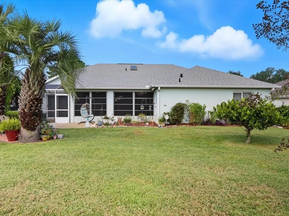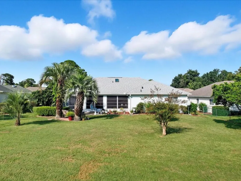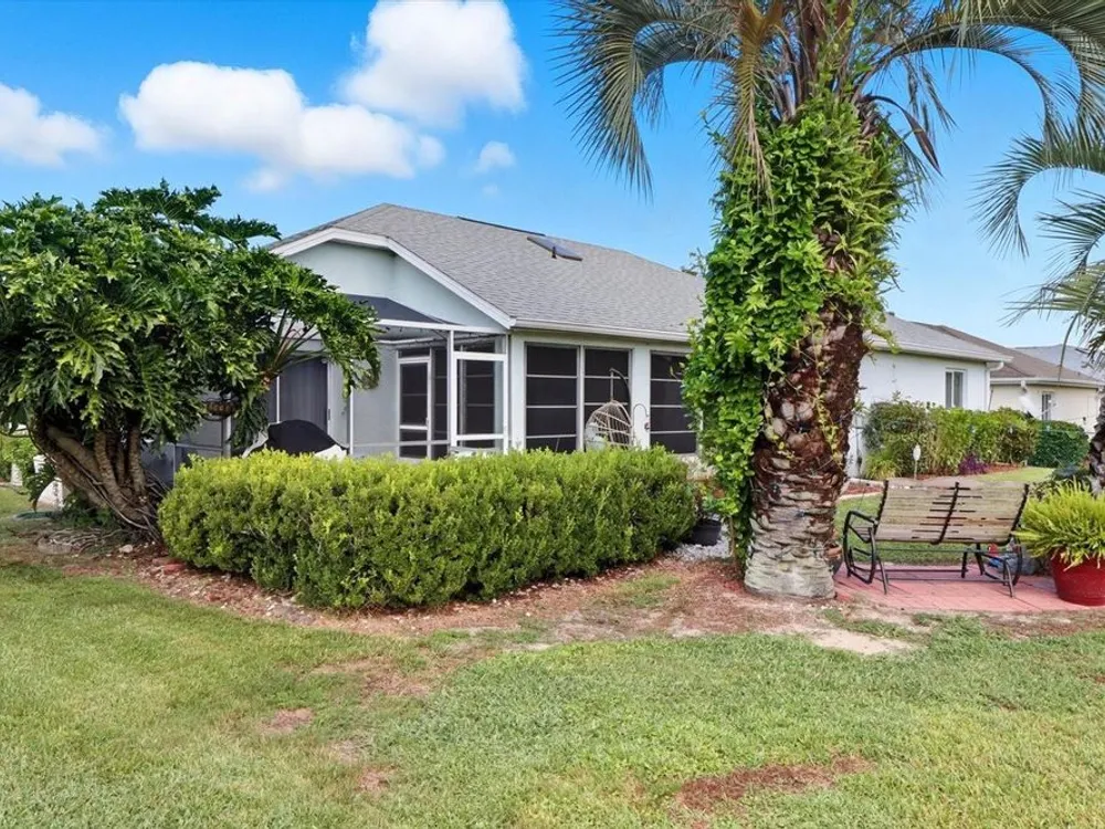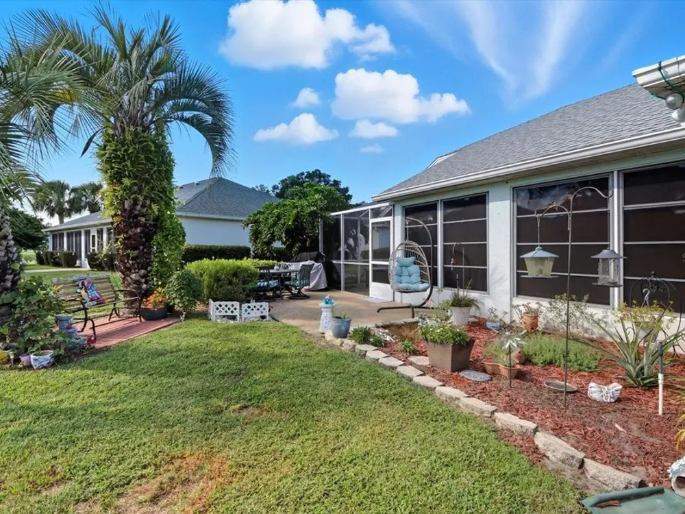 Welcome to the beautiful SABEL PALM model, nestled in the highly desirable 55+ community of Ocala Palms. Step inside to find natural light streaming through a large picture window, filling the open living and dining areas with warmth and creating an inviting flow that’s perfect for both relaxing and entertaining. The kitchen, features a SKYLIGHT, that continues the bright and cheerful atmosphere while offering a great space for gathering and enjoying everyday meals. The spacious primary suite is a true retreat, featuring DUAL WALK IN CLOSETS and a luxurious en suite bath with DUAL SINKS, a GARDEN TUB, and a WALK- IN SHOWER. What makes this suite especially unique is the direct access through sliding glass doors that open to the SCREENED 9x13 birdcage—an ideal spot for morning coffee or winding down in the evening. Just beyond, a 10x17 open Chattahoochee patio expands your outdoor living space, perfect for grilling, entertaining, or soaking up the Florida sunshine. Additional highlights include a backyard oasis framed by palm trees, lush mature landscaping, an INDOOR LAUNDRY with extra storage, a two-car garage with SCREENED DOORS allowing excellent airflow, and room for a golf cart. Ocala Palms offers resort-style amenities including an 18-hole golf course, driving range, putting green, and a 19,000 sq. ft. clubhouse featuring a fitness center, Olympic-size outdoor pool, heated indoor pool, hot tub, ballroom, arts and crafts studio, library, card/game rooms, bocce ball, and more. On-site dining, nearby shopping, medical offices, restaurants, and hospitals all add to the convenience and lifestyle this community provides. Call today to schedule your private showing! Roof 2021, HVAC 2013.