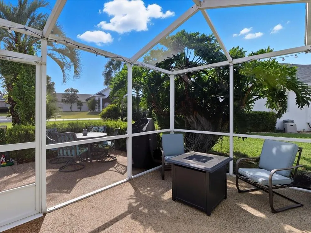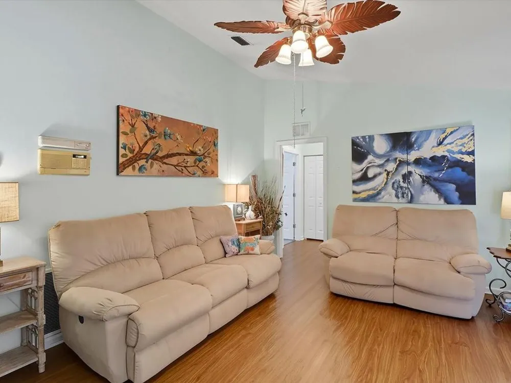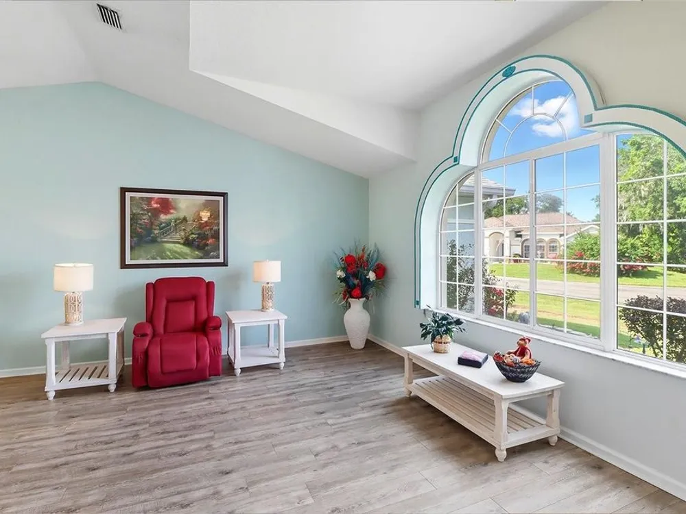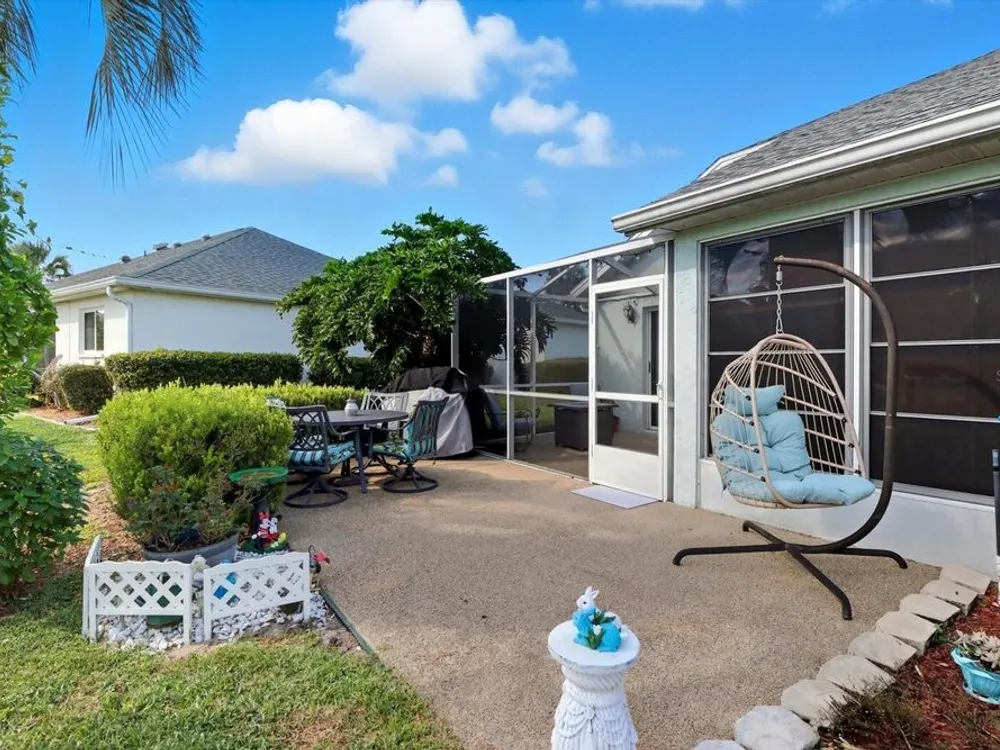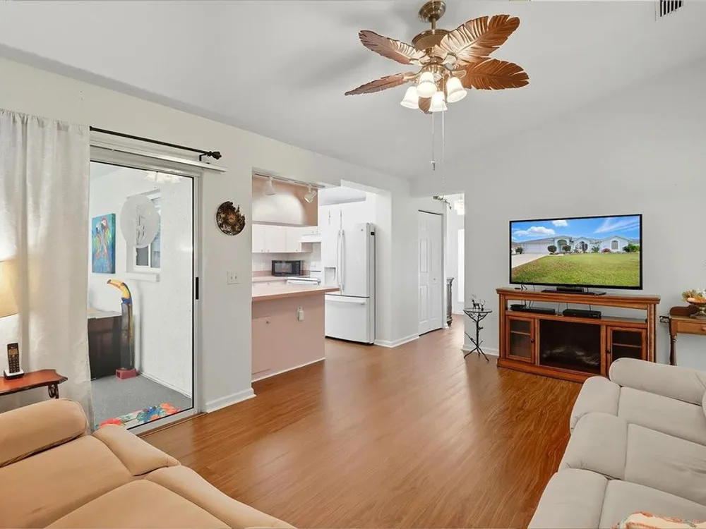 Welcome to the beautiful SABEL PALM model, nestled in the highly desirable 55+ community of Ocala Palms. Step inside to find natural light streaming through a large picture window, filling the open living and dining areas with warmth and creating an inviting flow that’s perfect for both relaxing and entertaining. The kitchen, features a SKYLIGHT, that continues the bright and cheerful atmosphere while offering a great space for gathering and enjoying everyday meals. The spacious primary suite is a true retreat, featuring DUAL WALK IN CLOSETS and a luxurious en suite bath with DUAL SINKS, a GARDEN TUB, and a WALK- IN SHOWER. What makes this suite especially unique is the direct access through sliding glass doors that open to the SCREENED 9x13 birdcage—an ideal spot for morning coffee or winding down in the evening. Just beyond, a 10x17 open Chattahoochee patio expands your outdoor living space, perfect for grilling, entertaining, or soaking up the Florida sunshine. Additional highlights include a backyard oasis framed by palm trees, lush mature landscaping, an INDOOR LAUNDRY with extra storage, a two-car garage with SCREENED DOORS allowing excellent airflow, and room for a golf cart. Ocala Palms offers resort-style amenities including an 18-hole golf course, driving range, putting green, and a 19,000 sq. ft. clubhouse featuring a fitness center, Olympic-size outdoor pool, heated indoor pool, hot tub, ballroom, arts and crafts studio, library, card/game rooms, bocce ball, and more. On-site dining, nearby shopping, medical offices, restaurants, and hospitals all add to the convenience and lifestyle this community provides. Call today to schedule your private showing! Roof 2021, HVAC 2013.