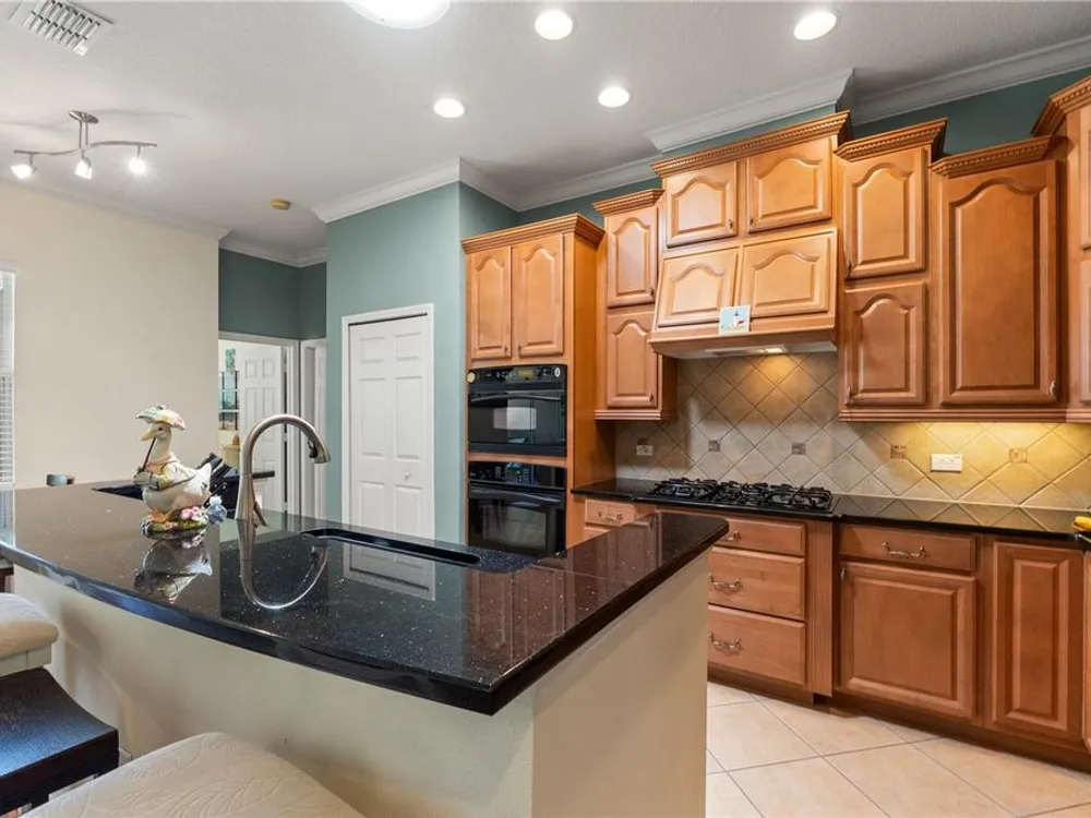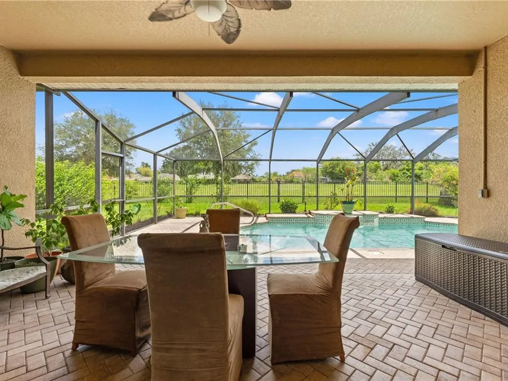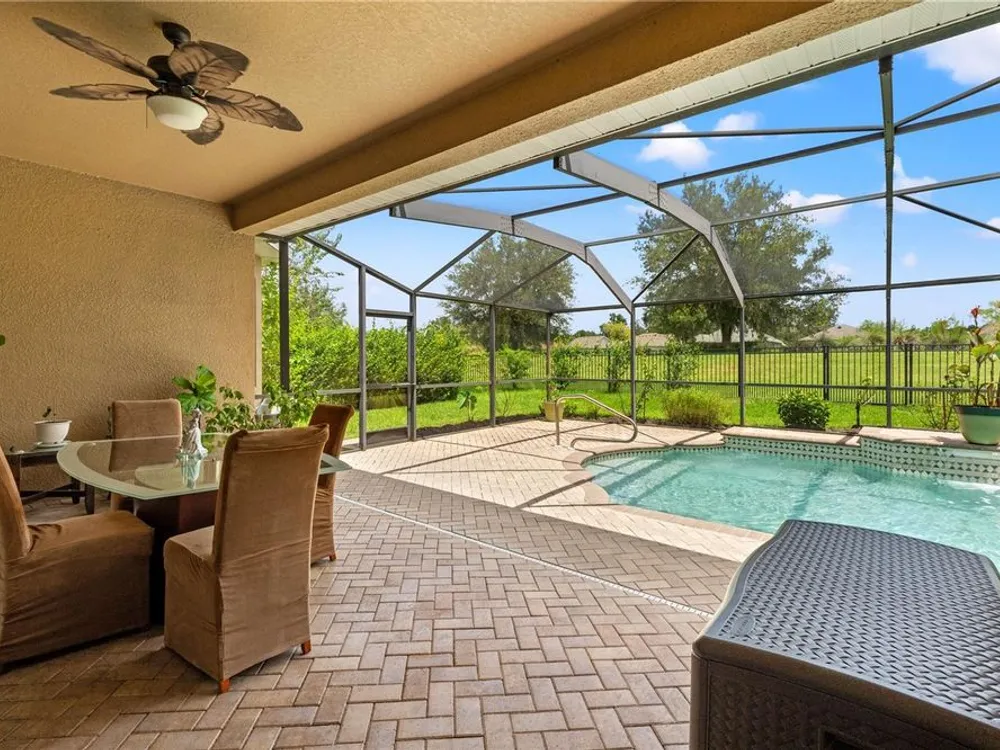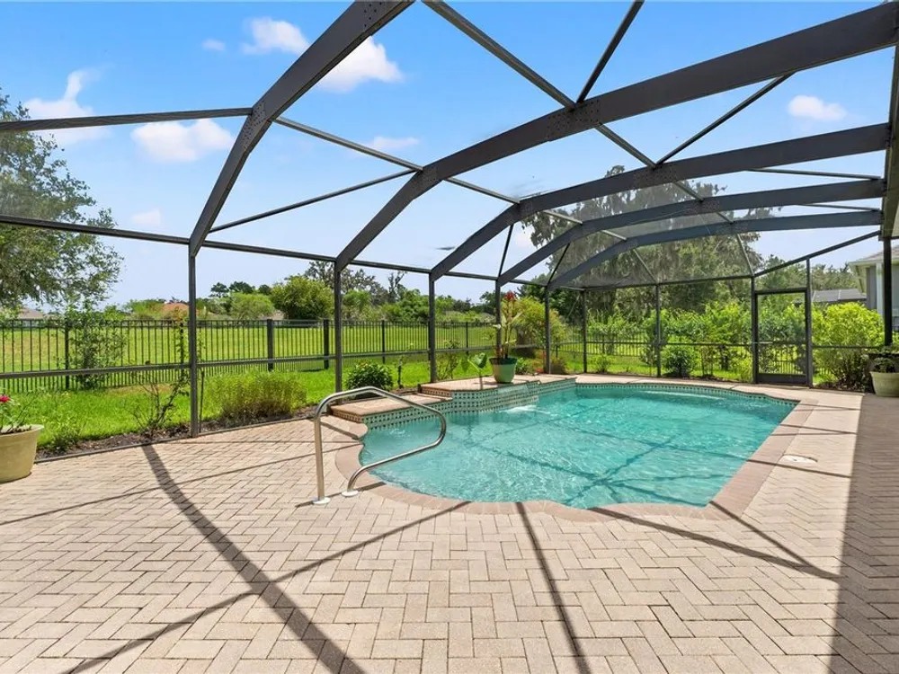 Live like you’re on vacation every day in this gorgeous 3-bedroom, 3-bath home with a screened, heated pool and premium finishes in the gated Cascades at Southern Hills. From the charming front porch to the sparkling pool with open green space views, every detail is designed for comfort and style. The chef’s kitchen is the heart of the home, featuring granite countertops, custom wood cabinetry, gas cooktop, center island with bar seating, built-in oven, and wine rack, all opening to a bright, spacious living area perfect for entertaining. Crown molding, wood flooring, and a flowing open layout make this home as beautiful as it is functional. The private owner’s suite offers dual walk-in closets, a tray ceiling, and a spa-worthy bath with separate vanities, a soaking tub, and a walk-in shower, while additional bedrooms are generously sized and the formal dining space is ideal for gatherings. Step outside to a screened lanai with paver decking, heated pool, and tranquil backyard views. Located in a community with a gated entrance, clubhouse, and easy access to golf, shopping, dining, and the Suncoast Parkway for a quick Tampa commute, this home delivers the perfect blend of luxury, comfort, and convenience—schedule your private tour today before it’s gone.