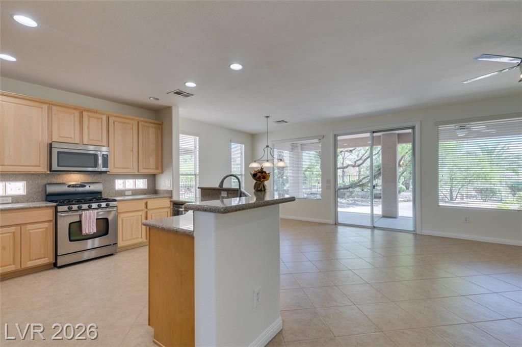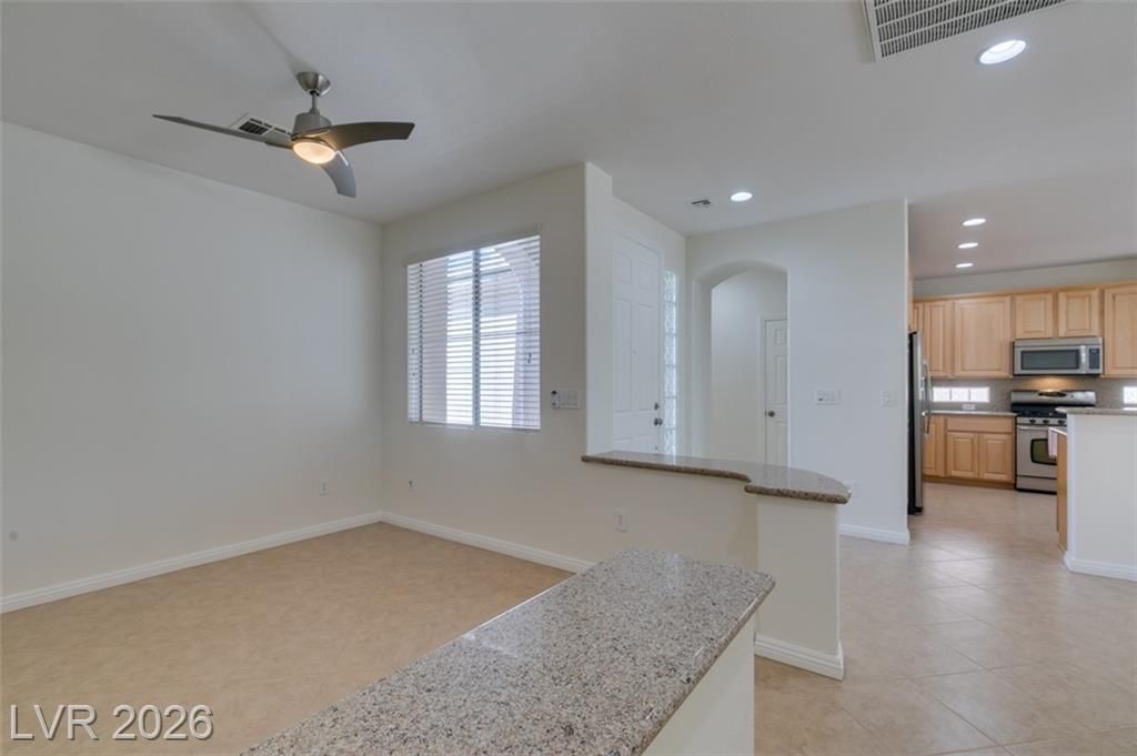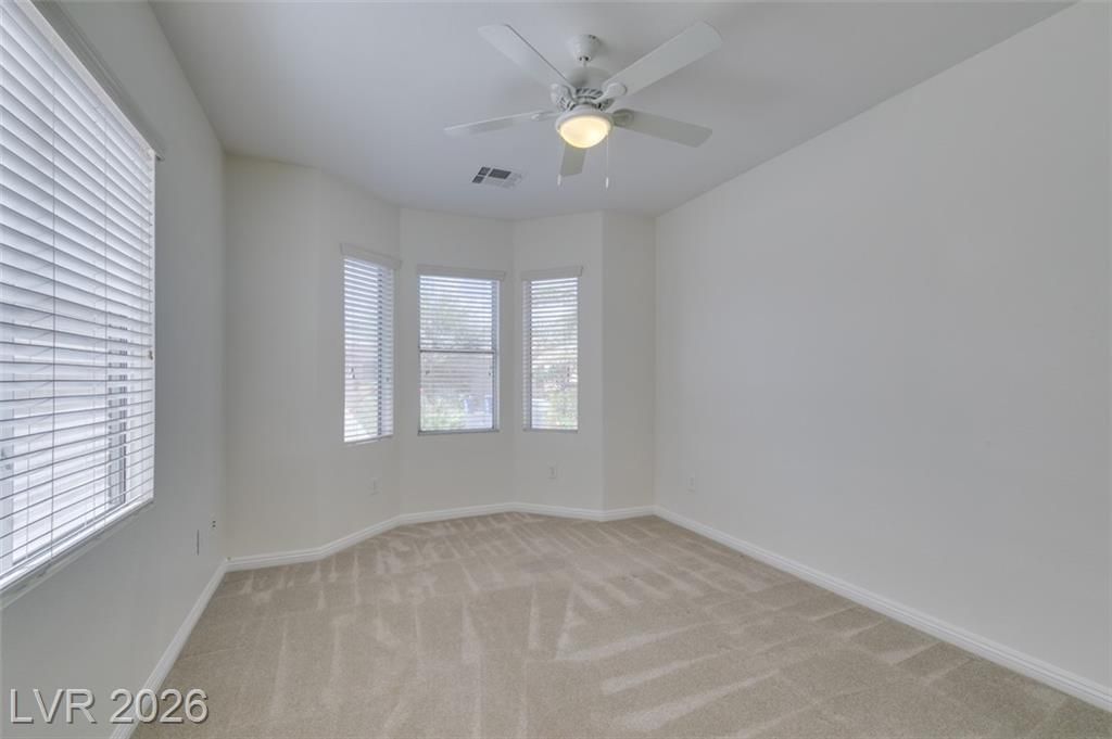 INCREDIBLE VALUE Here!!!*SIENA Now Officially in the Best of LV* Simply Beautiful! Feel at HOME! Freshly painted!! Bright/Open. HVAC System installed in 2023. Kitchen features: Granite Counters, Stainless Appliances, 5 Burner gas stove. Large Breakfast area with Sliding Glass Doors leading to Completely Fenced rear Yard, Large Covered Patio, Huge extended area with Pavers, add a Spa or Gazebo. Formal Dining or Den, Granite Pony Walls. Bay Windows in Both Bedrooms. Primary Features: Door to Patio, Large Walk- in closet + 2nd Closet. Beige Plush Carpet also in the Guest room, the rest of the house has EZ Clean Tile Flooring. Primary Bath: 2 Sinks and Shower. Super Laundry room, Rinsing sink, storage cabinets. Guest Bath has Tub/Shower. Ceiling Fans. Two Car Garage. Mature Landscaping. Contains Storage Cabinets. Please View Siena Amenities: Golf, Bistro, Pickle Ball, Tennis, Social Calendar, 2 Pools and Spa's, Gym, Exercise Rm, Steam, Sauna, Hair & Nail Salon.