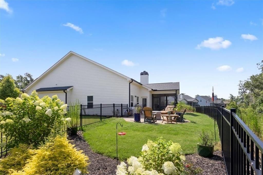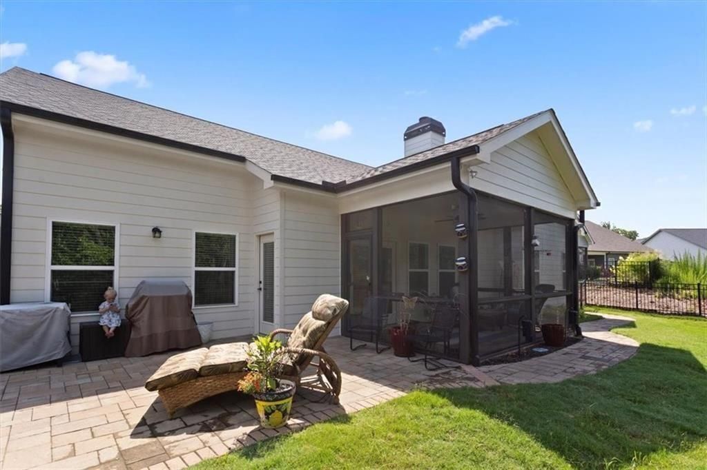 Welcome to this beautiful Craftsman-style ranch home in the desirable Golf & Lake Community of Lake Arrowhead. This better-than-new home offers an incredible opportunity with an unfinished second story, already framed with stairs in place, providing the potential to add two additional bedrooms and a full bath. The open-concept floor plan is filled with character, featuring vaulted ceilings with exposed cedar beams, shiplap accents, and gorgeous hardwood floors throughout. The spacious kitchen is perfect for entertaining, complete with an oversized island, custom soft-close cabinetry, upgraded stainless steel appliances including a gas cooktop, and a walk-in pantry. The large great room centers around a cozy gas fireplace, and the bonus office/flex space with barn doors adds extra versatility. The oversized owner’s suite is a private retreat with double vanities, a massive tiled shower, and a large walk-in closet with convenient access to the laundry room. Designer lighting and window blinds are already in place. Step outside to the professionally screened porch and extended stone patio, ideal for enjoying the peaceful, fully fenced backyard with views of the woods and distant mountains. Plus, the irrigation system runs on free water, keeping the landscape lush with no added expense. The property line extends down the hill to the tree line, and the backyard could easily be terraced to expand the usable space for gardening or outdoor activities. All of this is located in Lake Arrowhead, offering resort-style amenities including a championship 18-hole golf course, one of Georgia’s cleanest lakes, clubhouse with restaurant, multiple pools, tennis courts, playgrounds, and parks. Experience the perfect blend of mountain living, community, and future potential in this stunning home.