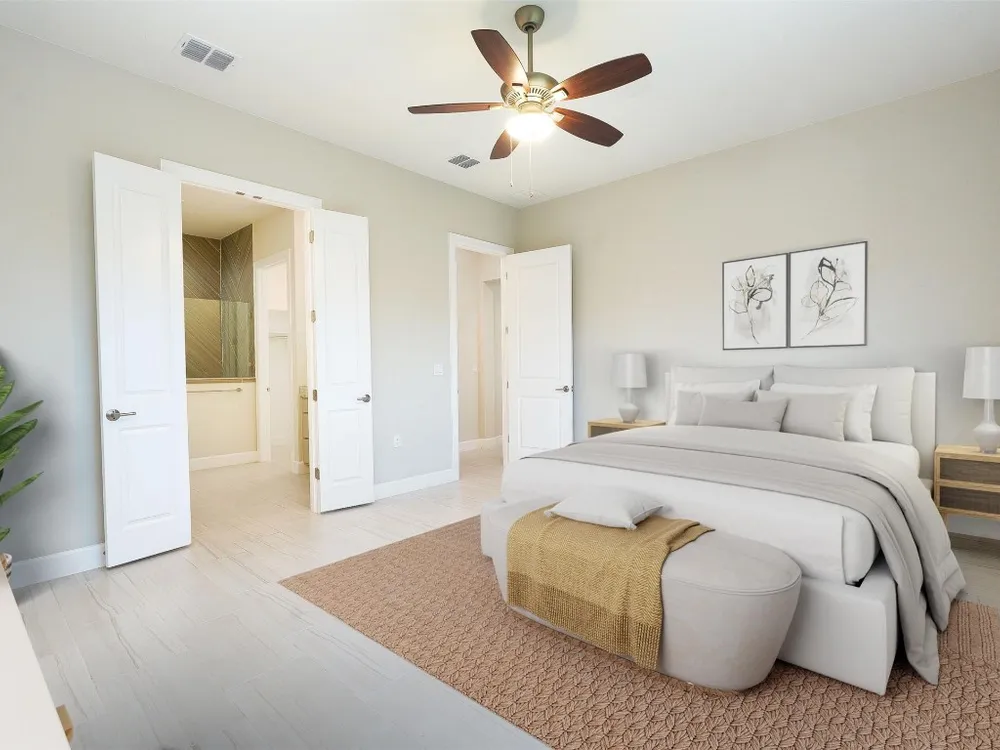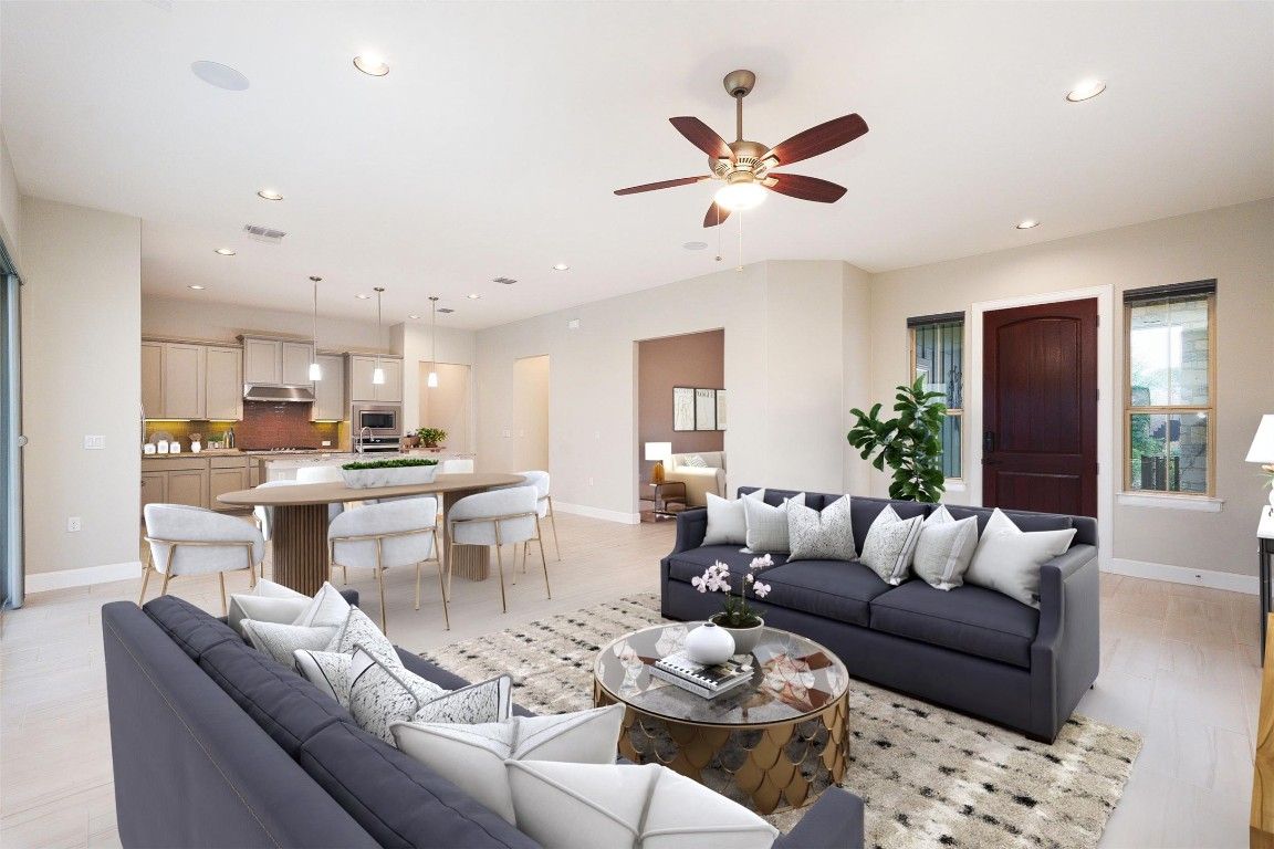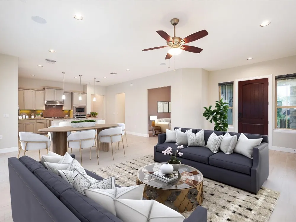 - Breakfast Bar, Ceiling Fan(s), Double Vanity, Eat-in Kitchen, Kitchen Island, Main Level Primary, NoInteriorSteps, Open Floorplan, Quartz Countertops, Recessed Lighting, See Remarks, Storage, Walk-In Closet(s), High Speed Internet