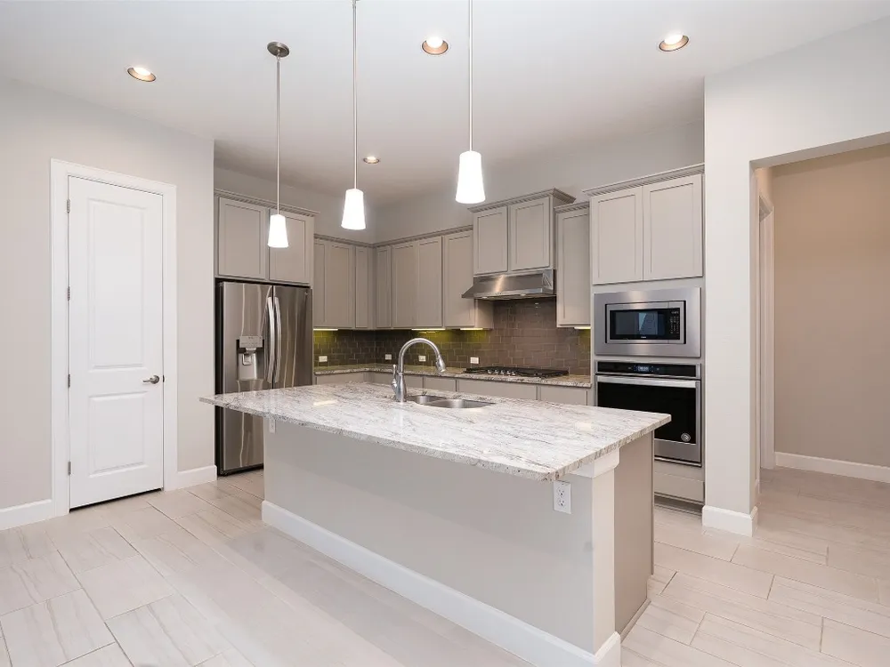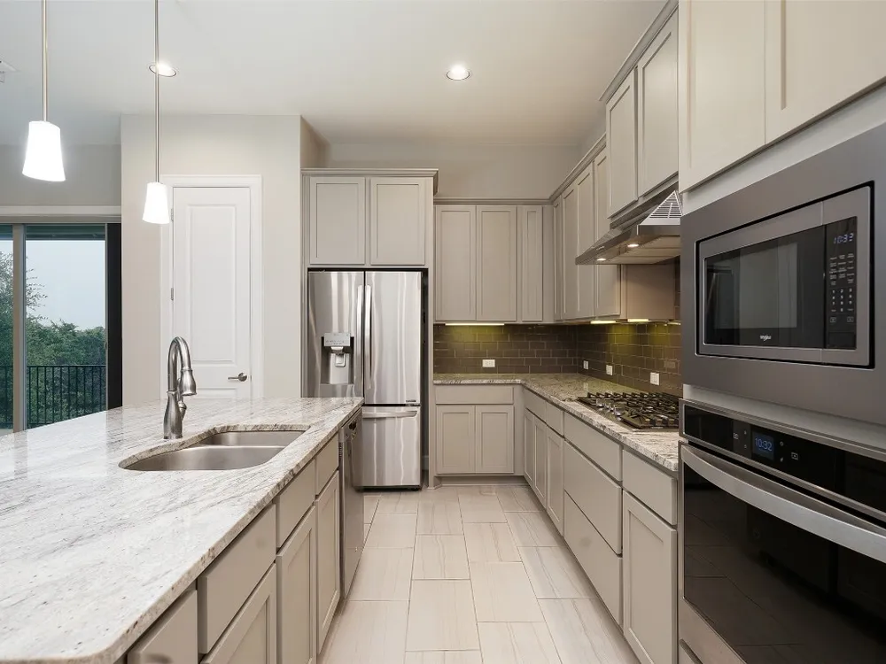 - Built-In Gas Oven, Exhaust Fan, Gas Cooktop, Gas Water Heater, Plumbed For Ice Maker, Stainless Steel Appliance(s)