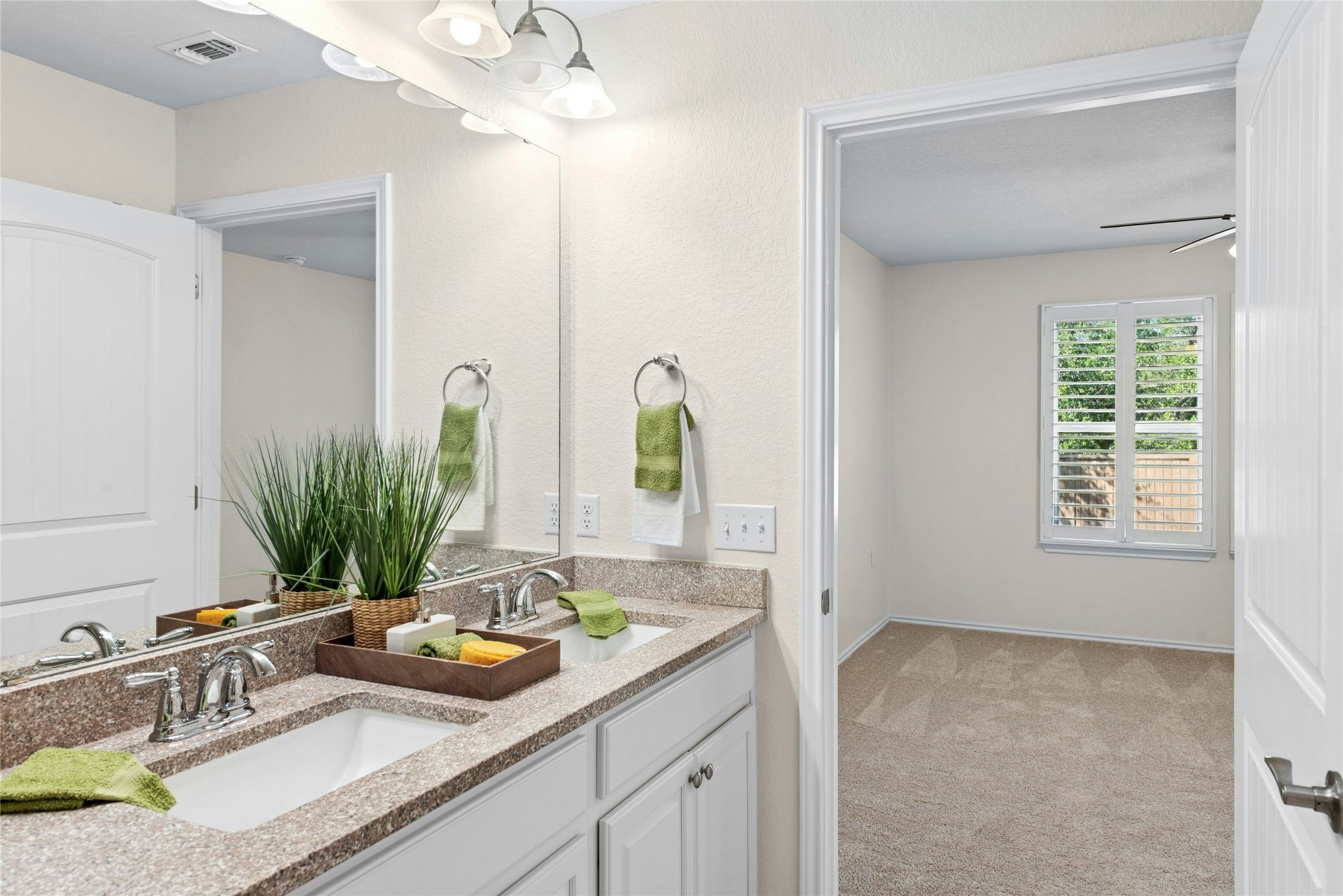 - Ceiling Fan(s), Separate/Formal Dining Room, Double Vanity, Granite Counters, Multiple Dining Areas, NoInteriorSteps, Open Floorplan, Pantry, Walk-In Closet(s)