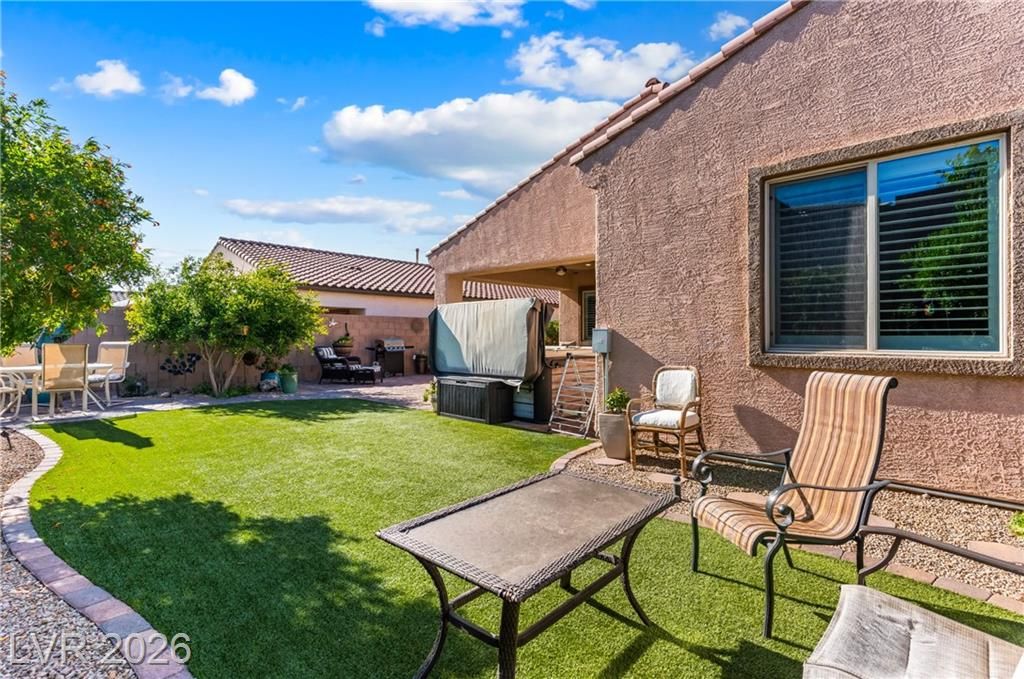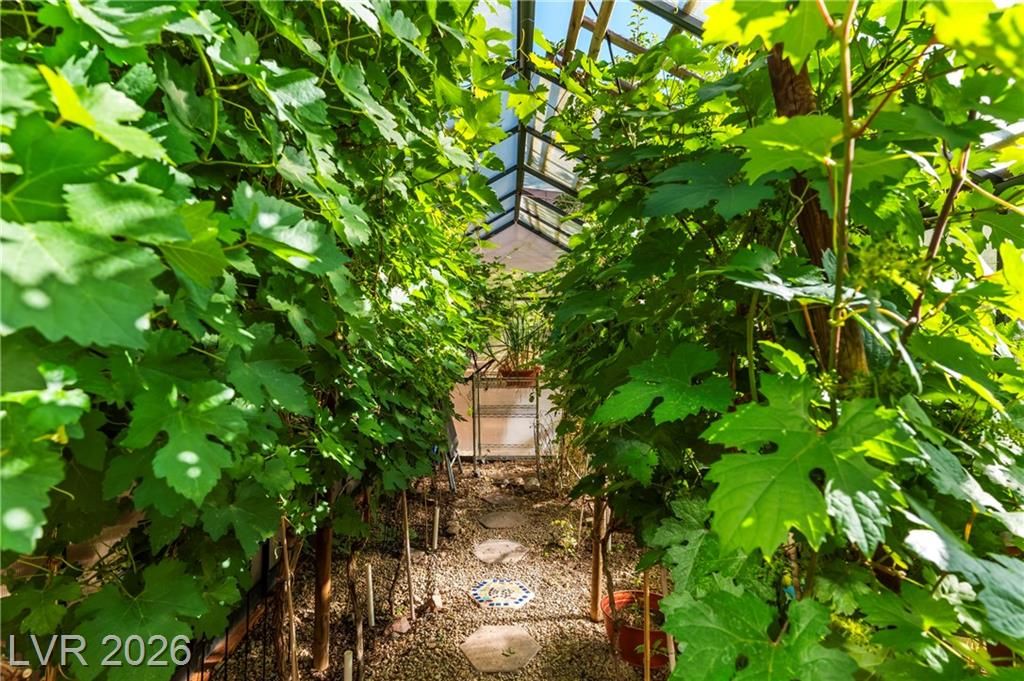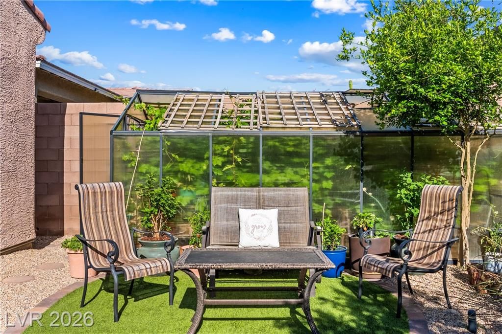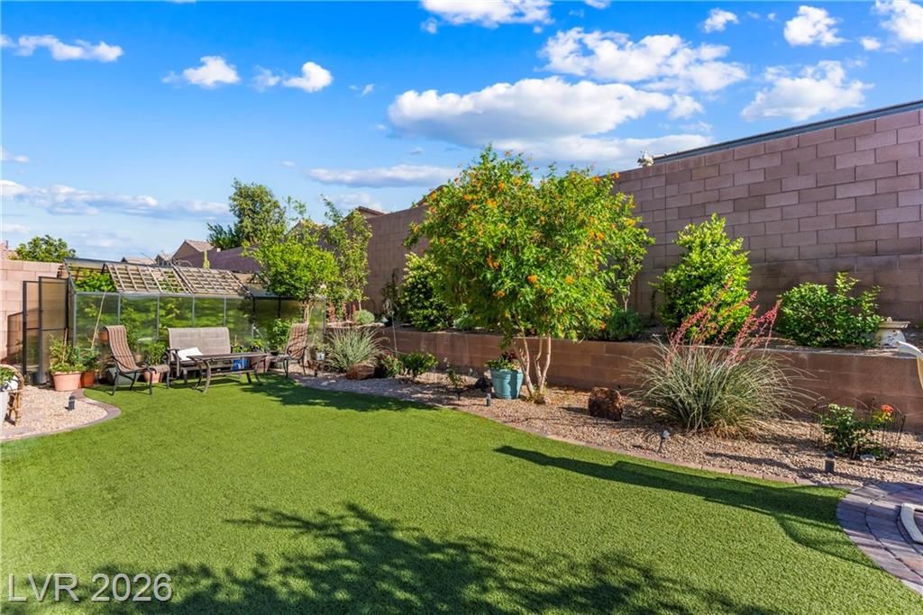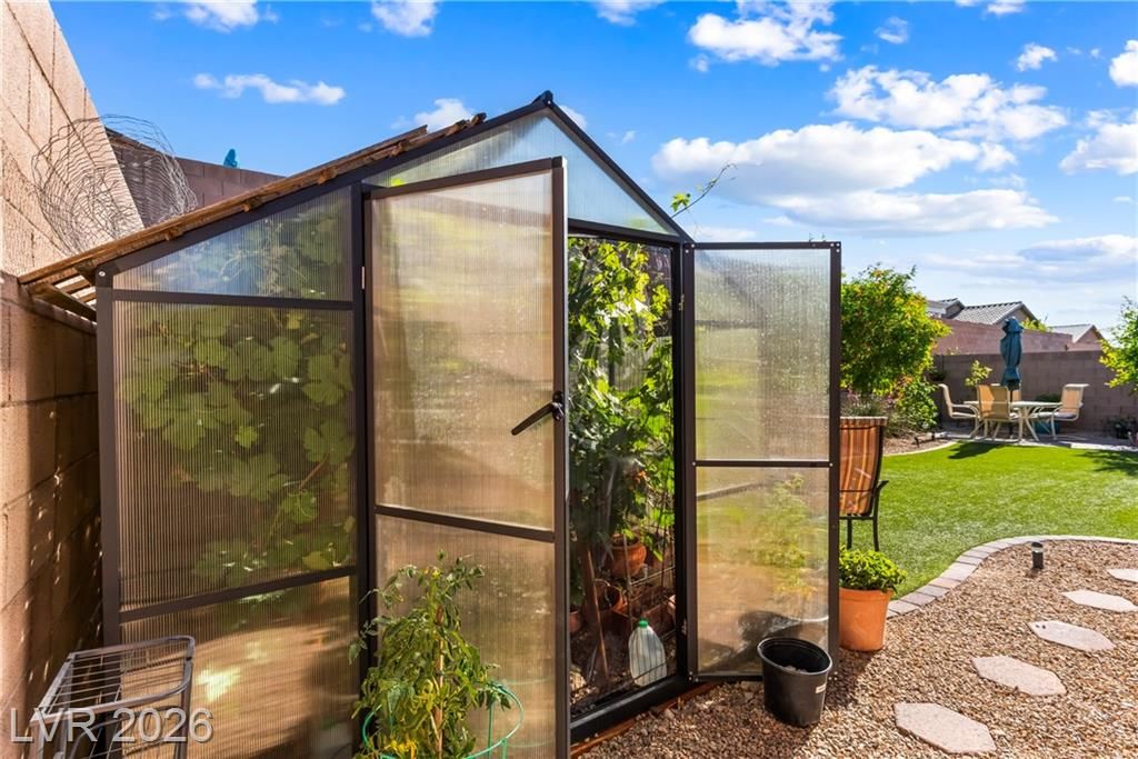 Not your average Henderson backyard...517 Sterling Falls Ave has fruit trees and its own greenhouse filled with wine grapes! Stunning single-story home in the highly sought-after Heritage at Cadence 55+ community! This meticulously maintained, highly upgraded residence offers a bright, open layout with 10’ ceilings and quality finishes throughout. Additional highlights include brand Hunter Douglas plantation shutters, two-tone paint, window blinds, and a dedicated laundry room with built-in cabinets. Enjoy resort-style living with exceptional community amenities, plus convenient access to shopping, dining, and parks. A must-see opportunity!