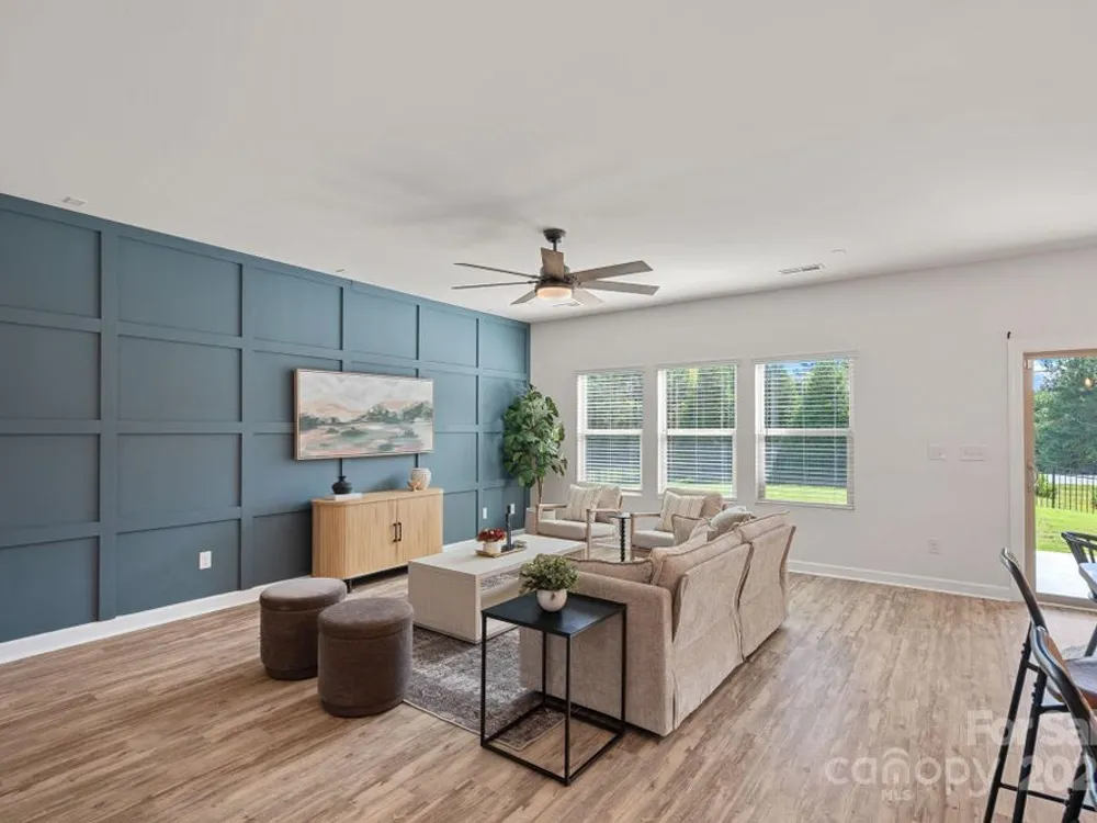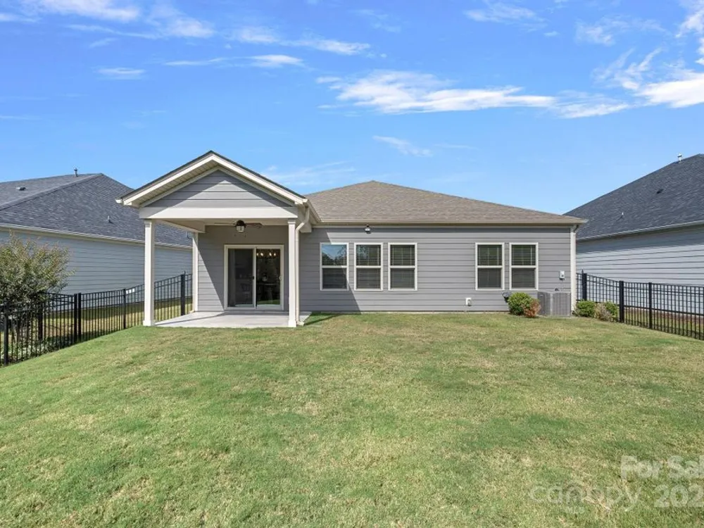 Welcome to your stunning, like-new home in the desirable Canopy Creek Community with Fresh Paint & Brand New Carpet. Step inside and be greeted by sophisticated design elements that set this home apart. Vinyl plank flooring flows seamlessly throughout the open main living areas, complementing the coffered wall detailing in the great room—perfect for entertaining. The entry hallway boasts charming board and batten wainscoting, adding a touch of classic craftsmanship. This 3-bedroom, 2-bathroom residence is designed for modern living, showcasing a chef's kitchen with quartz countertops, a gas range, with a double oven, all flowing into the dining and living area. The primary suite offers a tray ceiling and a stylish bathroom with a tile shower, walk-in closet, and linen closet. Enjoy year-round entertaining on the covered patio with porcelain tiles, overlooking the secure fully fenced backyard. The HOA in Canopy Creek takes care of the lawn maintenance, freeing up your weekends. You'll also have access to incredible community amenities, including a refreshing outdoor pool and scenic walking trails. For the avid golfers, Verdict Ridge Golf Course is located just across the street! Don't miss the opportunity to own this exceptional home where luxury meets low-maintenance living!