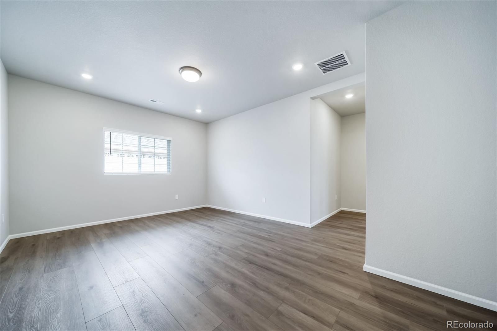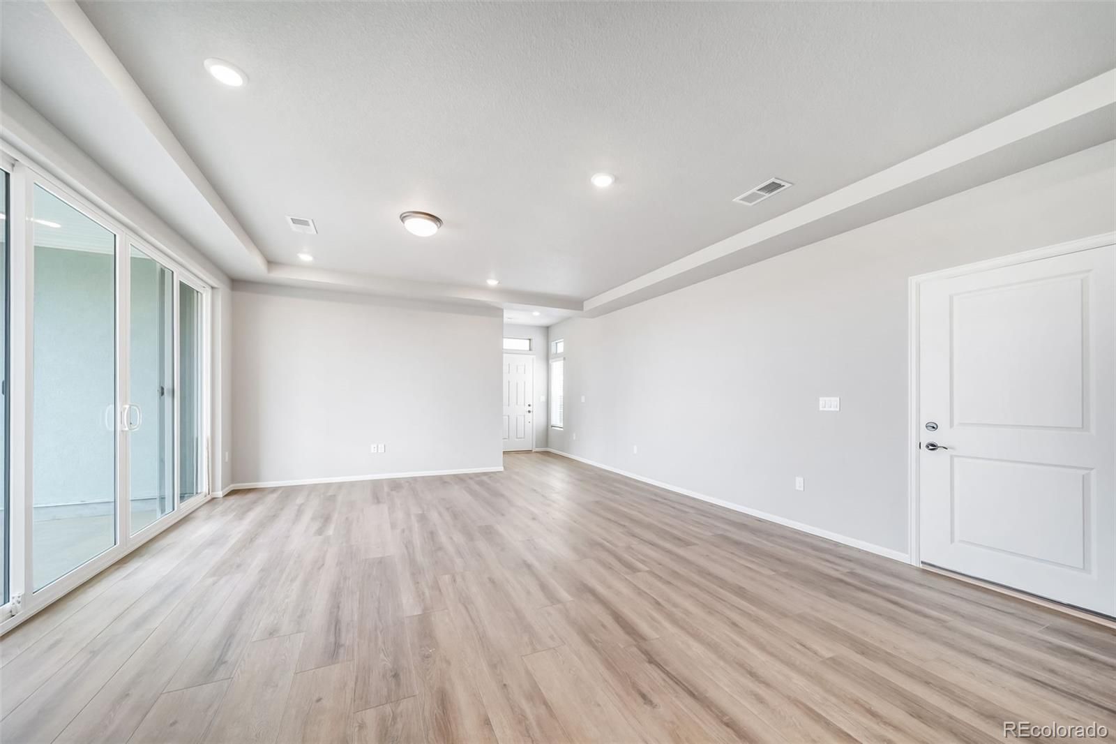 Ask about our incentive lifestyle package. See sales counselor for details. Photos are of a similar model and may include upgrades or features not in the actual home. Finishes, colors, and layout may vary—come see the beautiful final details in person! The Pathfinder is a charming, easy-maintenance single-level home designed for comfort, efficiency and adaptability in a gated 55+ resort-style community in Green Valley Ranch, Aurora. Perfectly suite for the active-adult lifestyle. This single family, open-concept home spans 1877 and features 2 bedrooms, 2 bathrooms, a large flex space along with a 2-car garage. Set in a gated community on a private motor court you'll experience tranquility at your doorstep with a charming covered front porch and included front yard landscaping maintained by the Metro District- they also shovel the driveway! The interior is bright with oversized windows and 9' ceilings. Enjoy designer LVP flooring, Shaw carpeting, Samsung appliances and Sherwin Williams paint inside and out. The kitchen features a working/dining island, granite or quartz countertops, a recipe window and a pantry; The kitchen flows seamlessly into the great room/dining room area and out to the expansive covered rear patio accessed by via the "Colorado Room" double slider door and a separate kitchen door. The spacious primary suite boasts a large walk-in closet, double sink vanity and a tiled spa shower with a bench seat and low entry. *Terms and conditions apply.