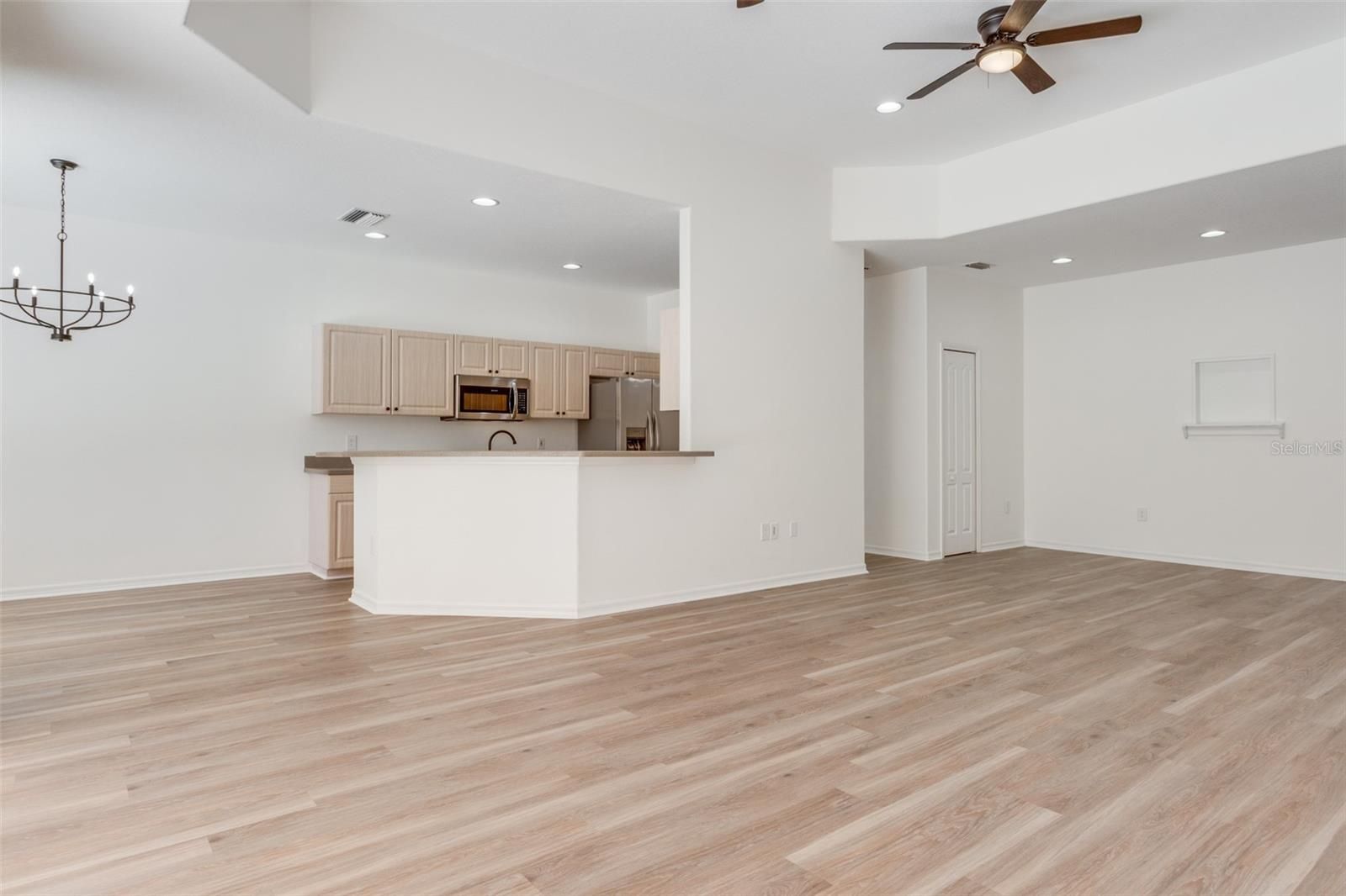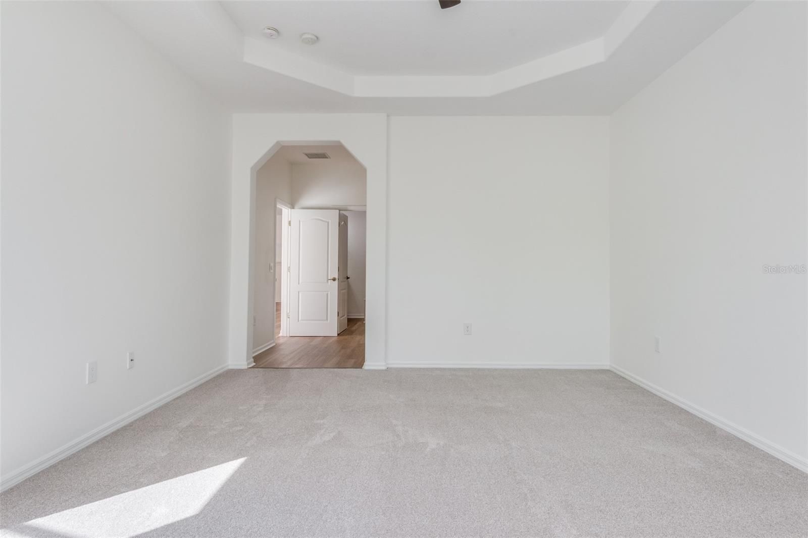 - Built-in Features, Ceiling Fan(s), Eat-in Kitchen, High Ceilings, Living/Dining Room, Open Floorplan, Main Level Primary, Split Bedrooms, Thermostat, Tray Ceiling(s), Vaulted Ceiling(s), Walk-In Closet(s)