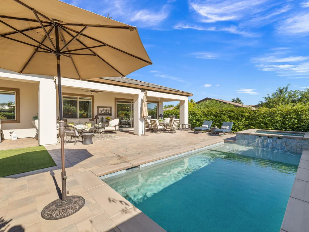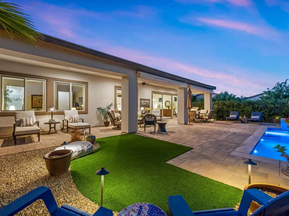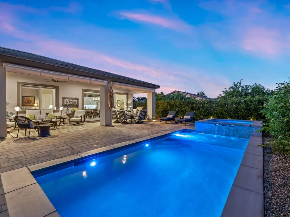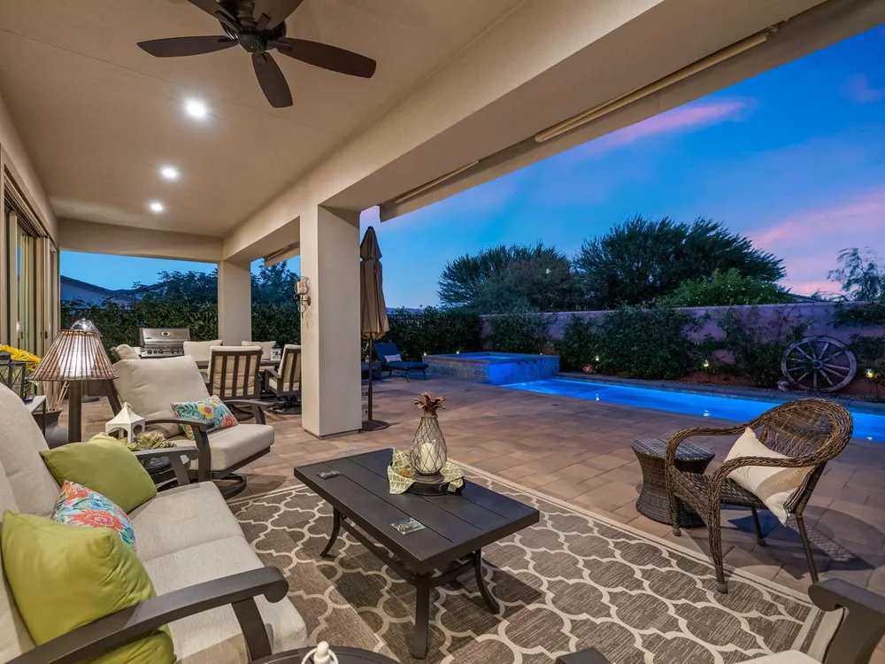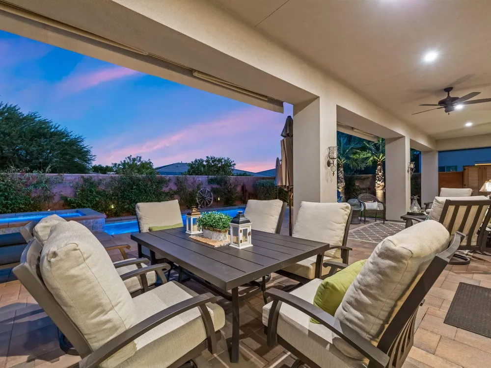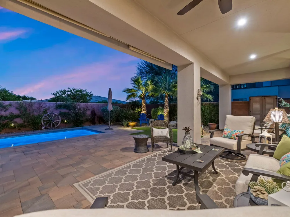 TRILOGY POLO CLUB: OVER $150K IN UPGRADES!!! --> WOW!!! <--One of the most highly upgraded homes in Trilogy Polo - you're getting $150k in upgrades for only $965k. What a deal! No neighbors directly behind or beside the yard — complete privacy and open space on all sides. This 2,367 sq. ft. single-level home offers 3 bedrooms, 3 baths, PLUS a den/office (or 4th bedroom), all just steps from the clubhouse. The open-concept great room is bright and spacious, featuring stunning wood-look tile floors, custom window treatments, and pocket sliding doors for seamless indoor-outdoor living. The chef's kitchen is fully loaded with quartz counters, a custom herringbone backsplash, a large prep island with pendant lighting, a 6-burner cooktop with designer hood, double ovens, and walk-in pantry. The primary suite is a private retreat with upgraded Berber carpet, dual vanities, a glass-enclosed tiled shower, and a spacious walk-in closet. Out back, you'll find a resort-style yard built for entertaining — complete with a beautiful Teserra Pool with Pebble Tec spa featuring triple waterfalls, a tanning shelf, an expansive paver patio, and a covered area for shade and dining. No need to renovate or upgrade a single thing — this home is truly turnkey, with FAR MORE UPGRADES THAN COMPETING LISTINGS. Topped off with solar, electric window coverings, huge awnings, air-conditioned garage with extra golf cart space, and a premium location near the clubhouse — this is the by far best deal in Trilogy! Sellers have transferrable membership (much cheaper to join!) DON'T LOOK AT OTHERS TILL YOU SEE THIS!!