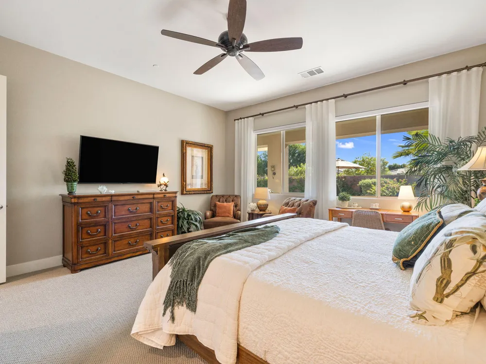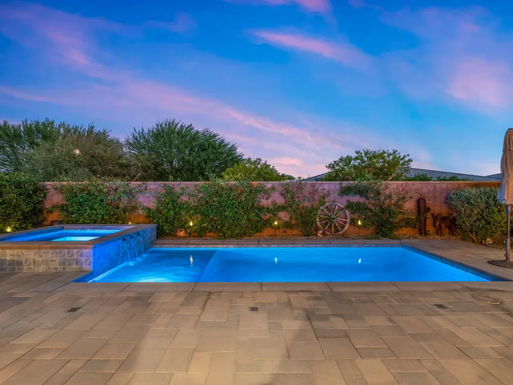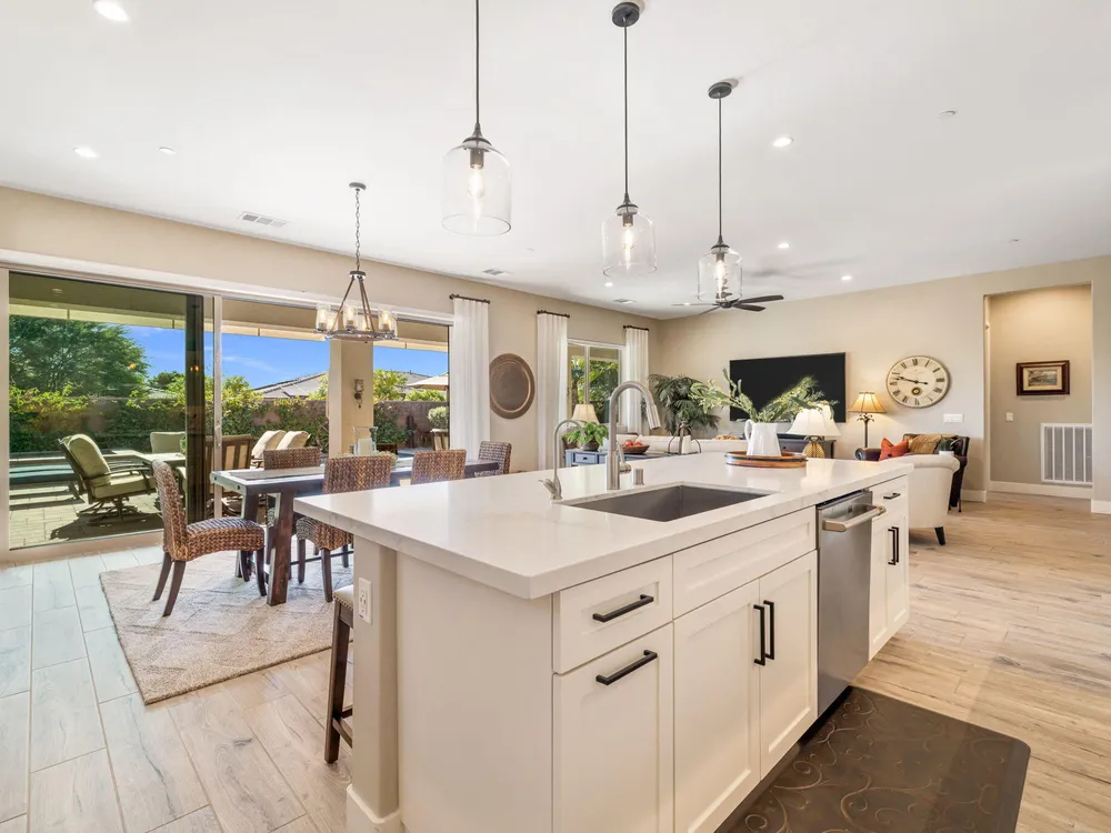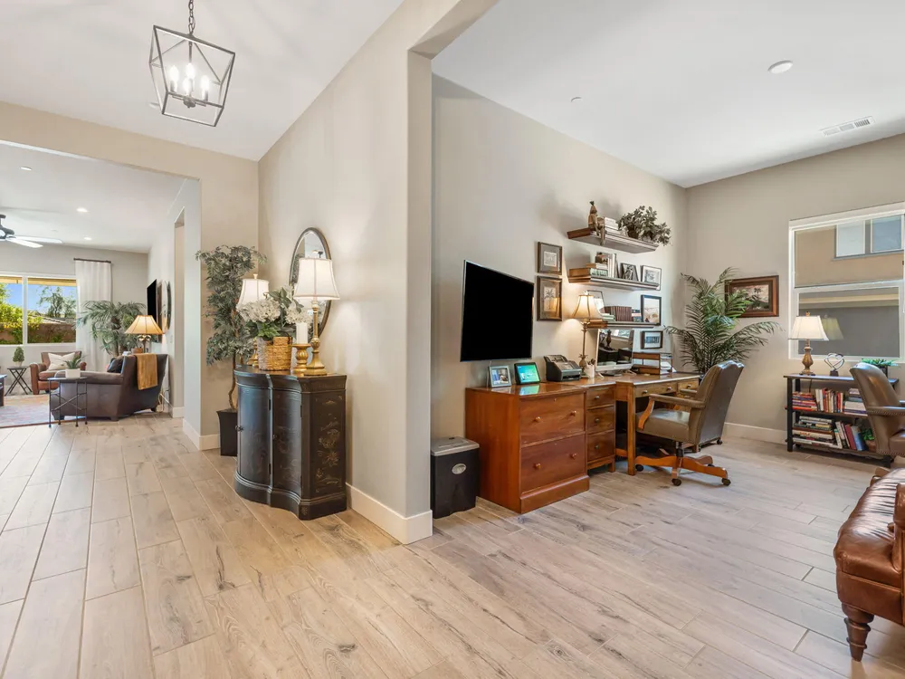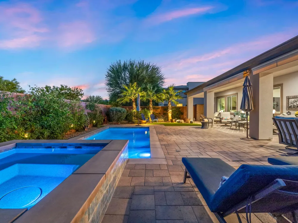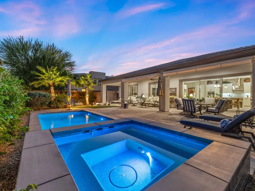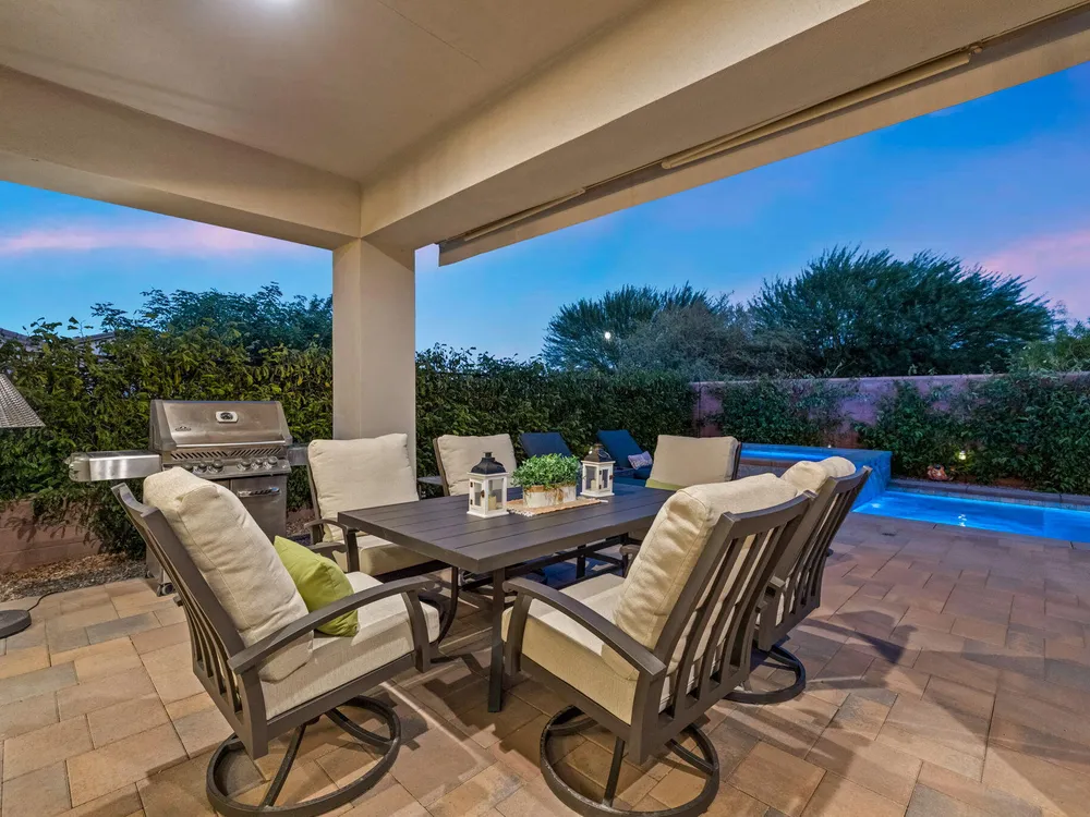 TRILOGY POLO CLUB: OVER $150K IN UPGRADES!!! --> WOW!!! <--One of the most highly upgraded homes in Trilogy Polo - you're getting $150k in upgrades for only $965k. What a deal! No neighbors directly behind or beside the yard — complete privacy and open space on all sides. This 2,367 sq. ft. single-level home offers 3 bedrooms, 3 baths, PLUS a den/office (or 4th bedroom), all just steps from the clubhouse. The open-concept great room is bright and spacious, featuring stunning wood-look tile floors, custom window treatments, and pocket sliding doors for seamless indoor-outdoor living. The chef's kitchen is fully loaded with quartz counters, a custom herringbone backsplash, a large prep island with pendant lighting, a 6-burner cooktop with designer hood, double ovens, and walk-in pantry. The primary suite is a private retreat with upgraded Berber carpet, dual vanities, a glass-enclosed tiled shower, and a spacious walk-in closet. Out back, you'll find a resort-style yard built for entertaining — complete with a beautiful Teserra Pool with Pebble Tec spa featuring triple waterfalls, a tanning shelf, an expansive paver patio, and a covered area for shade and dining. No need to renovate or upgrade a single thing — this home is truly turnkey, with FAR MORE UPGRADES THAN COMPETING LISTINGS. Topped off with solar, electric window coverings, huge awnings, air-conditioned garage with extra golf cart space, and a premium location near the clubhouse — this is the by far best deal in Trilogy! Sellers have transferrable membership (much cheaper to join!) DON'T LOOK AT OTHERS TILL YOU SEE THIS!!