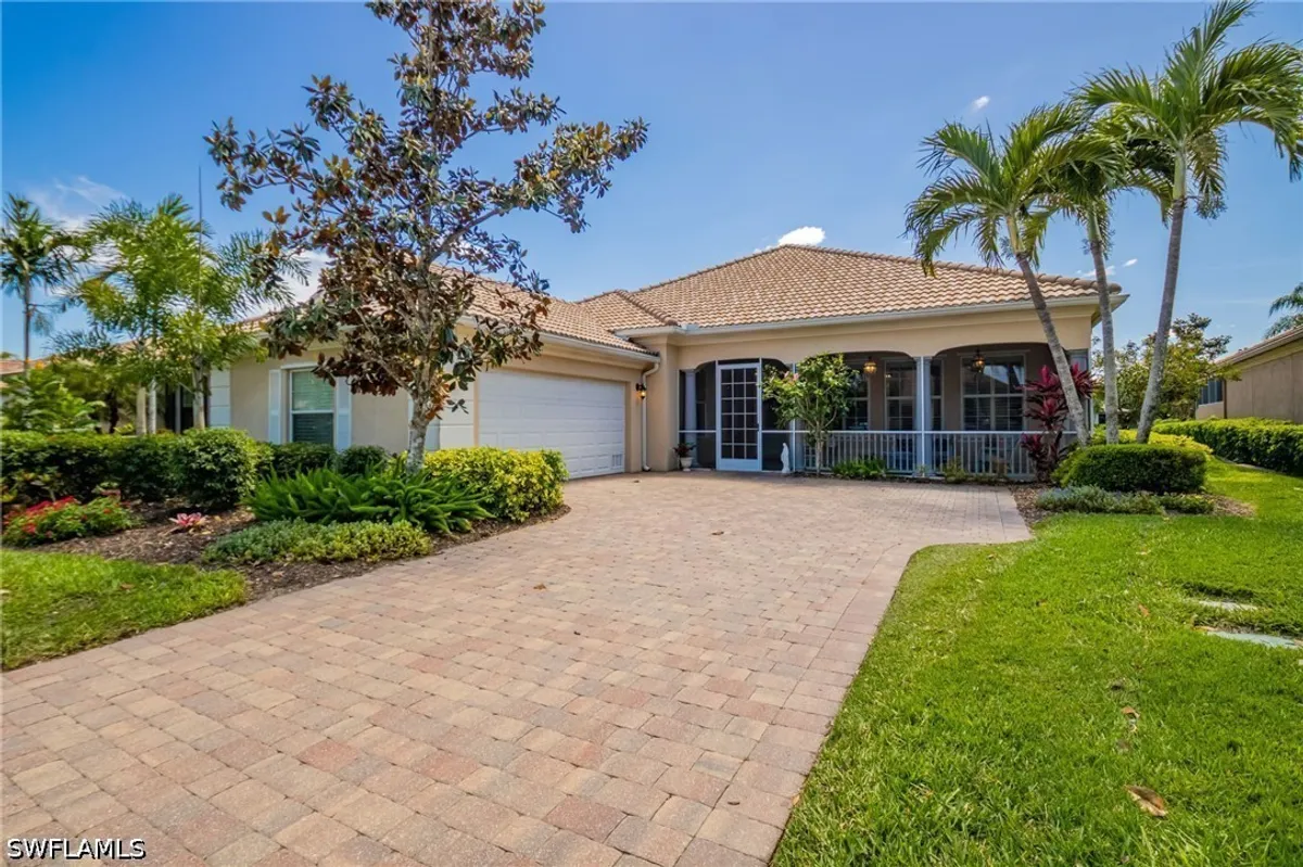 Experience Florida living at its finest in this impeccably maintained, renovated (2021) Carlyle model by DiVosta. Nestled on a quiet cul-de-sac in Del Webb’s Bellera Walk, this 4-bedroom, 4-bathroom home offers 2,487 sq. ft. of sophisticated, light-filled space. HOME HIGHLIGHTS: OUTDOOR OASIS:Enjoy a unique screened front porch or retreat to the private back lanai, featuring a heated pool/spa, privacy wall, and serene water views; REFINED INTERIOR: Features crown molding, plantation shutters, and real hardwood floors in all bedrooms. The open great room seamlessly blends indoor and outdoor living; RENOVATED KITCHEN: Updated with new KitchenAid appliances, quartz countertops, and a designer glass backsplash; PRIMARY SUITE: A true retreat with a walk-in closet and a newly renovated bathroom featuring a glass-enclosed shower and soaking tub; AND COMMUNITY LIFESTYLE: Located in Ave Maria, residents of Del Webb enjoy low HOA fees and world-class amenities including a community restaurant/bar, resort and lap pools, pickleball, and a fitness center with steam room and sauna. Optional golf memberships are available at the premier Panther Run Golf Club and Ave Maria Town and Ave Maria University are just a golf cart ride away. This rare lot and move-in-ready floor plan represent one of the best values in SW Florida!