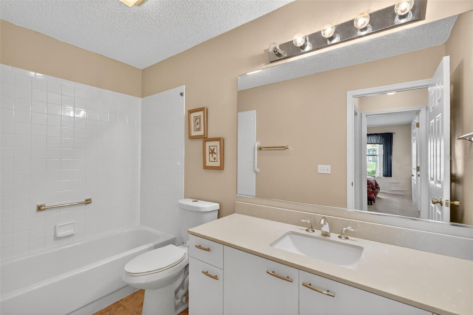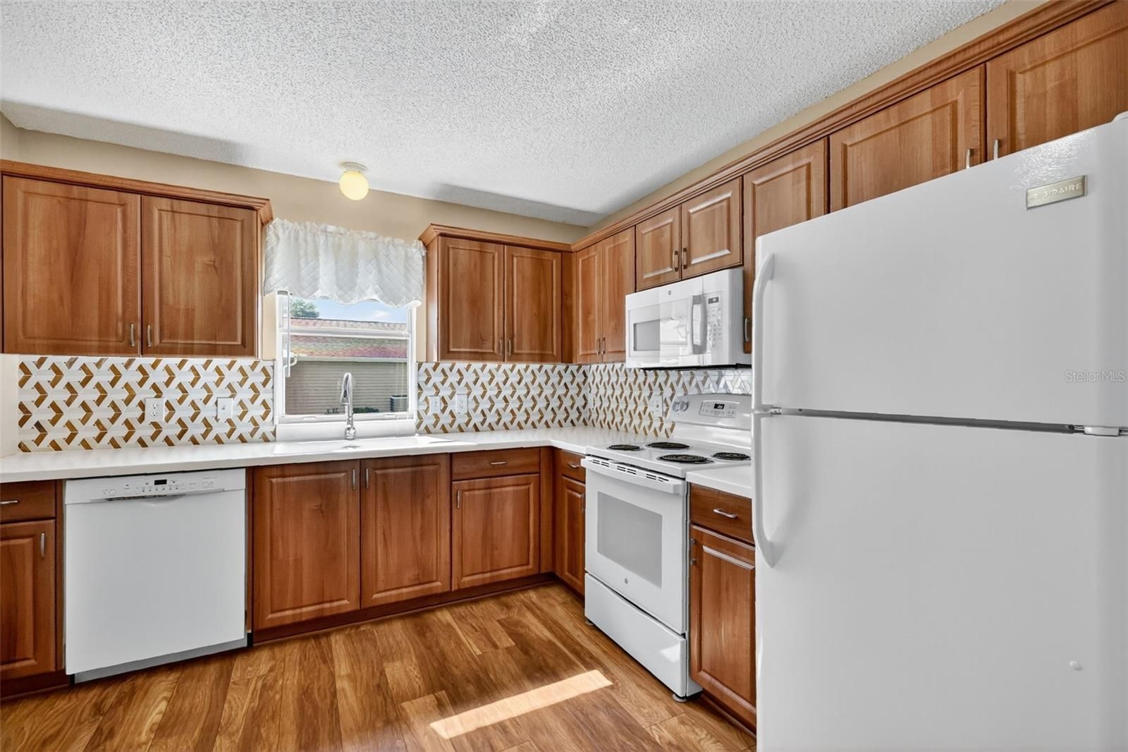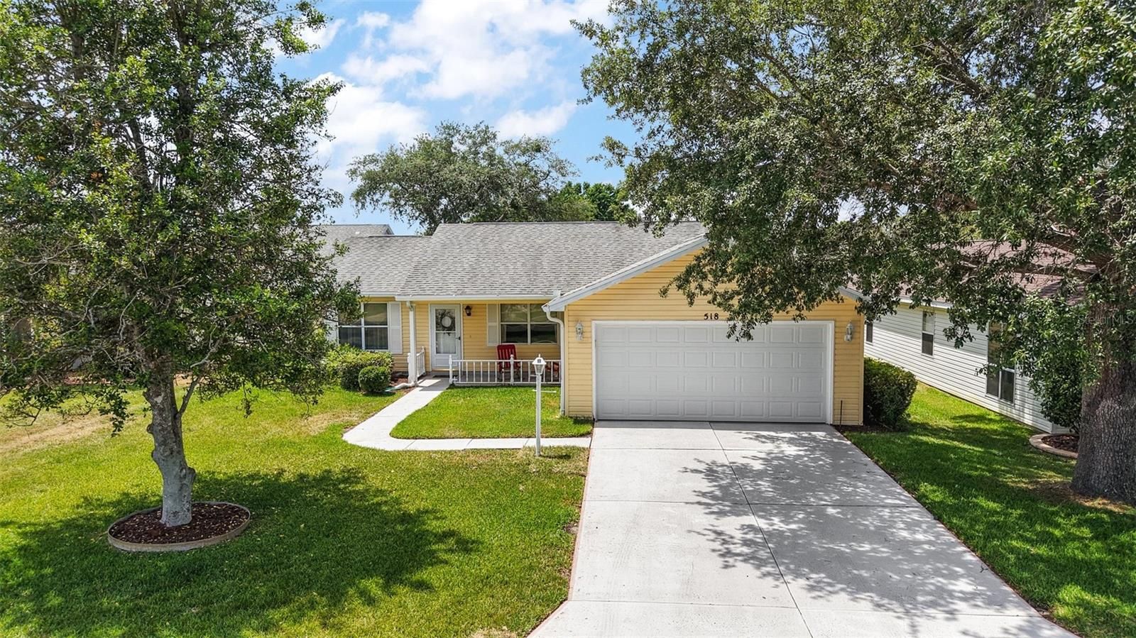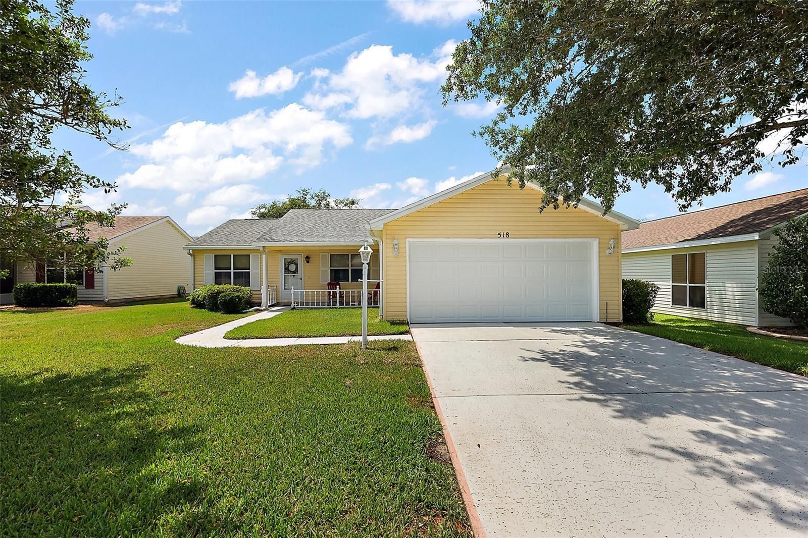 BRAND NEW ROOF 2025! This updated 2/2 Corpus Christi with Florida Room and FULL TWO-CAR GARAGE is conveniently located in the village of Mira Mesa–only minutes from Spanish Springs Town Square and Chula Vista Recreation Center (which has a freshly updated pool, golf, and pickleball facilities). NO BOND and NEW WATER HEATER (2025). TURNKEY PACKAGE AVAILABLE SEPARATELY. As you walk up to the home, you will be greeted with lush green landscaping and a covered front porch, perfect for your early morning coffee. The updated kitchen boasts a CUSTOM BACKSPLASH, UPGRADED cabinetry, Corian countertops, FRESHLY painted walls, and a high-end Bosch dishwasher. The combined living and dining area is ideal for entertaining, offering direct access to the Florida room. Laminate flooring (NO CARPET) runs through the main living areas and kitchen. The primary suite is a true oasis, featuring a walk-in closet and an en suite bathroom with NEW FLOORING, a glass walk-in shower, extended vanity, large mirror, and a window that fills the space with natural light. Bedroom two doubles as a second suite with a pocket hallway door for privacy, and a walk-in closet. NEW guest bath features include tiled floor, countertop, faucet, and freshly painted walls. The interior laundry room features built-in shelving for plentiful storage and doorway to the garage. The two-car garage boasts attic access and an upgraded garage door and opener completed three years ago. Close to Spanish Springs Town Square and Lake Sumter Landing, Hacienda Regional Recreation Center, Chula Vista Recreation Center, Tierra Del Sol Country Club and Championship Golf Course, The Villages Regional Hospital, Shopping and Restaurants. PLEASE WATCH OUR WALKTHROUGH VIDEO OF THIS UPDATED HOME IN A FANTASTIC LOCATION, and CALL TODAY for your private showing or virtual tour!