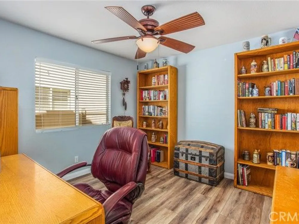 One of a kind home in 55+ Guard-gated Community of Sun Lakes Country Club. All living space is downstairs w/ the addition of a media room/private guest suite up for family/friends who visit, separate formal dining room, a large master bedroom and a large open family room/kitchen area. Home flows beautifully w/ vaulted ceilings, TWO fireplaces, stainless appliances, ceiling fans, pantry, breakfast bar island w/ quartz counter tops! There is a library! You will love the location in a quiet cul-de-sac with views of two mountain ranges. There are 2 bedrooms downstairs each w/ a bathroom, and a 3rd bedroom/media room upstairs w/ its own bath, linen room, and a huge storage area. Smooth ceilings, new flooring, newer heat/ac unit, new paint in and out, new driveway, newer appliances (Refrigerator, plus the extra one in the garage, washer & dryer, and the TV are included in sale) Large master bedroom has walk-in closet, double sinks in the bathroom and a slider to the backyard. The yard is nicely landscaped and is completely fenced in with vinyl fencing. LOTS of storage in the garage. Some furnishings are available reasonably priced. TWO 18-HOLE GOLF COURSES with 2 Pro Shops, THREE Clubhouses, TWO Restaurants, Bar & Lounge, Tennis, PICKLE BALL COURTS, Pools (Including Large Indoor Pool), Jacuzzi Spas, THREE Fitness Centers & Fabulous Planned Activities Offered on a Daily Basis. There are 80+ Social CLUBS, including: Dancing, RV Club, Yoga, Table Tennis, Cards, Bocce Ball, Bowling, Car Club, Drama/Theatre Club, Sewing, Tennis, Knitting, Bingo, Travel, Quilters, Art League, International Culture, Genealogical Society, Garden, Photography, Travel, and a lot MORE .... If that's not Enough, Add TRIPS AND TRAVEL EXCURSIONS scheduled all year long. Association Dues INCLUDE CABLE TV & INTERNET/WIFI - The community is Located Close to Casinos, World Famous Shopping (Cabazon and Palm Springs), Restaurants, and Excellent Medical Facilities (Loma Linda & Optum literally across the Street) - SUN LAKES COUNTRY CLUB is has a backdrop of two Mountain ranges, which offer stunning views - LIFE IS GOOD in our Awesome Community Buyer to pay the HOA move-in fees