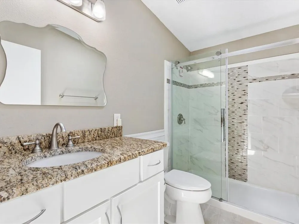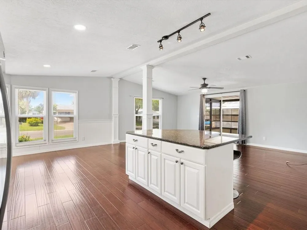 - Ceiling Fan(s), Eat-in Kitchen, Living/Dining Room, Stone Counters, Vaulted Ceiling(s), Walk-In Closet(s), Window Treatments
