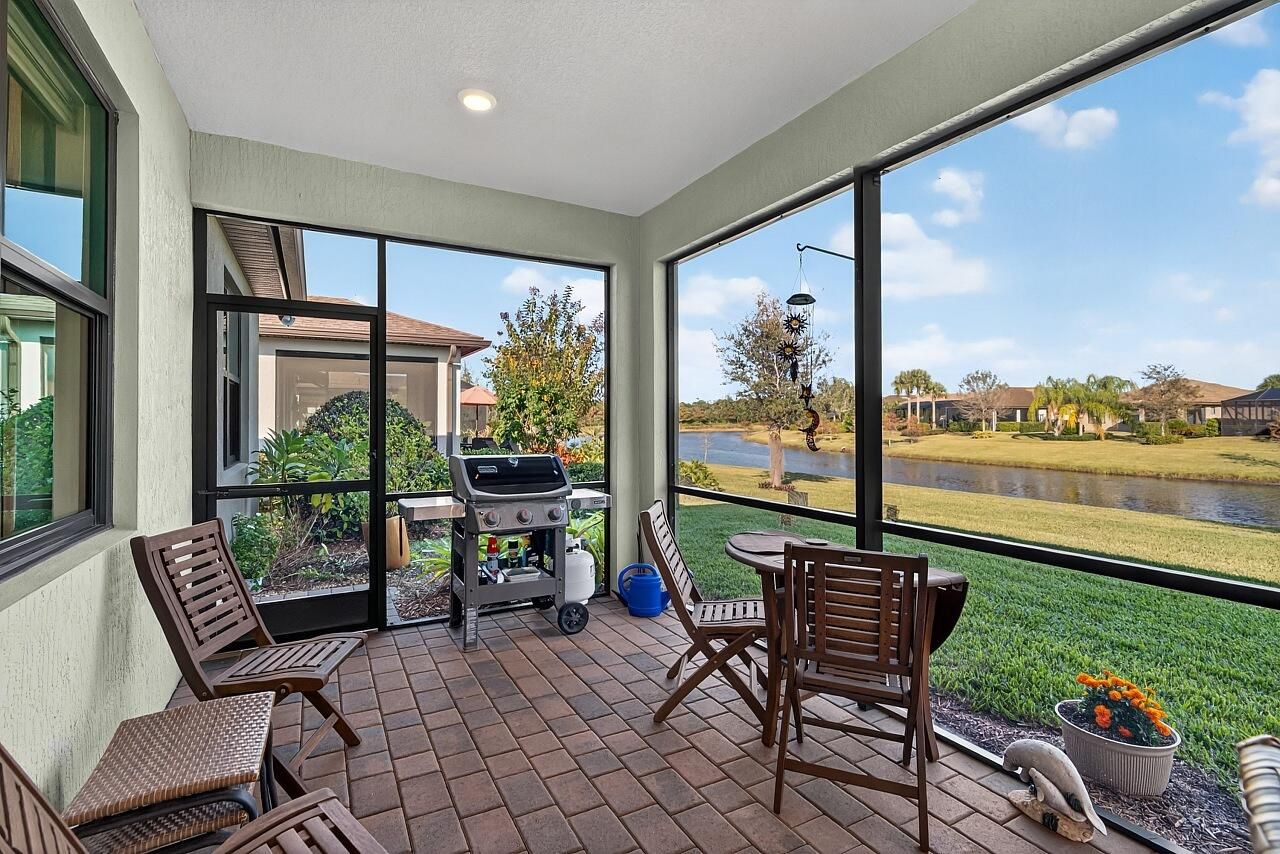 Discover true waterfront living at Magnolia Court in Waterway Village. This beautifully upgraded 2020 Divosta Marina Floor plan offers a lifestyle that the other listings simply can't match--serene water views, enhanced outdoor living, and thoughtful interior finishes that elevate everyday comfort.Step inside to 1,704 sq ft of stylish, low-maintenance living featuring porcelain tile throughout, impact windows, custom window treatments, and a motorized blind in the living room for effortless light control. The heart of the home is the bright, open kitchen with quartz countertops, Whirlpool appliances, designer backsplash, under-cabinet lighting, and upgraded pull-out cabinetry that makes storage a breeze.The waterfront lifestyle continues into the spacious primary suite, complete