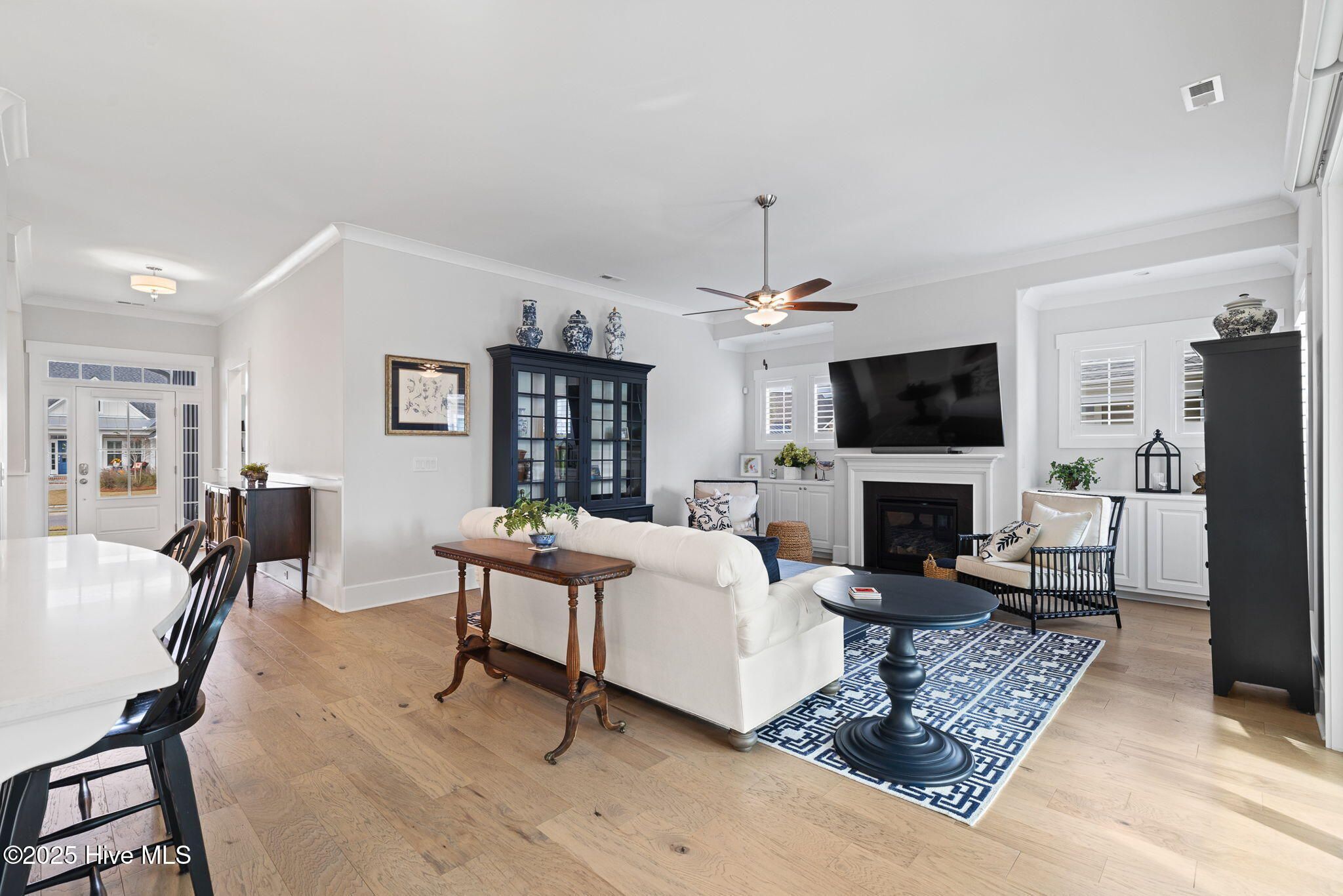 Welcome to this stunning Crown floor plan, a meticulously designed 4-bedroom, 3-bathroom home boasting 2,995 sq ft of luxury living in the highly sought-after Brunswick Forest. Built in 2022, this home has been gently used as a second residence, ensuring it feels practically brand new, with all the modern amenities and high-end finishes you've been searching for. The spacious family room featuring a cozy fireplace and custom built-in cabinets with upper plantation shuttered windows fill the space with natural light. The open-concept kitchen is a chef's dream with stunning quartz countertops, a designer tile backsplash, and a large center island for plenty of prep space. Top-of-the-line finishes include shake-style cabinetry, a 36'' gourmet gas cooktop, stainless steel hood, wall oven, microwave, and a refrigerator. A convenient coffee bar station makes mornings even more enjoyable! The primary suite is a true retreat, offering a tray ceiling, abundant natural light, and a spacious ensuite bath with dual vanity sinks, granite countertops, and a luxurious walk-in Roman shower with a glass door, transom window, and large tile flooring. The dedicated office space features a coffered ceiling and elegant plantation windows, perfect for a productive work-from-home setup. Upstairs, you'll find an inviting guest suite with a full bath, along with a recreation room that showcases breathtaking views of the surrounding natural beauty. Plus, there's no shortage of storage with a massive walk-in attic space. Step outside to your private, fenced backyard, where you can relax in the glassed-in sunroom or unwind by the firepit. The home backs up to nature, offering unparalleled privacy, while the patio with generous seating provides the perfect spot for entertaining or enjoying peaceful evenings. Located in The Lakes of Brunswick Forest, this home offers an unmatched combination of luxury, comfort, and convenience. Whether you're looking to entertain guests or simply enjoy peaceful living, this home is designed to exceed your expectations. Schedule a tour today and discover all that this beautiful home has to offer!