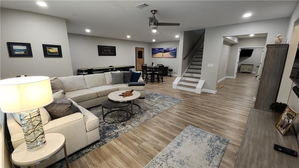 Welcome to this UNIQUE HGTV-Inspired ONE-OF-A-KIND - DREAM HOME located in the EXCLUSIVE Stephens Point GATED 55+ ACTIVE ADULT Community. Nestled a few short steps from the shores of beautiful LAKE LANIER, this picturesque home offers a turn-key idyllic lifestyle with its Serene Surroundings and Unparalleled Amenities. Step onto the Covered Rocking Chair FRONT PORCH, where you can sip your morning coffee while soaking in the peaceful ambiance. As you enter the Home, you'll be greeted by a property that features PRIVACY, TRANQUILITY, and LUXURY UPGRADES throughout. As you step through the front door, you’ll be immediately welcomed by an Open Foyer featuring LUXURY PLANK FLOORING that adds a touch of Sophistication, Durability, and Aesthetic appeal. Just inside, you'll find several generous GUEST Bedrooms and an adjoining FULL BATH featuring Upgraded Tiled Floors, Tiled Shower/Tub & Granite Vanity. Continuing inside, you'll approach a Spacious DINING ROOM perfect for Holiday gatherings or FLEX this Incredible space as you Wish. The Heart of the Home is the inviting GOURMET KITCHEN boasting Pristine White Cabinets, Large GRANITE Counters offering plenty of space & a Sophisticated SUBWAY TILED Backsplash. This Stunning Space is anchored by a MAGNIFICENT GRANITE Kitchen Island that stretches an Expansive 9 feet+ in length - creating an Elegant yet Dramatic Centerpiece. The Island offers ample space for Meal Prep, Casual Dining, and Entertaining. Upgraded Stainless Steel Appliances, including a CONVECTION Oven & Gas COOKTOP, and a light-filled Dining area complement the space. The Kitchen overlooks the FAMILY ROOM, featuring Stunning Open Views and abundant Natural Light. This room is highlighted by a Trey Ceiling and a Cozy GAS FIREPLACE. Completing the Main Floor is the PRIMARY OWNERS Suite that features Plenty of Space for ALL of your Furniture, including a Large SITTING AREA conveniently adjacent to a PRIVATE outdoor balcony. The Primary Bath features His & Her Vanities with Upgraded GRANITE, accompanied by a HUGE Walk-in TILED Shower, and a Spacious WALK-IN Closet with direct convenient access to the LAUNDRY ROOM. Once finished with the main level, continue down the gorgeous Open-Railed Stairwell into an Impressive FINISHED LUXURY TERRACE LEVEL designed for both Relaxation and Entertaining. You'll be welcomed by an Expansive Second Open Family Room featuring Luxury Plank Flooring that flows seamlessly throughout the space. Adjacent to the Family Room is a Spacious GAME AREA and a stylish WET BAR complete with a BEVERAGE REFRIGERATOR, ICE MAKER, and Large WINE COOLER. The Terrace Level also includes a GUEST BEDROOM, a FULL BATH showcasing a Custom-Tiled Shower & Elegant Vanity, and a dedicated HOME-GYM. Finishing the area, you'll find an expansive HOME OFFICE including a generous WALK-IN CLOSET for Extra Storage. Last but not least, step outside to your private outdoor Shangri-La, your perfect Oasis & Entertainment Paradise. This private FENCED space features a Covered back DECK & PATIO, an incredible LUXURY SPA as well as a SECOND open PAVER PATIO - perfect for Family or Neighbor Entertaining, all featuring Breathtaking Wooded Views. This Home offers not just a residence but a LIFESTYLE. Embrace the Convenience of the Gorgeous Community Clubhouse with Views overlooking Beautiful LAKE LANIER from the back Rocking Chair Porch. The Community features Lighted PICKLEBALL/TENNIS Courts, a Large Community POOL, and a Magnificent PRIVATE 14-Slip Courtesy DOCK on DEEP WATER. Stephens Point is an ACTIVE Community of 174 Homes with numerous Clubs, Activities, and Events to keep you as busy as you'd like while savoring the Beauty all around you. Just a few minutes to Historic Downtown Flowery Branch & Gainesville, you'll have easy access to I-985, Fine Dining, Shopping, and a Short Drive to the North GA Mountains offering a host of Outdoor Activities, Exquisite Wineries, and Breathtaking Scenery. CALL TODAY, this Home will NOT Last Long.