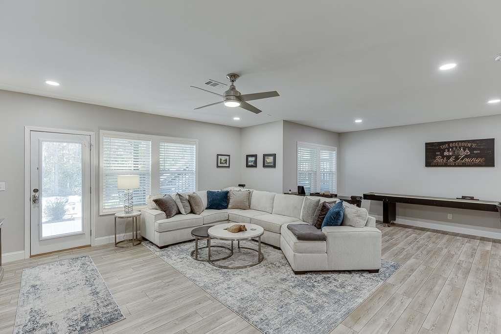 Welcome to this UNIQUE HGTV-Inspired ONE-OF-A-KIND - DREAM HOME located in the EXCLUSIVE Stephens Point GATED 55+ ACTIVE ADULT Community. Nestled a few short steps from the shores of beautiful LAKE LANIER, this picturesque home offers a turn-key idyllic lifestyle with its Serene Surroundings and Unparalleled Amenities. Step onto the Covered Rocking Chair FRONT PORCH, where you can sip your morning coffee while soaking in the peaceful ambiance. As you enter the Home, you'll be greeted by a property that features PRIVACY, TRANQUILITY, and LUXURY UPGRADES throughout. As you step through the front door, you'll be immediately welcomed by an Open Foyer featuring LUXURY PLANK FLOORING that adds a touch of Sophistication, Durability, and Aesthetic appeal. Just inside, you'll find several generous GUEST Bedrooms and an adjoining FULL BATH featuring Upgraded Tiled Floors, Tiled Shower/Tub & Granite Vanity. Continuing inside, you'll approach a Spacious DINING ROOM perfect for Holiday gatherings or FLEX this Incredible space as you Wish. The Heart of the Home is the inviting GOURMET KITCHEN boasting Pristine White Cabinets, Large GRANITE Counters offering plenty of space & a Sophisticated SUBWAY TILED Backsplash. This Stunning Space is anchored by a MAGNIFICENT GRANITE Kitchen Island that stretches an Expansive 9 feet+ in length - creating an Elegant yet Dramatic Centerpiece. The Island offers ample space for Meal Prep, Casual Dining, and Entertaining. Upgraded Stainless Steel Appliances, including a CONVECTION Oven & Gas COOKTOP, and a light-filled Dining area complement the space. The Kitchen overlooks the FAMILY ROOM, featuring Stunning Open Views and abundant Natural Light. This room is highlighted by a Trey Ceiling and a Cozy GAS FIREPLACE. Completing the Main Floor is the PRIMARY OWNERS Suite that features Plenty of Space for ALL of your Furniture, including a Large SITTING AREA conveniently adjacent to a PRIVATE outdoor balcony. The Primary Bath features His & Her Vanities with Upgraded GRANITE, accompanied by a HUGE Walk-in TILED Shower, and a Spacious WALK-IN Closet with direct convenient access to the LAUNDRY ROOM. Once finished with the main level, continue down the gorgeous Open-Railed Stairwell into an Impressive FINISHED LUXURY TERRACE LEVEL designed for both Relaxation and Entertaining. You'll be welcomed by an Expansive Second Open Family Room featuring Luxury Plank Flooring that flows seamlessly throughout the space. Adjacent to the Family Room is a Spacious GAME AREA and a stylish WET BAR complete with a BEVERAGE REFRIGERATOR, ICE MAKER, and Large WINE COOLER. The Terrace Level also includes a GUEST BEDROOM, a FULL BATH showcasing a Custom-Tiled Shower & Elegant Vanity, and a dedicated HOME-GYM. Finishing the area, you'll find an expansive HOME OFFICE including a generous WALK-IN CLOSET for Extra Storage. Last but not least, step outside to your private outdoor Shangri-La, your perfect Oasis & Entertainment Paradise. This private FENCED space features a Covered back DECK & PATIO, an incredible LUXURY SPA as well as a SECOND open PAVER PATIO - perfect for Family or Neighbor Entertaining, all featuring Breathtaking Wooded Views. This Home offers not just a residence but a LIFESTYLE. Embrace the Convenience of the Gorgeous Community Clubhouse with Views overlooking Beautiful LAKE LANIER from the back Rocking Chair Porch. The Community features Lighted PICKLEBALL/TENNIS Courts, a Large Community POOL, and a Magnificent PRIVATE 14-Slip Courtesy DOCK on DEEP WATER. Stephens Point is an ACTIVE Community of 174 Homes with numerous Clubs, Activities, and Events to keep you as busy as you'd like while savoring the Beauty all around you. Just a few minutes to Historic Downtown Flowery Branch & Gainesville, you'll have easy access to I-985, Fine Dining, Shopping, and a Short Drive to the North GA Mountains offering a host of Outdoor Activities, Exquisite Wineries, and Breathtaking Scenery. CALL TODAY, this Home will NOT Last Long.