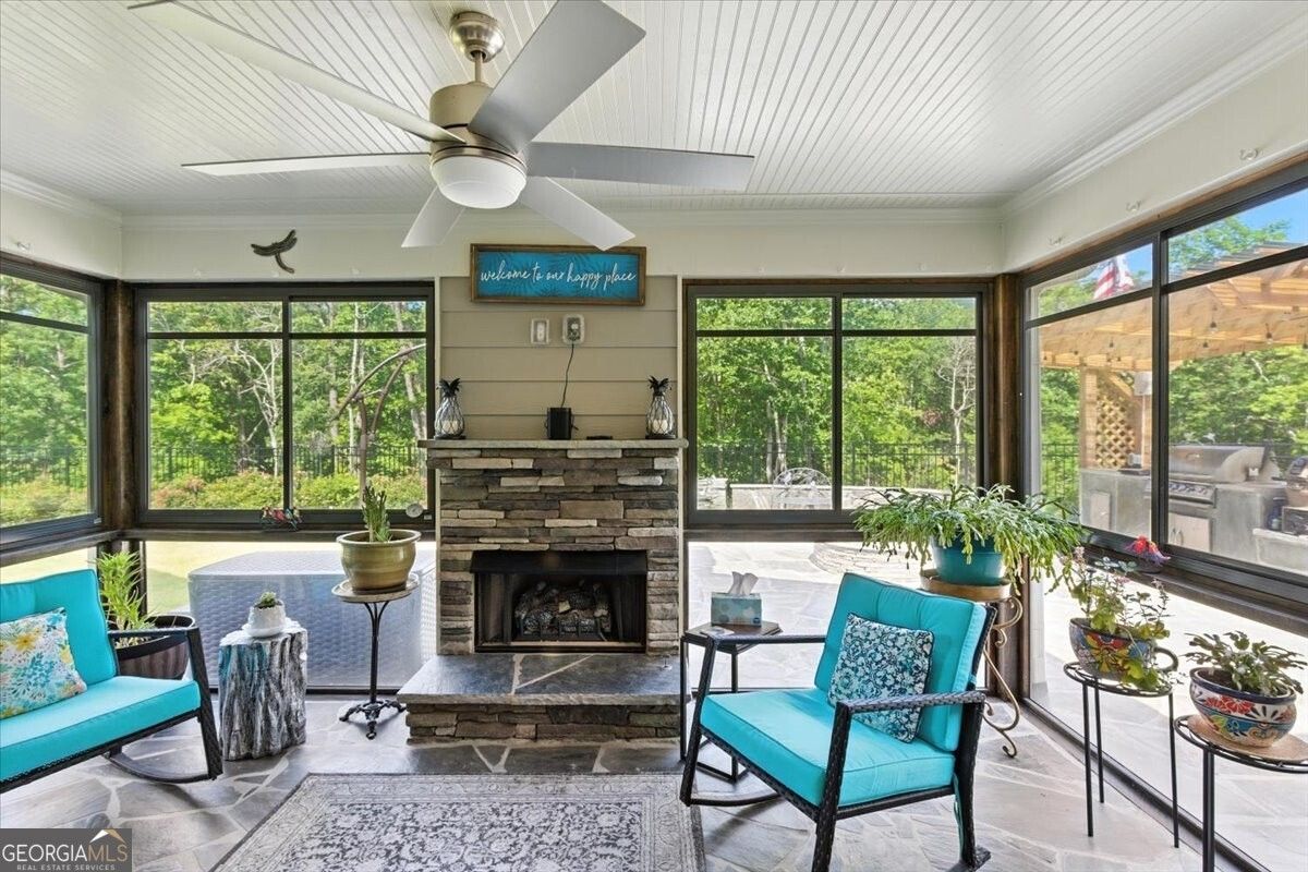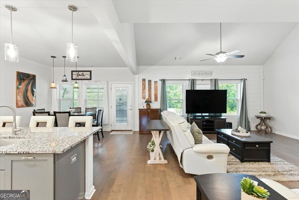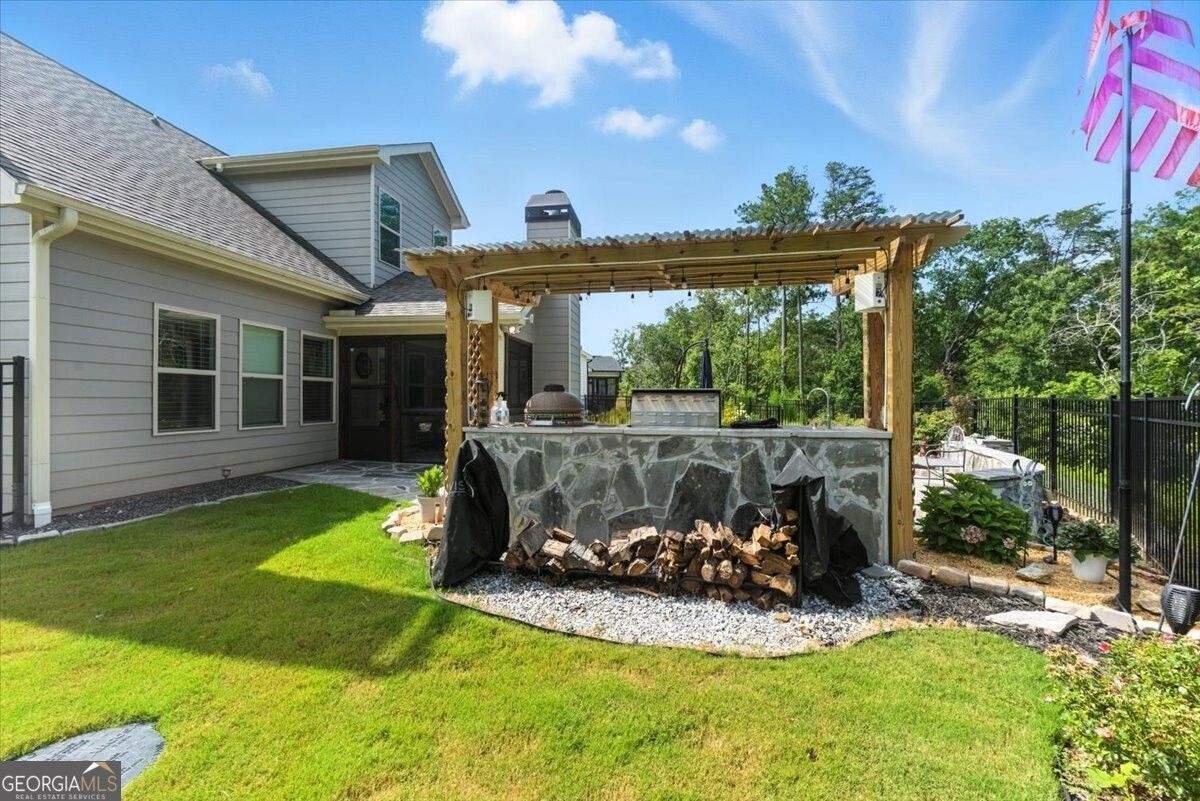 Experience the pinnacle of resort-style living in this stunning 5-bedroom, 4.5-bath masterpiece, perfectly positioned on a quiet 0.41-acre cul-de-sac lot within the prestigious gated community of Lake Arrowhead. Built in 2021, this 3,007-square-foot residence is a masterclass in modern luxury, anchored by a coveted Master on the Main floor plan that features a tray-ceiling Owner's Suite with a spa-like bath and expansive walk-in closet. The main level is designed for effortless flow, boasting luxury vinyl plank flooring, a vaulted great room with a shiplap gas fireplace, and two additional main-floor guest suites that offer unparalleled flexibility. The heart of the home is the gourmet kitchen, appointed with white cabinetry, granite countertops, and a gas range, but the true showstopper is the world-class outdoor retreat. Step through the sliding acrylic windows of the screened porch designed for year-round climate-controlled comfort to discover a custom stone patio that rivals the finest resorts. This outdoor oasis features a professional-grade built-in kitchen with a grill and sink, a majestic stacked-stone outdoor fireplace, and a wood-burning firepit, all set against the tranquil backdrop of a natural rock waterfall and a private, wooded fenced yard. Efficiency meets peace of mind with a 500-gallon propane generator for whole-house backup power, integrated security cameras, and dual-zone HVAC. Life in Lake Arrowhead offers a lifestyle beyond compare, where residents enjoy a private 540-acre lake with a full-service marina, the championship Highlands Golf Course, two resort-style swimming pools, professional tennis and pickleball courts, miles of scenic hiking trails, and fine dining at the clubhouse, all within a secure, 24-hour gated environment just minutes from the charm of Canton and Waleska.