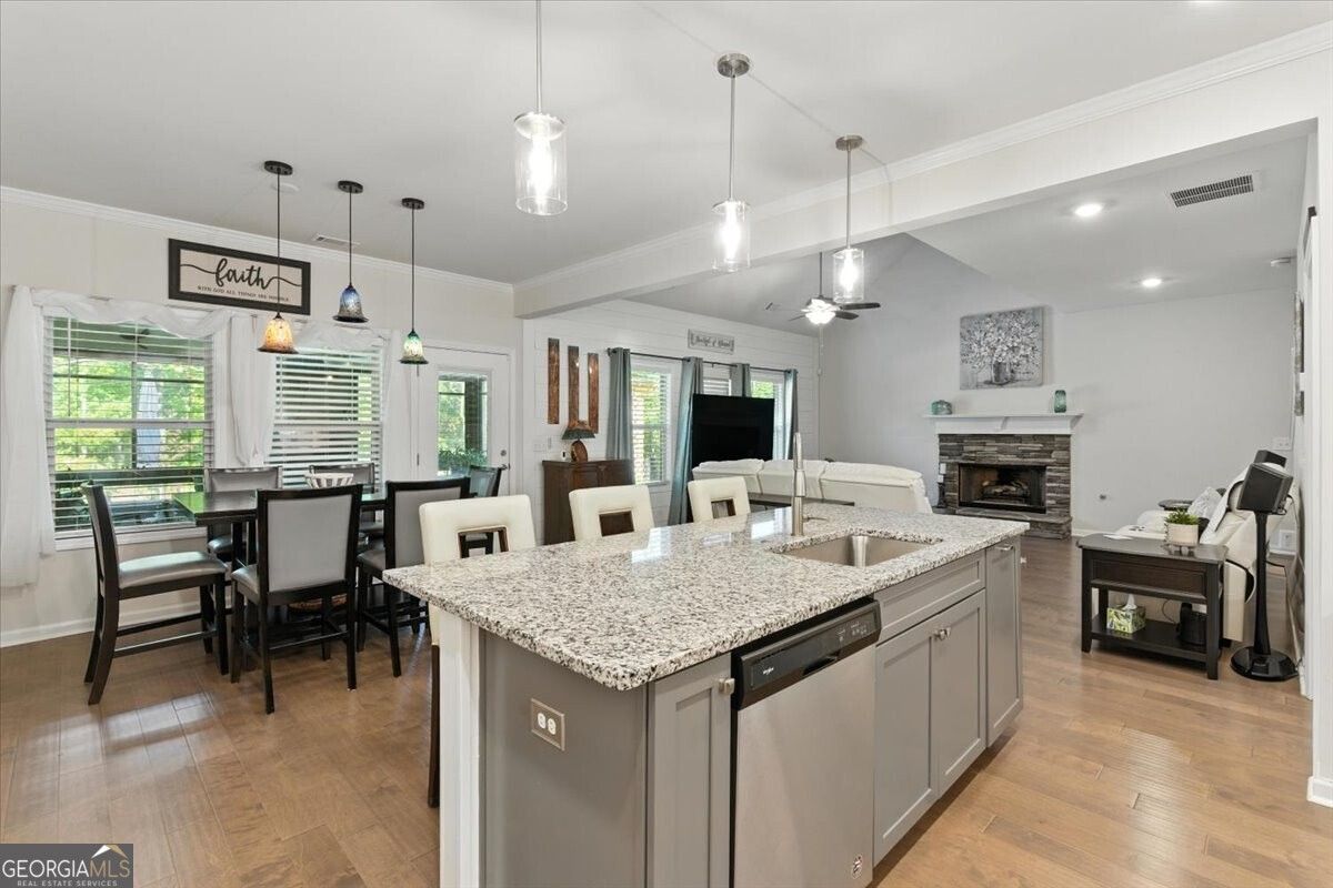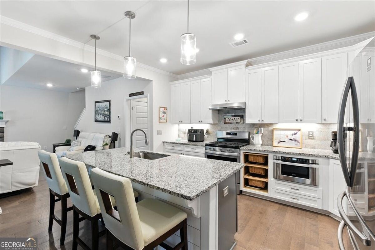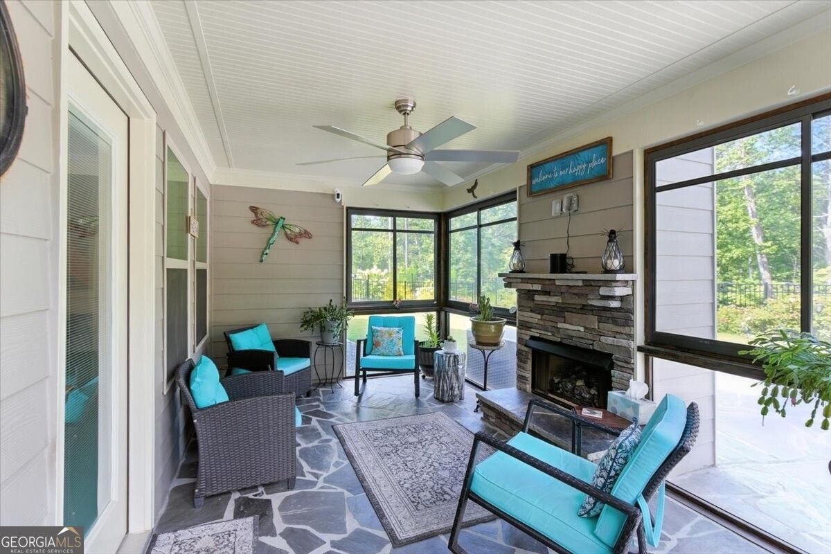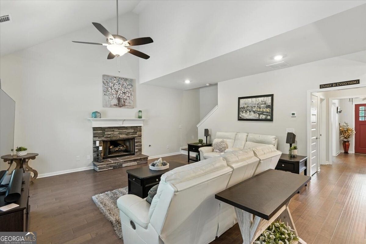 Experience the pinnacle of resort-style living in this stunning 5-bedroom, 4.5-bath masterpiece, perfectly positioned on a quiet 0.41-acre cul-de-sac lot within the prestigious gated community of Lake Arrowhead. Built in 2021, this 3,007-square-foot residence is a masterclass in modern luxury, anchored by a coveted Master on the Main floor plan that features a tray-ceiling Owner's Suite with a spa-like bath and expansive walk-in closet. The main level is designed for effortless flow, boasting luxury vinyl plank flooring, a vaulted great room with a shiplap gas fireplace, and two additional main-floor guest suites that offer unparalleled flexibility. The heart of the home is the gourmet kitchen, appointed with white cabinetry, granite countertops, and a gas range, but the true showstopper is the world-class outdoor retreat. Step through the sliding acrylic windows of the screened porch designed for year-round climate-controlled comfort to discover a custom stone patio that rivals the finest resorts. This outdoor oasis features a professional-grade built-in kitchen with a grill and sink, a majestic stacked-stone outdoor fireplace, and a wood-burning firepit, all set against the tranquil backdrop of a natural rock waterfall and a private, wooded fenced yard. Efficiency meets peace of mind with a 500-gallon propane generator for whole-house backup power, integrated security cameras, and dual-zone HVAC. Life in Lake Arrowhead offers a lifestyle beyond compare, where residents enjoy a private 540-acre lake with a full-service marina, the championship Highlands Golf Course, two resort-style swimming pools, professional tennis and pickleball courts, miles of scenic hiking trails, and fine dining at the clubhouse, all within a secure, 24-hour gated environment just minutes from the charm of Canton and Waleska.
