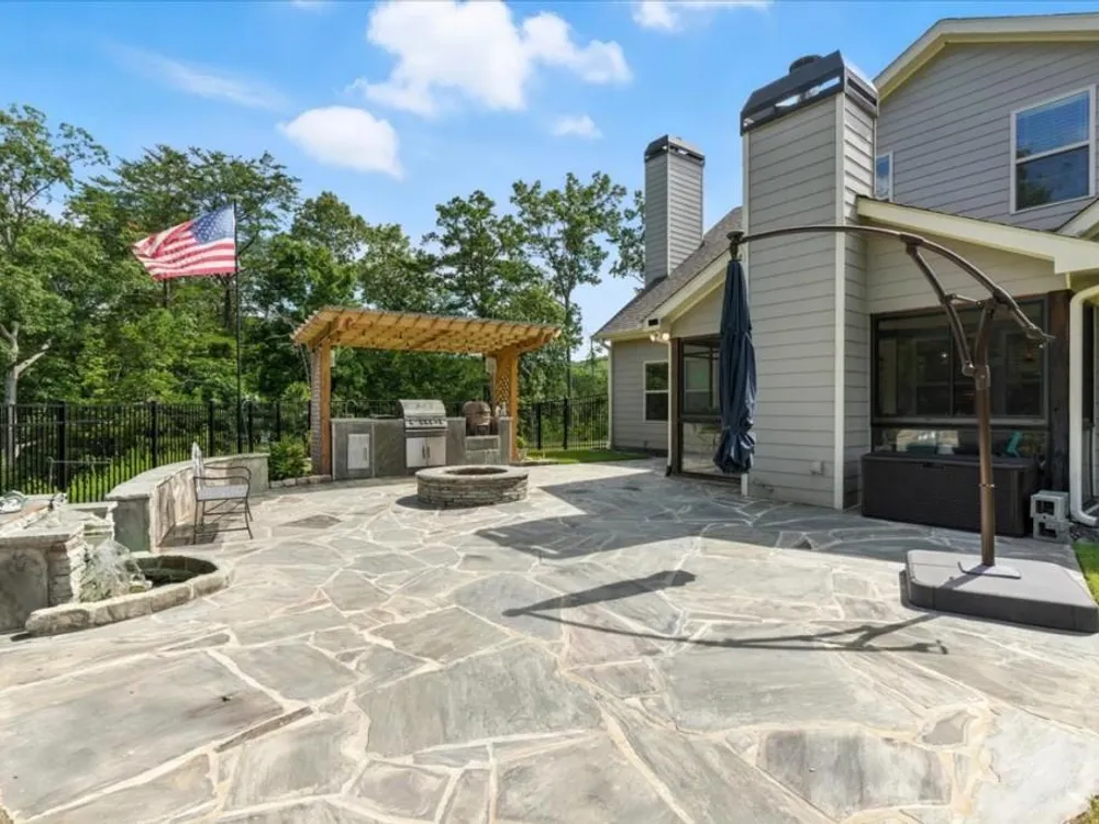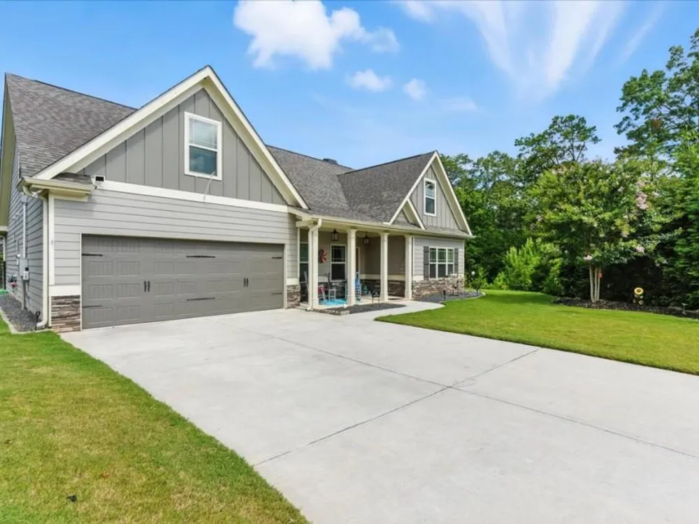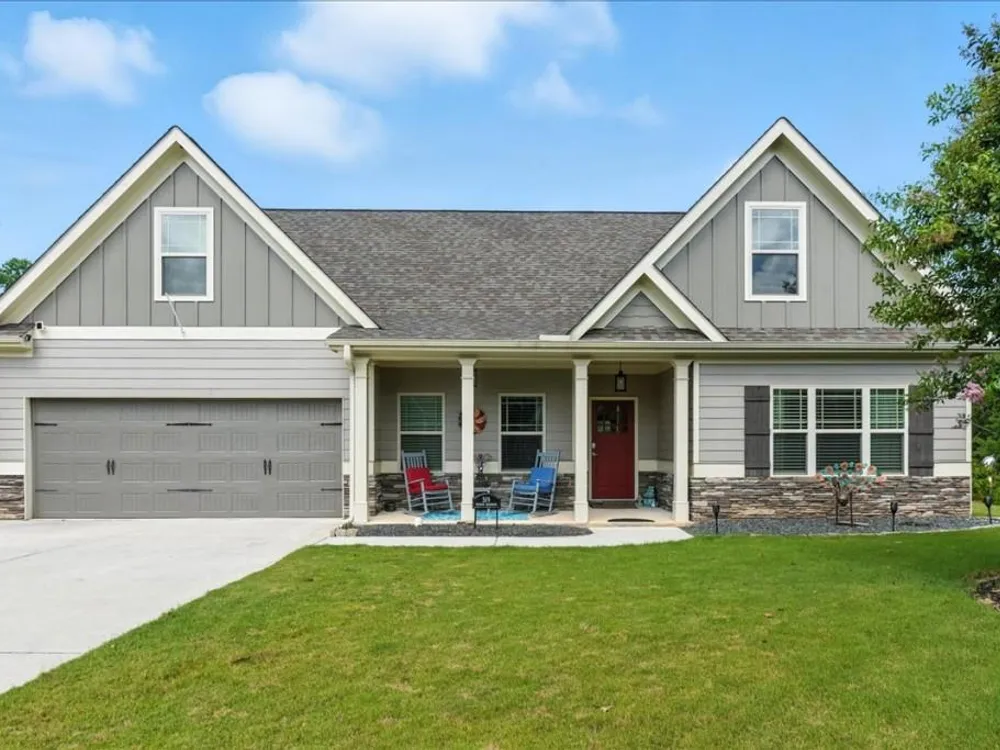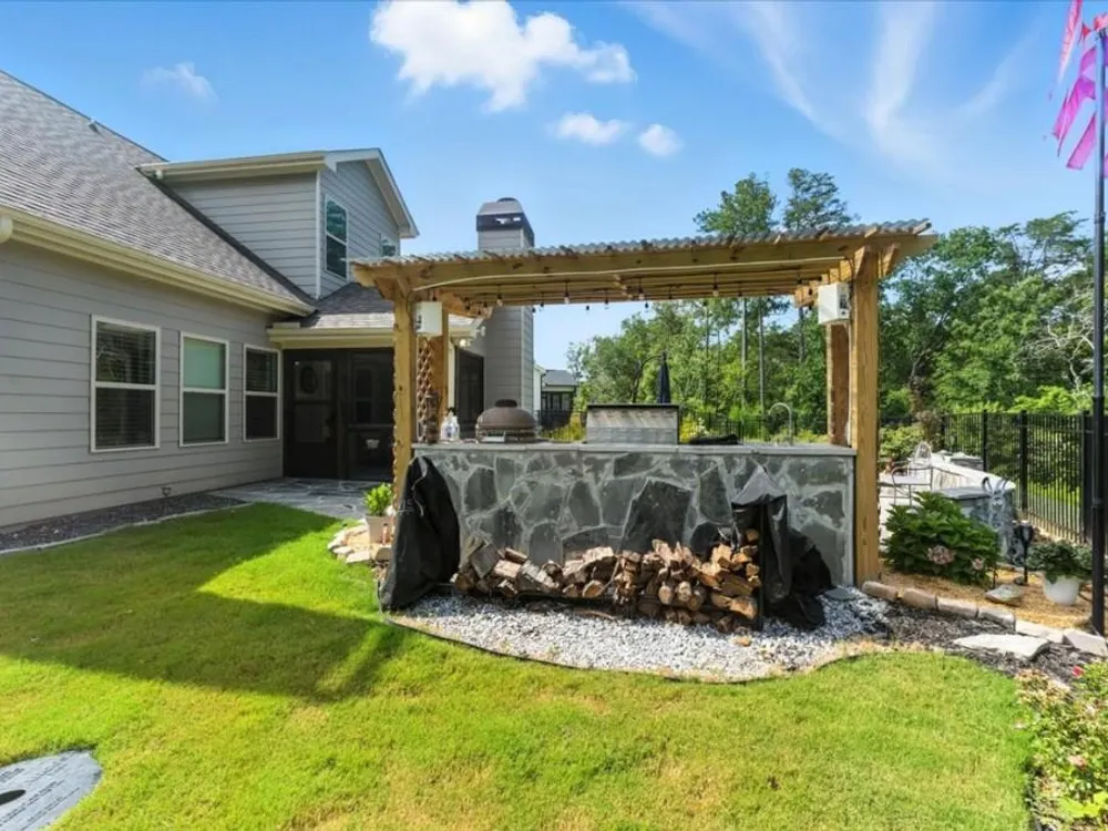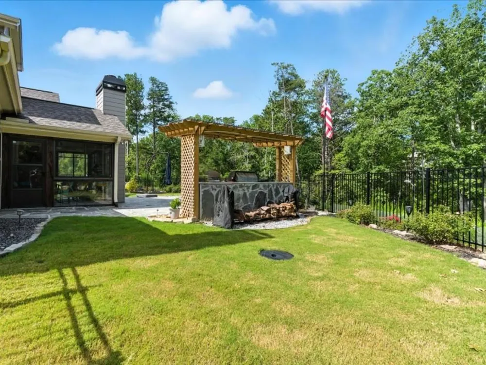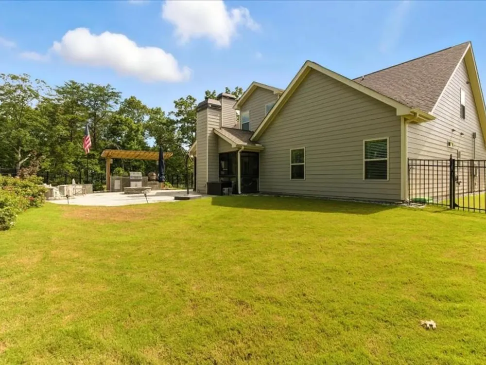 BeauWelcome to this beautifully designed 5-bedroom, 4½-bath home in the gated Lake Arrowhead community, offering lake access, golf, and resort-style amenities. Built in 2021, this 3,007-sq-ft residence sits on a 0.41-acre cul-de-sac lot and combines open living spaces, upgraded systems, and an impressive outdoor retreat. The main level features luxury vinyl plank flooring throughout all living areas, a vaulted great room with shiplap gas fireplace, and an open kitchen appointed with white cabinetry, granite countertops, stone backsplash, stainless appliances, and a gas range. The Owner’s Suite on main includes a tray ceiling, dual vanities, walk-in shower, and large closet. Two additional guest bedrooms with full baths on the main level provide flexible options for family or guests. Upstairs, a spacious loft connects two bedrooms, a full bath, and walk-out storage areas. Everyday comfort is enhanced by dual-zone HVAC, irrigation, faux-wood blinds, a keyless entry alarm, and integrated security cameras. A 500-gallon propane generator provides whole-house backup power. The backyard has been completely upgraded for entertaining, with a custom stone patio, built-in outdoor kitchen with grill and sink, wood-burning firepit, and a natural rock waterfall. The fenced yard backs to wooded privacy, and the patio’s sliding acrylic windows with screens allow year-round enjoyment. Residents of Lake Arrowhead enjoy a private 540-acre lake with marina and boat access, two swimming pools, tennis and pickleball courts, walking trails, parks, and the Highlands Golf Course with optional membership. The clubhouse offers dining, events, and social gatherings in a secure, 24-hour gated environment. Convenient to Canton, Waleska, and northwest Cherokee County attractions, this move-in-ready property delivers a rare combination of modern efficiency, resort amenities, and low-maintenance living in one of North Georgia’s premier lake and golf communities.