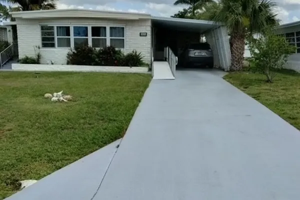 One of the few communities in Naples where residents own the land, Riviera Colony offers a rare opportunity to invest in your own slice of paradise. This well-maintained home withstood recent storms with no reported damage and has been thoughtfully upgraded for accessibility and modern living. A newly installed ramp and handicap-accessible doors make the home welcoming and functional for everyone. Inside, you'll find: 2 spacious bedrooms and 2 full bathrooms, bright and airy living room with a wall of windows for abundant natural light, separate dining area and breakfast bar – perfect for casual or formal meals. recent upgrades including vinyl flooring, newer refrigerator, washer and dryer, water heater, and A/C system. A private storage area houses the in-home laundry for added convenience. Just a short stroll away is the community pool, perfect for enjoying the Florida sunshine and socializing with neighbors. Ideally situated off Rattlesnake Hammock Road, this home is just minutes from downtown Olde Naples, world-class beaches, golf, shopping, and dining.