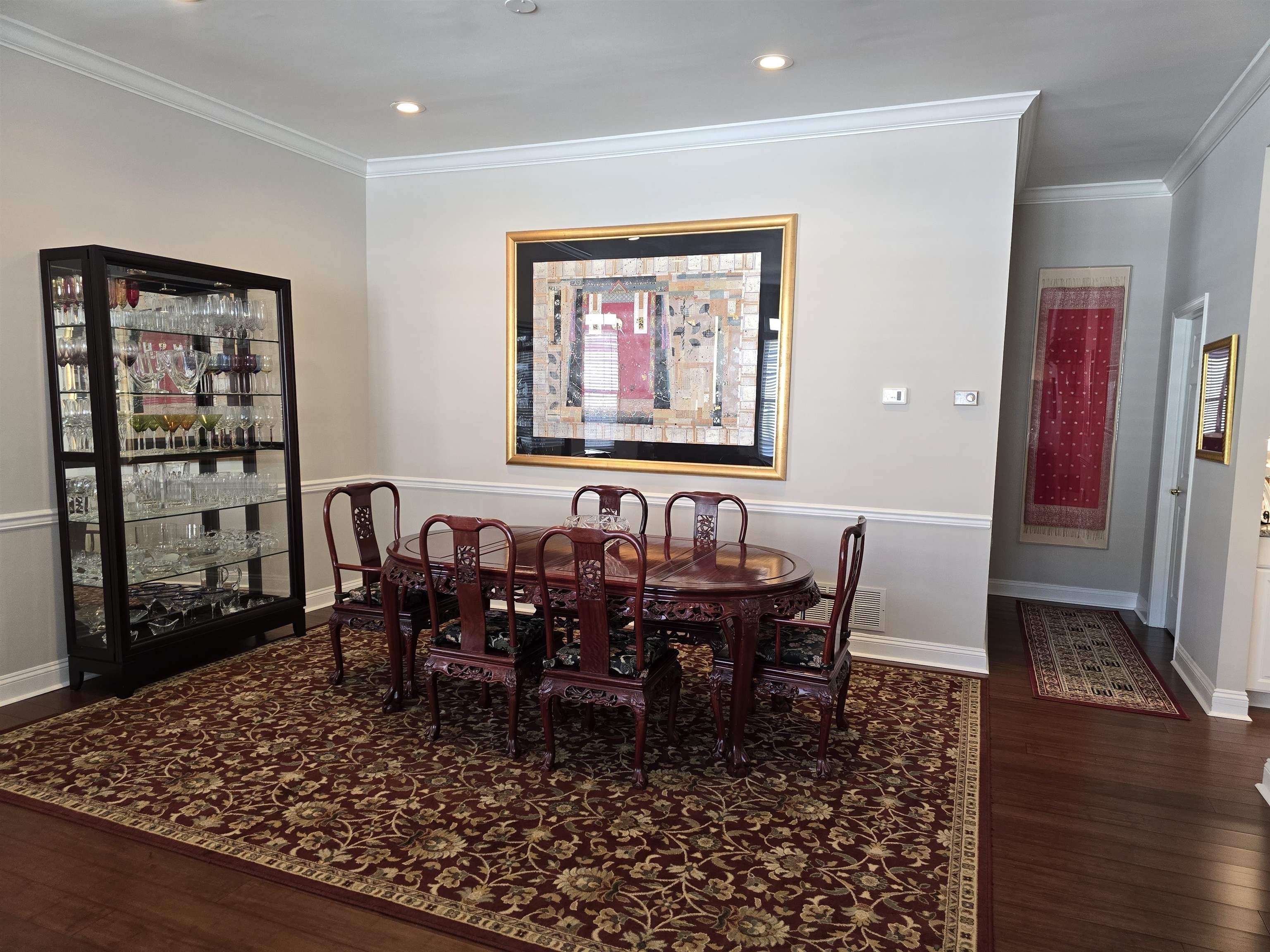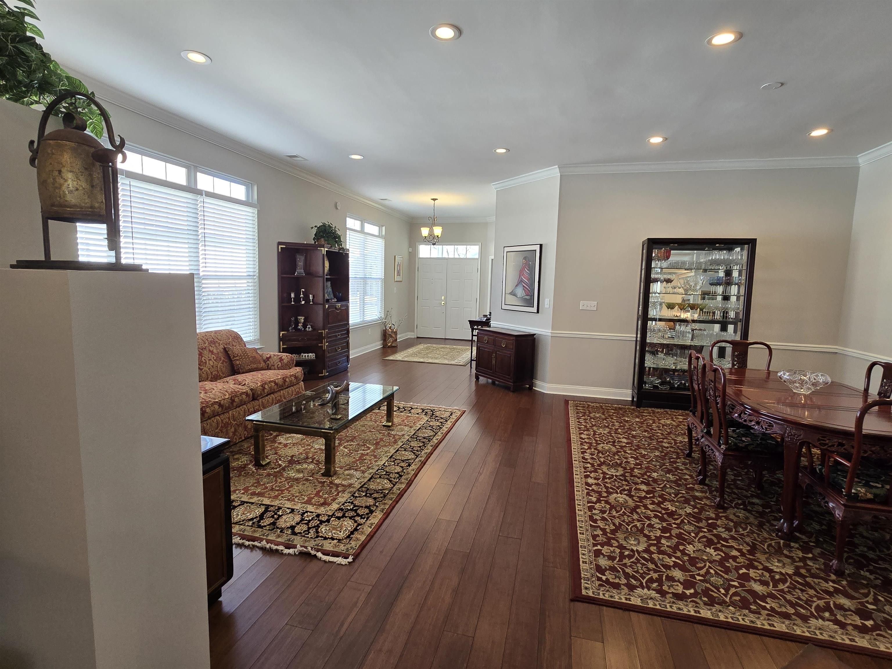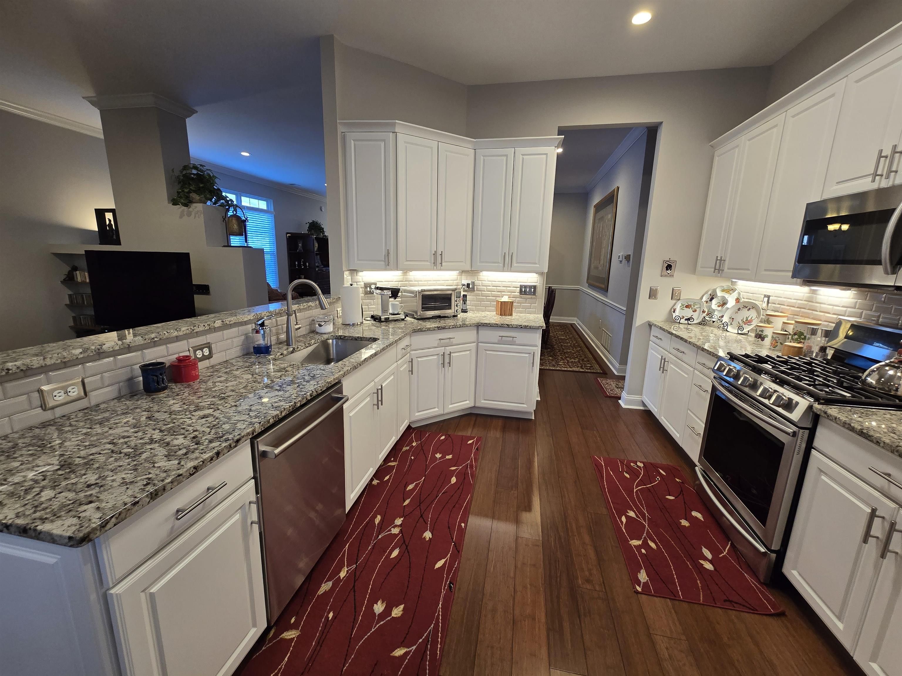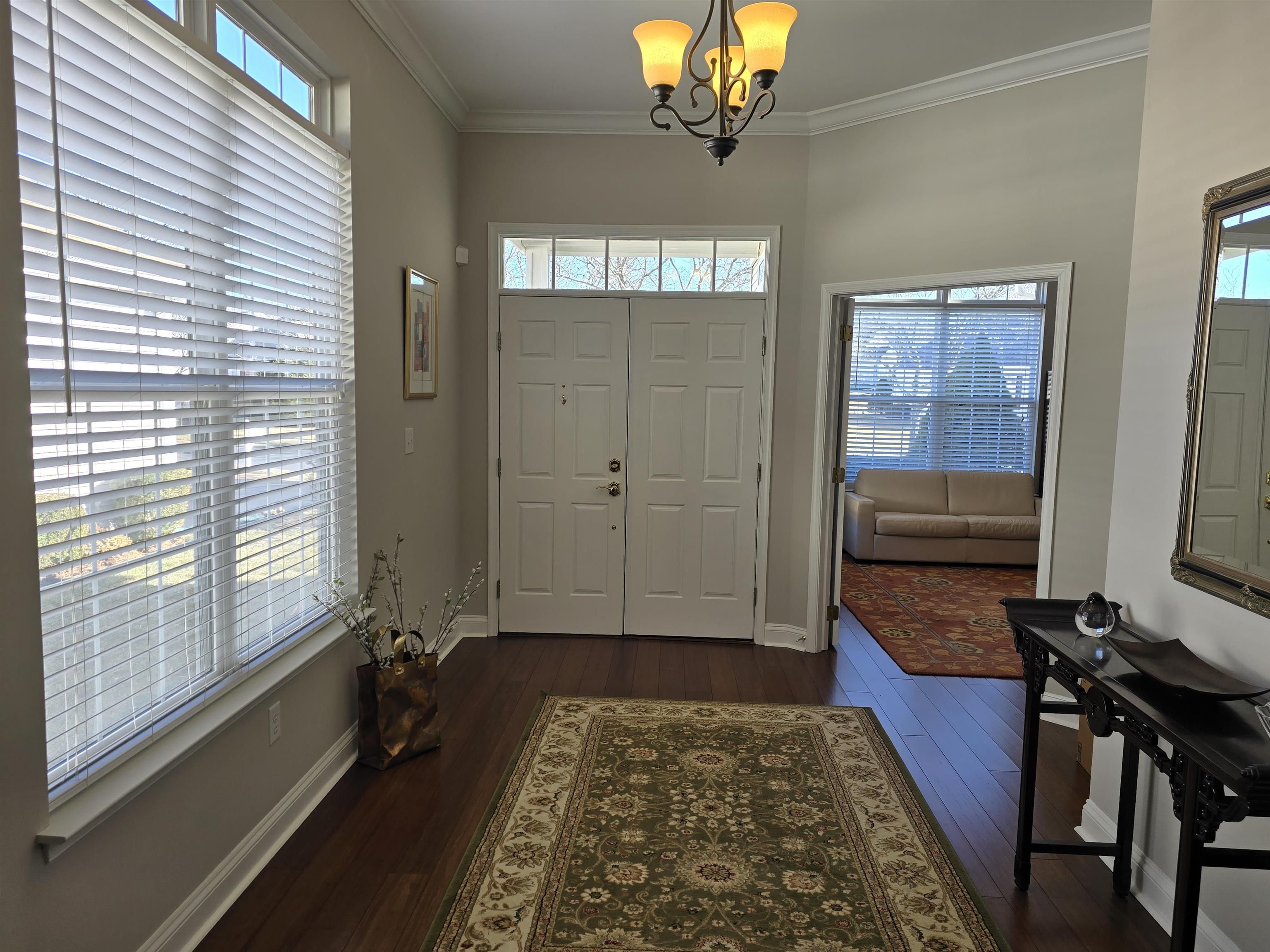 Stunning Mulberry Model in Four Seasons at Smithville – Chatham Village This exceptional 2,200 sq. ft. Mulberry model is ideally located in sought-after Chatham Village, just a short walk to the clubhouse. Set on a larger-than-average lot and backing up to peaceful woods, this home offers privacy, serenity, and beautiful morning sunlight. The welcoming entry opens to soaring 10-foot ceilings, transom windows, and a spacious great room filled with natural light. Engineered hardwood flooring (2019) runs throughout the home, excluding bathrooms and the utility room. The expanded kitchen—rarely found in Four Seasons—features Kraft Maid cabinetry with 42" upper cabinets, granite countertops, beveled subway tile backsplash, under-cabinet lighting, crown molding, and abundant counter space ideal for a coffee bar or entertaining. Appliances include a Bosch dishwasher, LG French-door refrigerator, and Samsung 5-burner stove and microwave. The kitchen includes an eat-in dining area and pantry and opens to the den/TV room with views of the wooded backyard, three-season room, and patio. The spacious primary suite offers two walk-in closets and a spa-like ensuite bath with a fully tiled shower, grab bars, and built-in bench. A bright second bedroom features a full wall of mirrored closets. The office/den—easily converted to a third bedroom with the addition of a closet—captures beautiful eastern morning light. Additional highlights include a utility room with a Samsung washer and dryer, a utility sink, wire shelving for extra storage, an epoxy-floored garage with a full-cabinet workshop, and major mechanical updates, including a new HVAC system and a water heater installed in July 2024. A rare opportunity to enjoy comfort, privacy, and quality upgrades in one of Four Seasons Smithville’s most desirable locations.