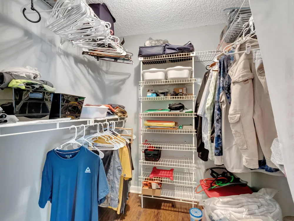 - Entry Level Living Area, Stacked Bedrooms, Walk-In Closet(s), Storage, Primary Downstairs, Storm Shutters